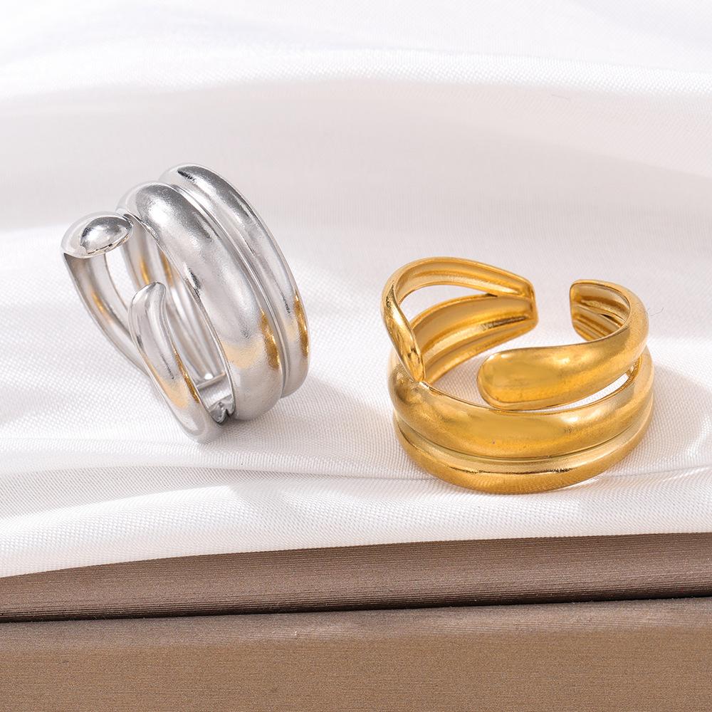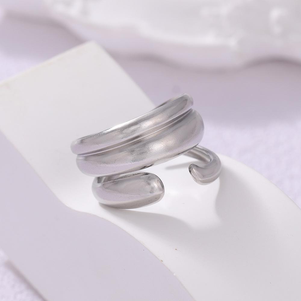 Anillo irregular simple transfronterizo europeo y americano, anillo de acero de titanio, anillo de acero inoxidable abierto de alta gama de lujo ligero para mujer.