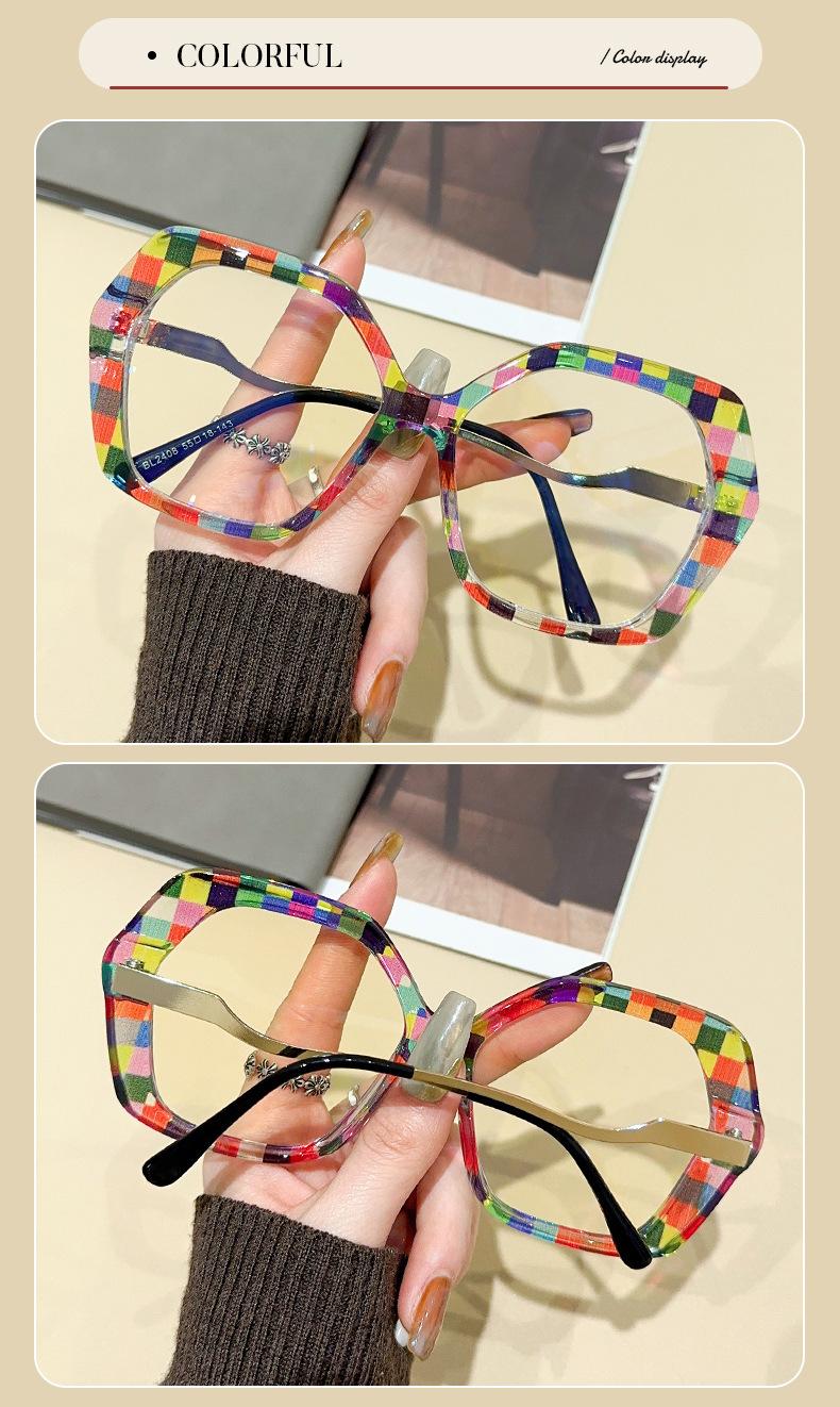 2024 nuevo color a juego transfronterizo multilateral cara delgada montura de gafas color caramelo tendencia europea y americana luz anti-azul espejo plano