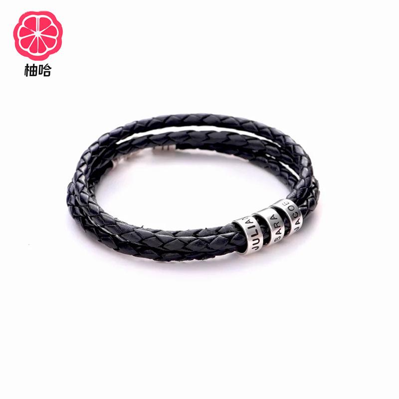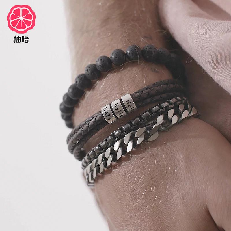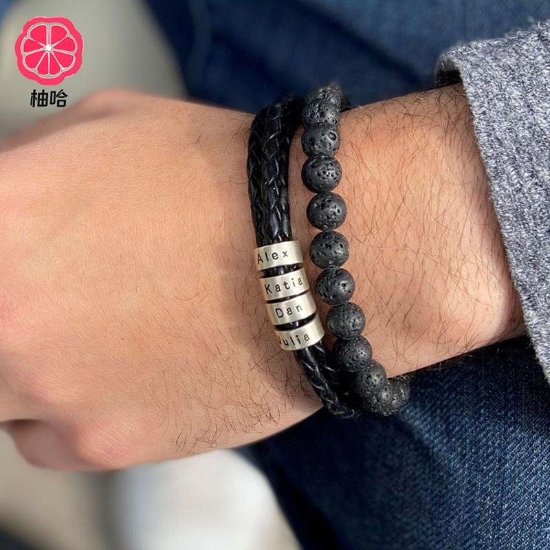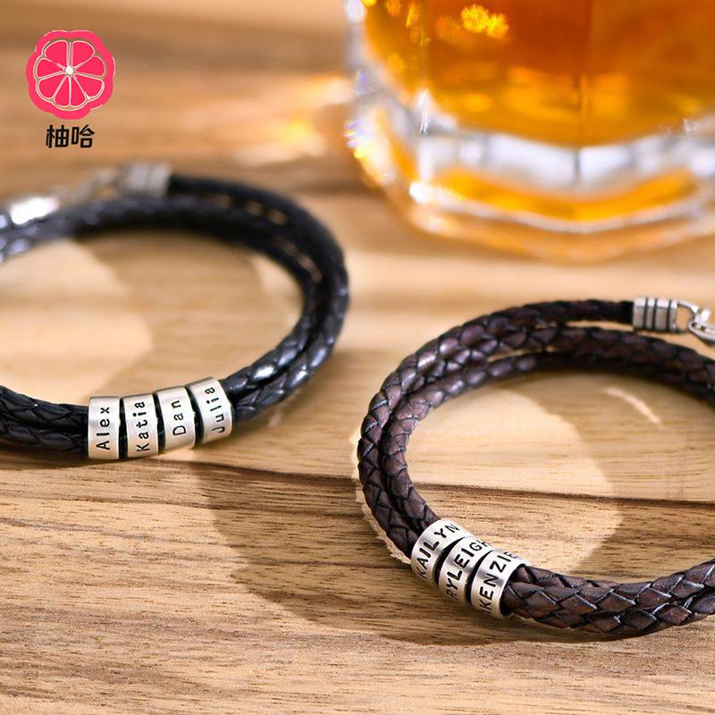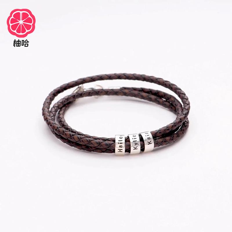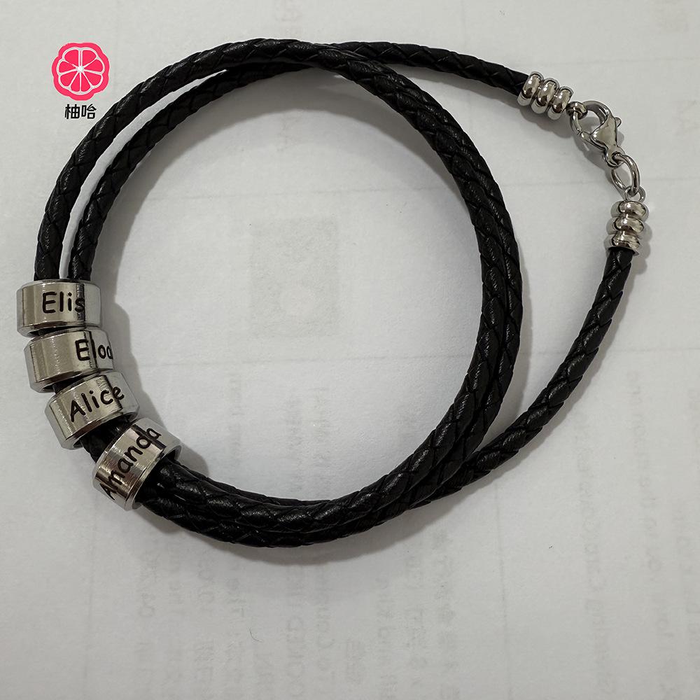 [Nombre del producto]: Pulsera de cuero grabada con cierre de langosta de acero inoxidable