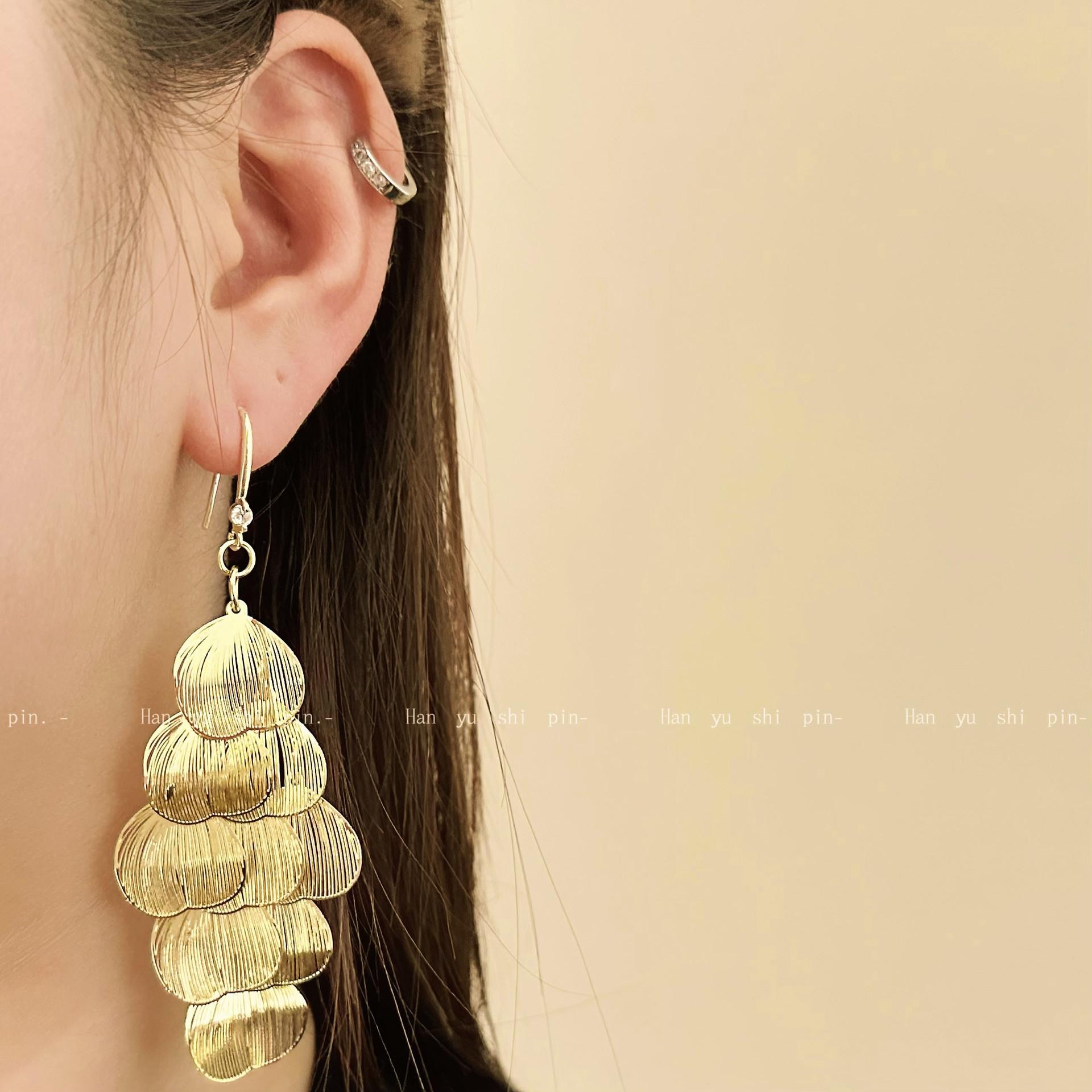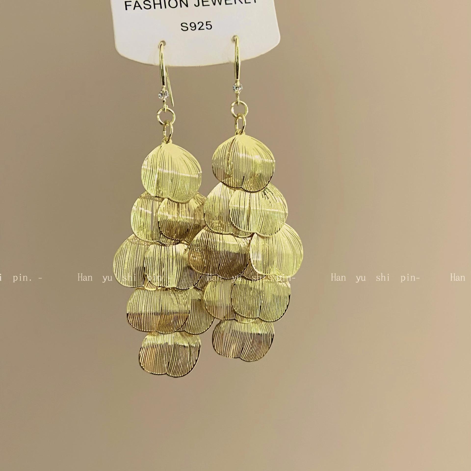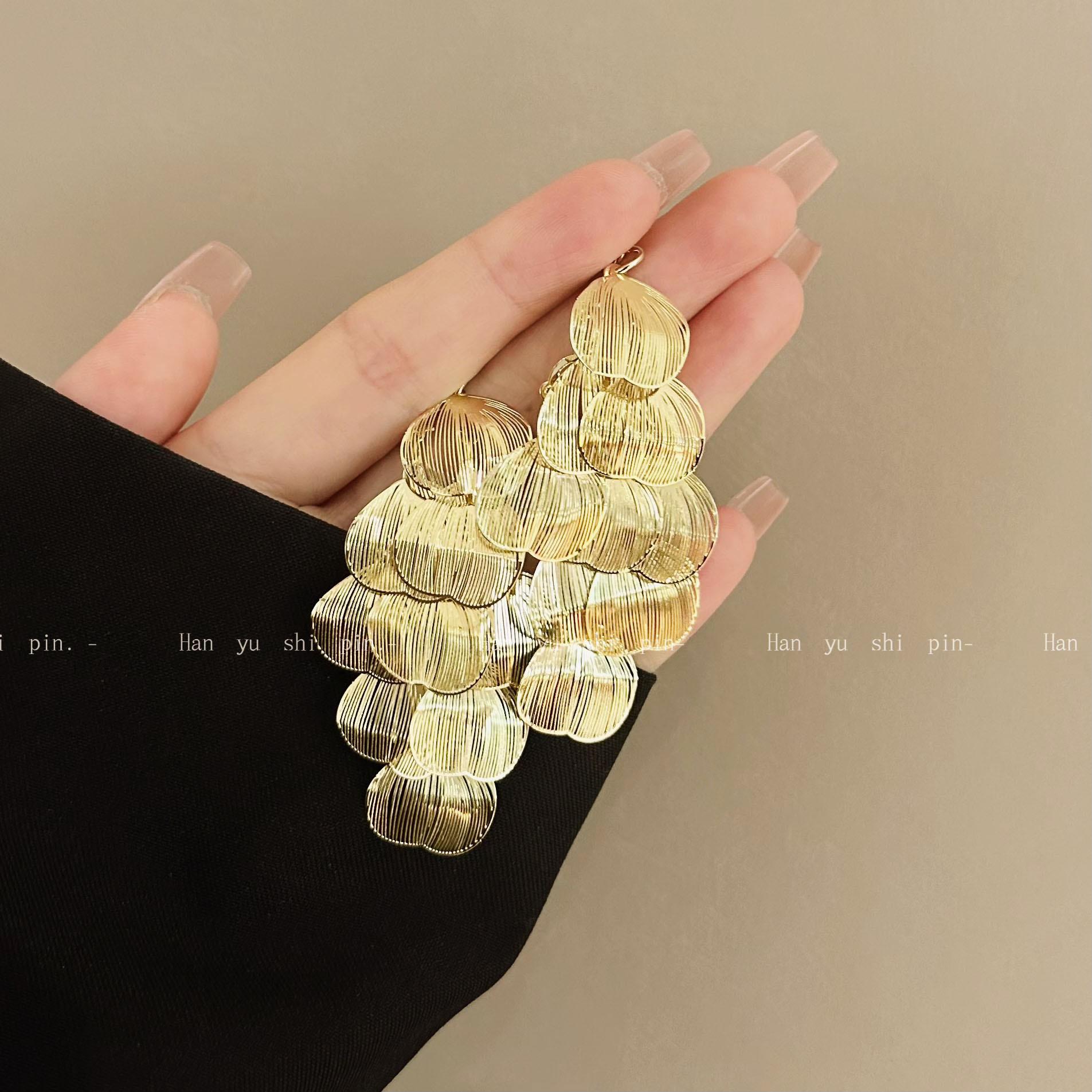 Nuevos Aretes de Borla de Hoja de Lujo Accesible Largos de Moda Estilo Europeo y Americano Exagerados Diosa Elegantes de Alta Gama para Mujeres