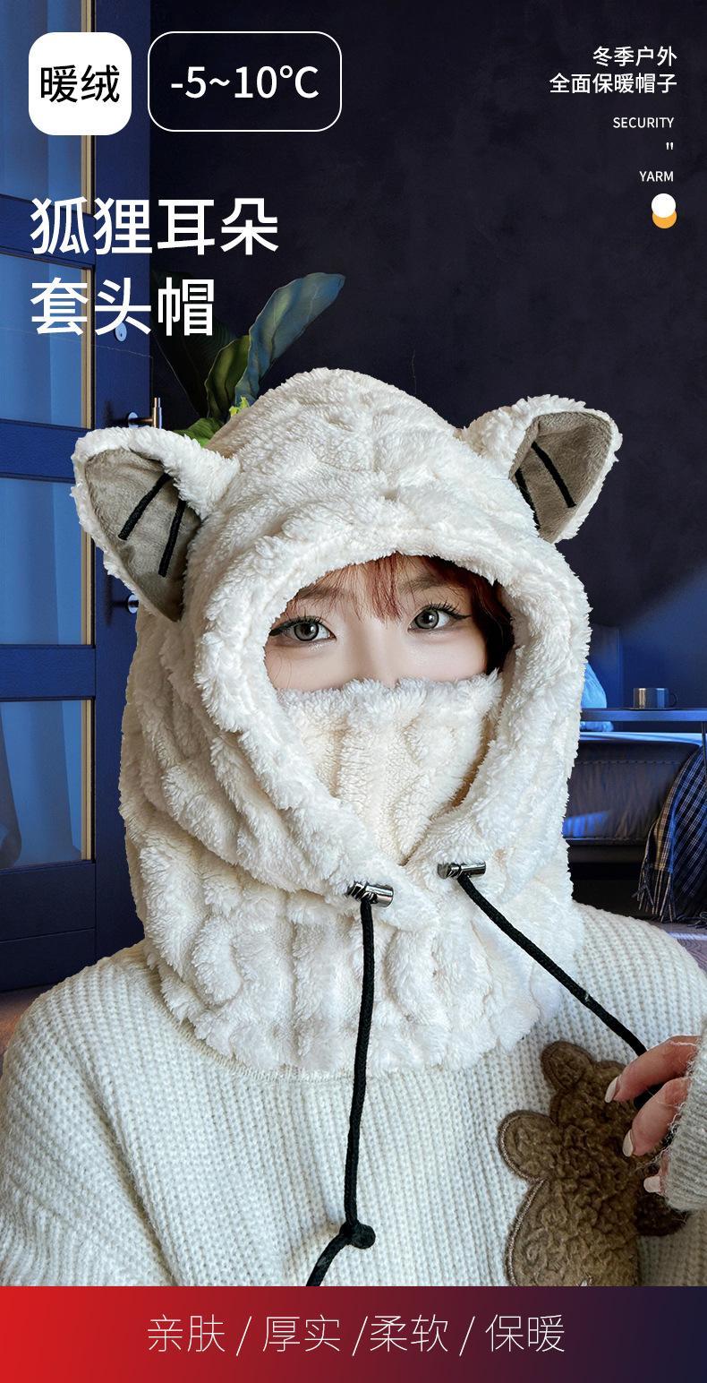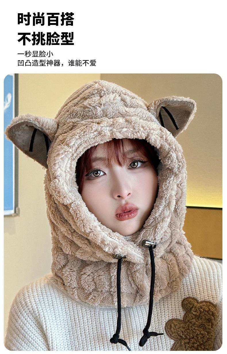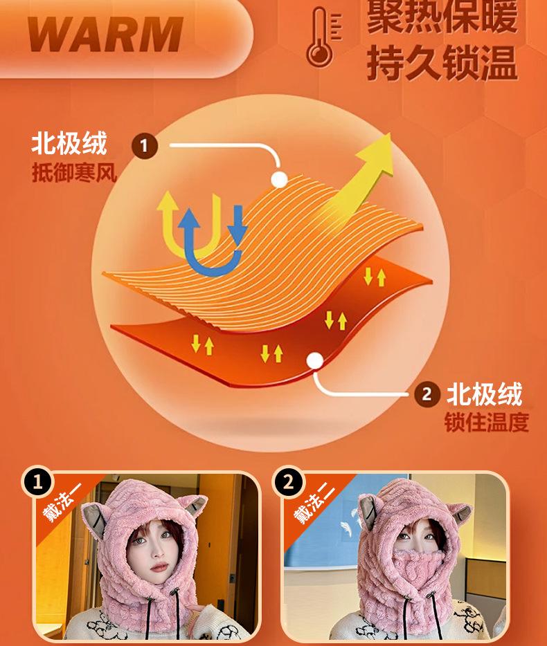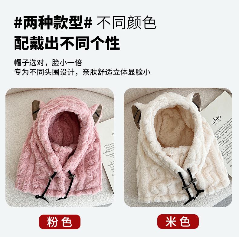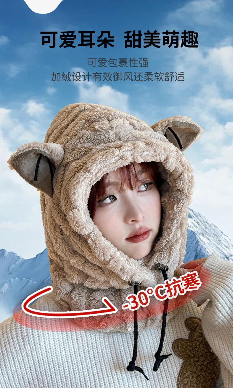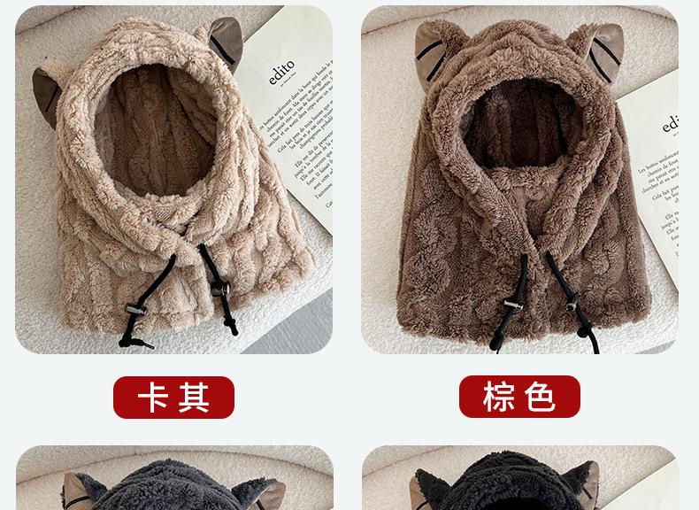 Ear thermal integrated hat--khaki, Ear thermal integrated hat--off-white, Ear warm one-piece hat--coffee, Ear ...