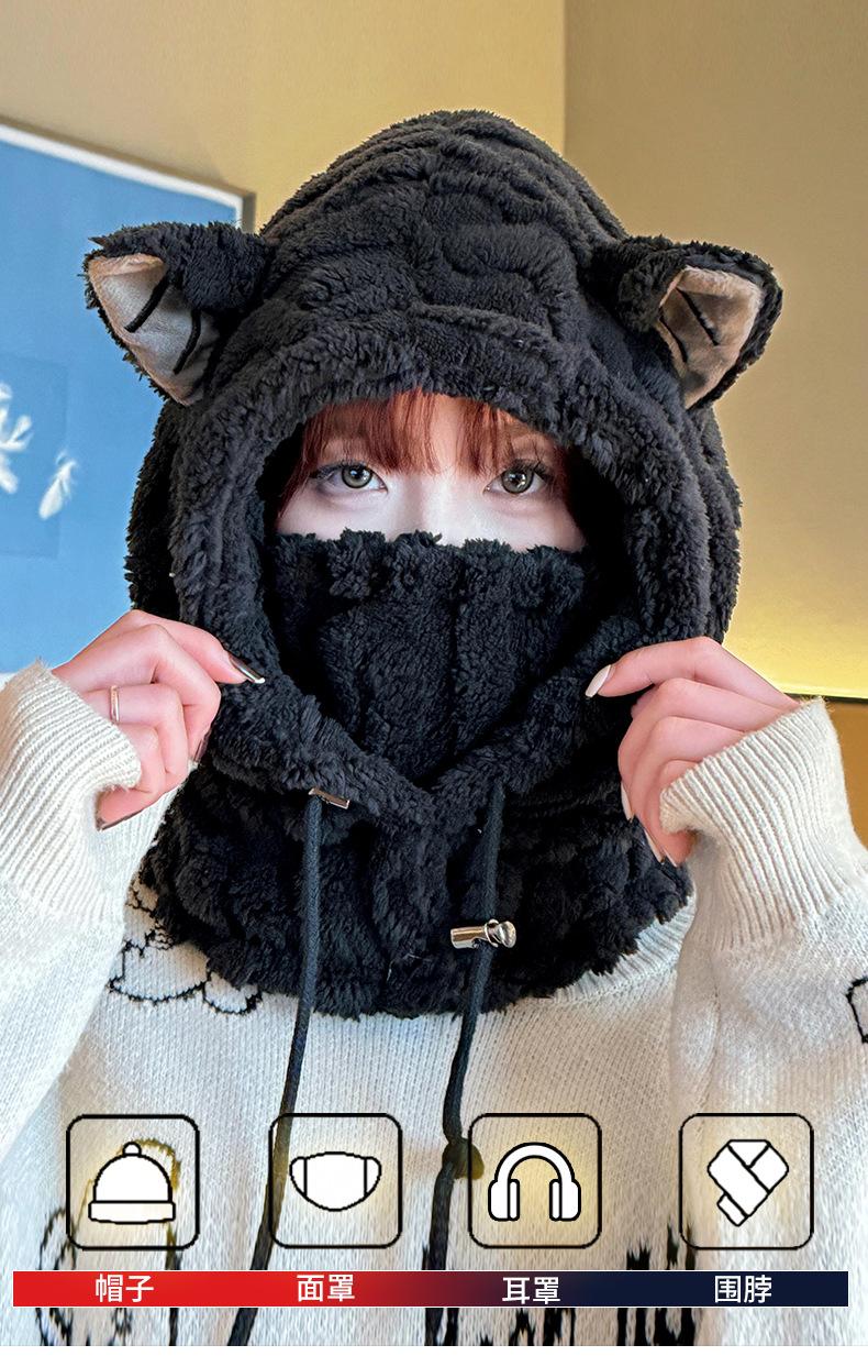 Ear thermal integrated hat--black
