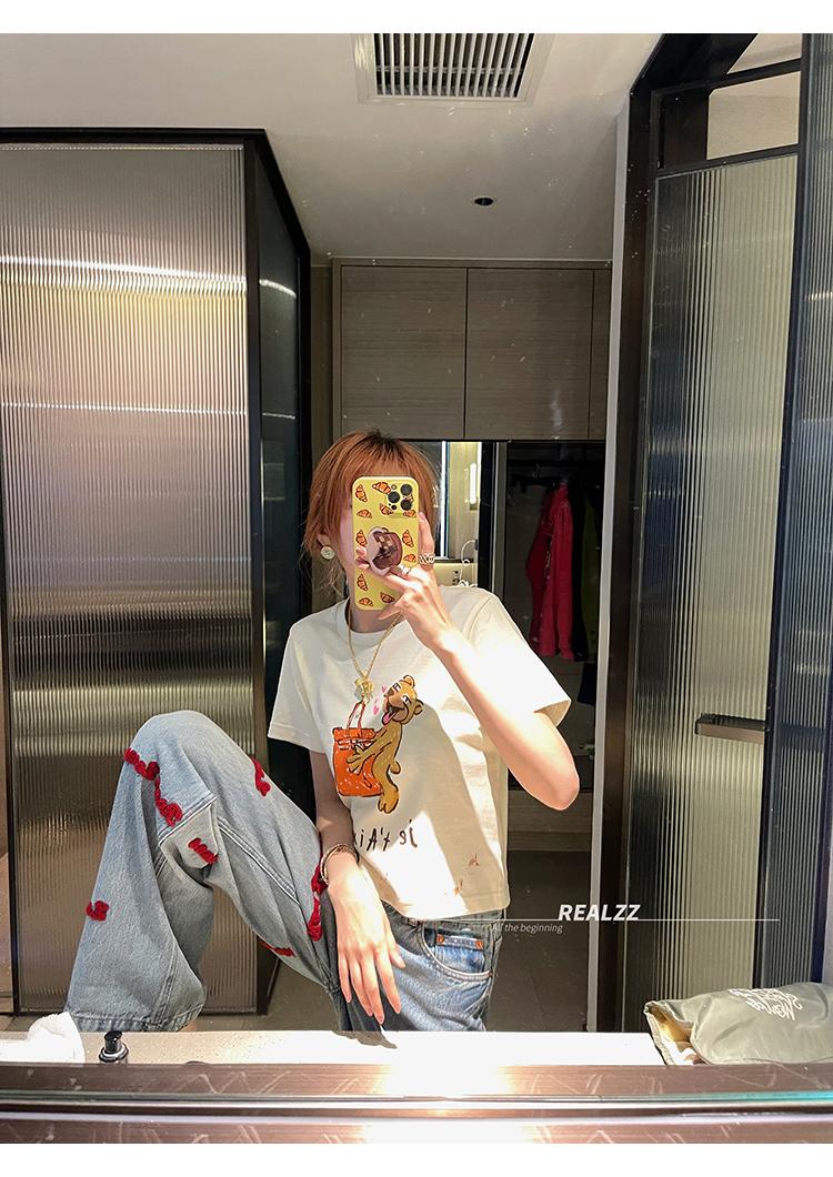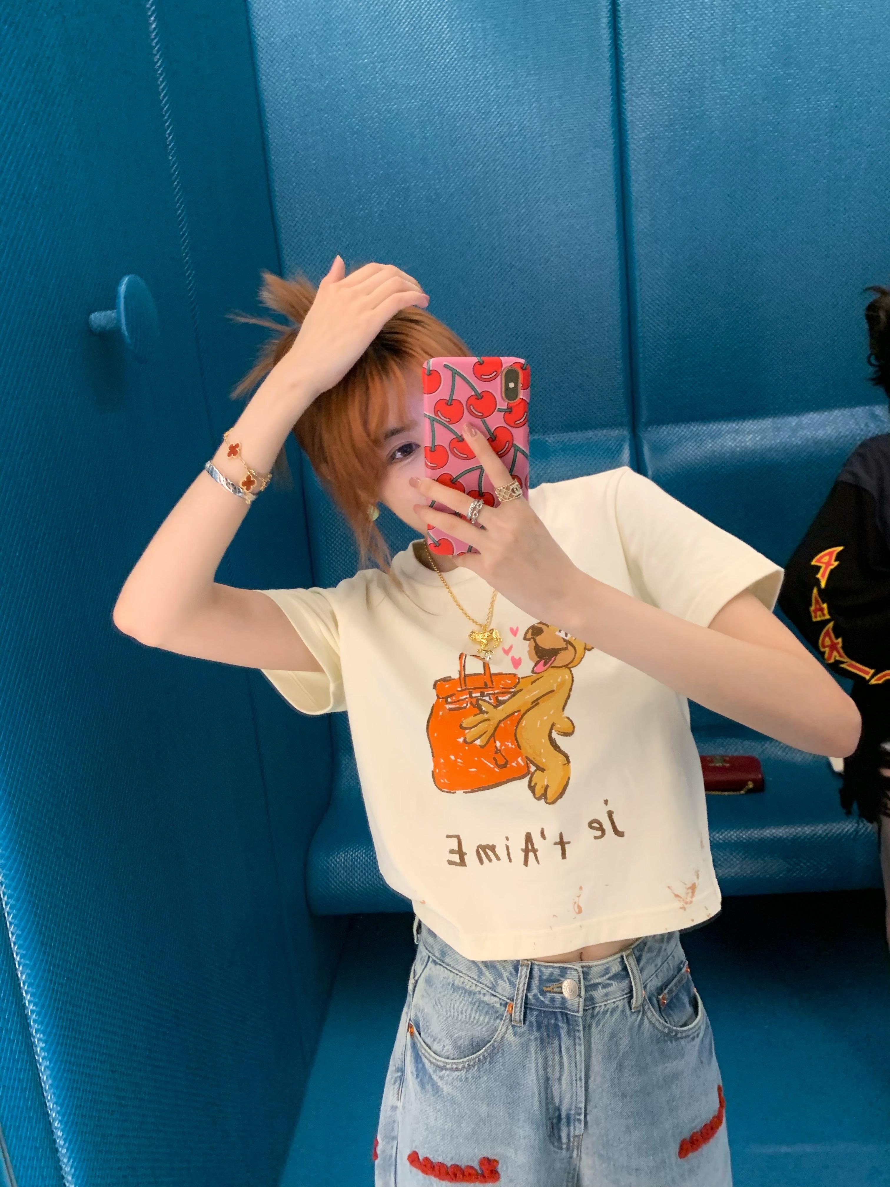 Una camiseta con bonitos detalles en la parte delantera y trasera.IPrefiero ropa divertida y casual, moda sin esfuerzo