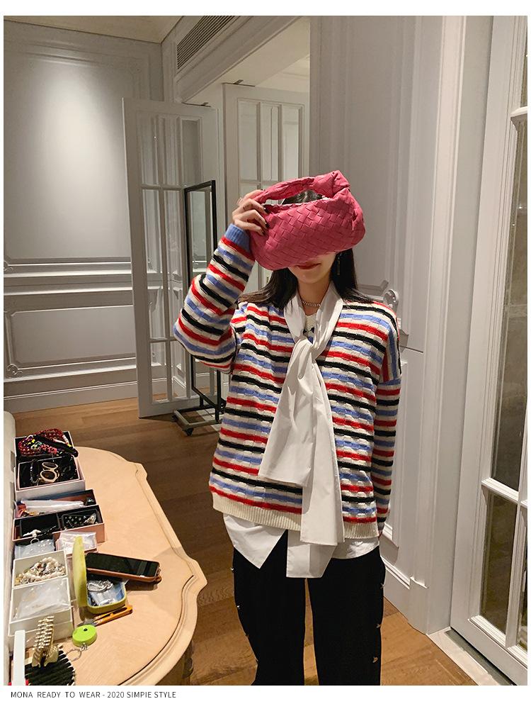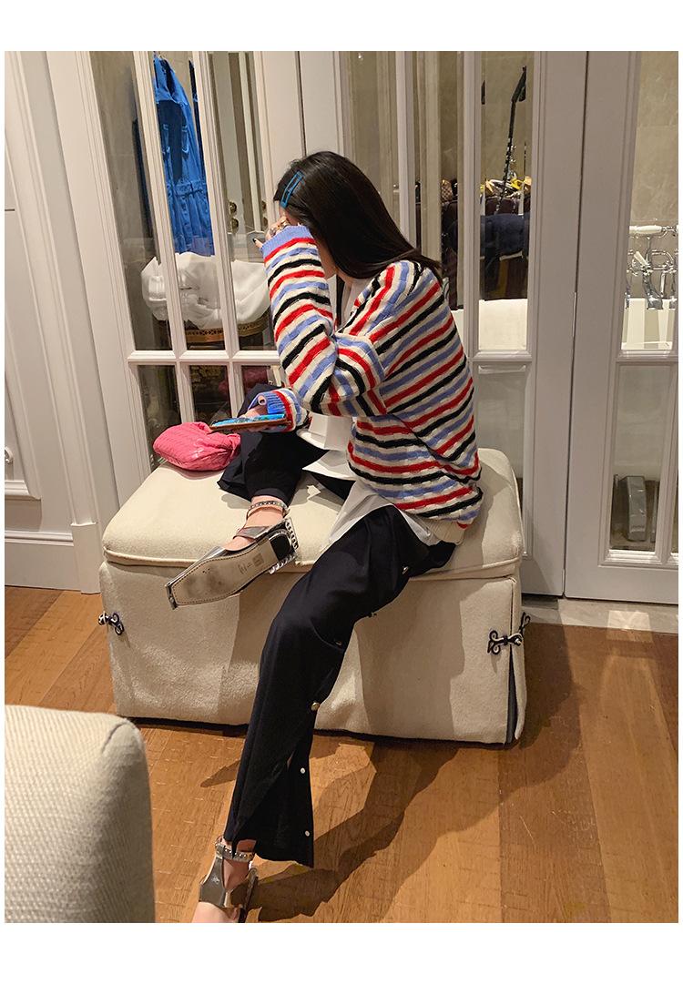 deletrearRayas horizontales de color + Cuello en V, con su propio pequeño temperamento, no exigente