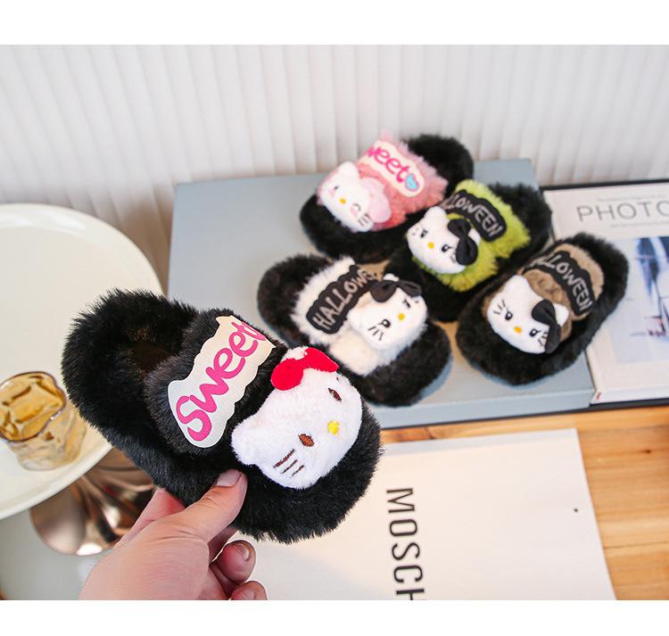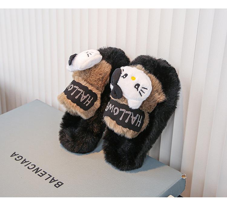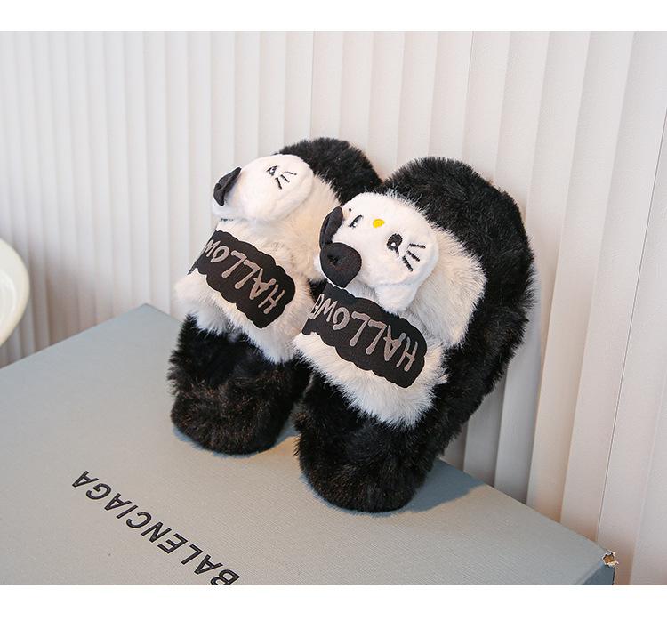 Pantuflas Mao Mao con dibujos animados para niños, ropa de abrigo para niñas, otoño e invierno, nuevas zapatillas para niños, suela gruesa, antideslizantes, de algodón para interiores y hogares.