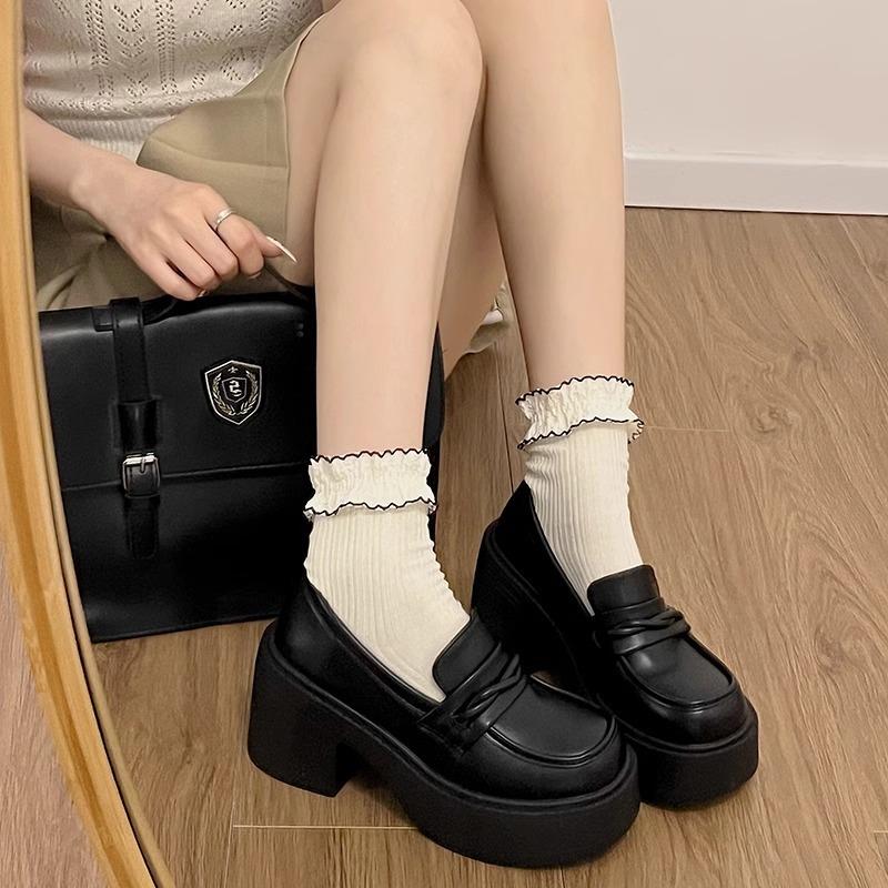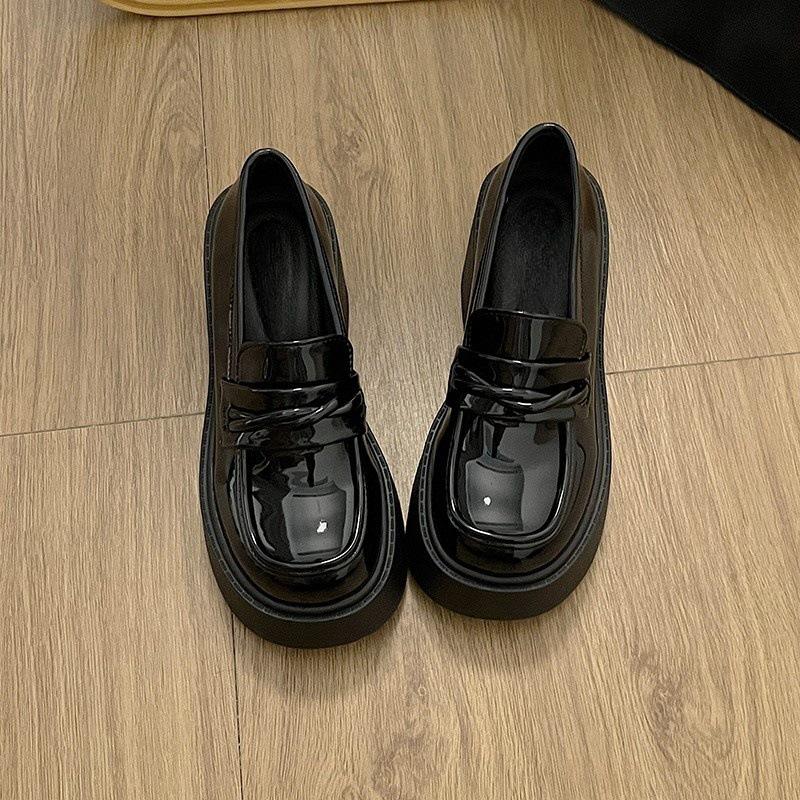 Zapatos pequeños de cuero estilo británico, mocasines de suela gruesa, primavera y otoño 2025, nuevos zapatos retro negros con plataforma, versátiles, transfronterizos