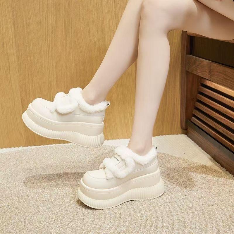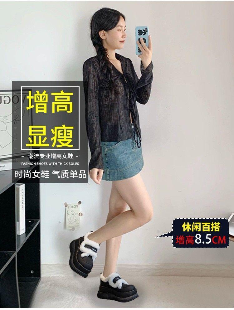 Botas de nieve 2024 invierno nuevas Mao Mao altura interior aumentada ropa exterior zapatos de mujer con suela gruesa y forro polar engrosados dos zapatos de algodón