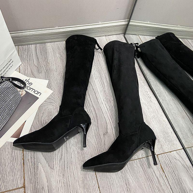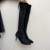 Botas de media caña con forro polar para mujer, botines de tacón alto puntiagudo, elásticos, finos y gruesos, por encima de la rodilla, otoño/invierno 2024