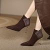 Botas cortas de tacón de aguja puntiagudo de estilo retro europeo y americano, nuevas botas finas de charol de tacón alto elegantes de primavera y otoño de 2024