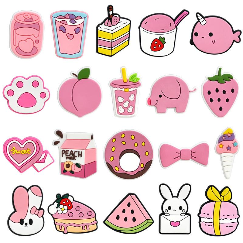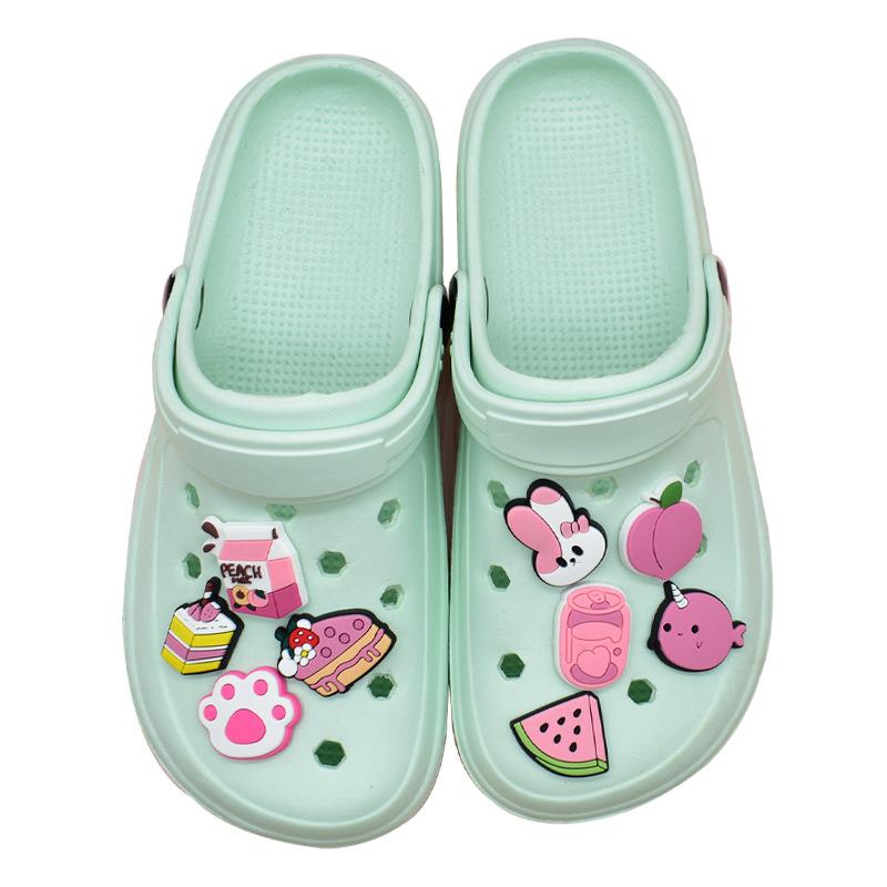Bonita serie de zapatos de niña rosa con agujeros, hebilla de zapato de flor, pegamento suave de PVC, zapatos de jardín para niños, accesorios decorativos al por mayor