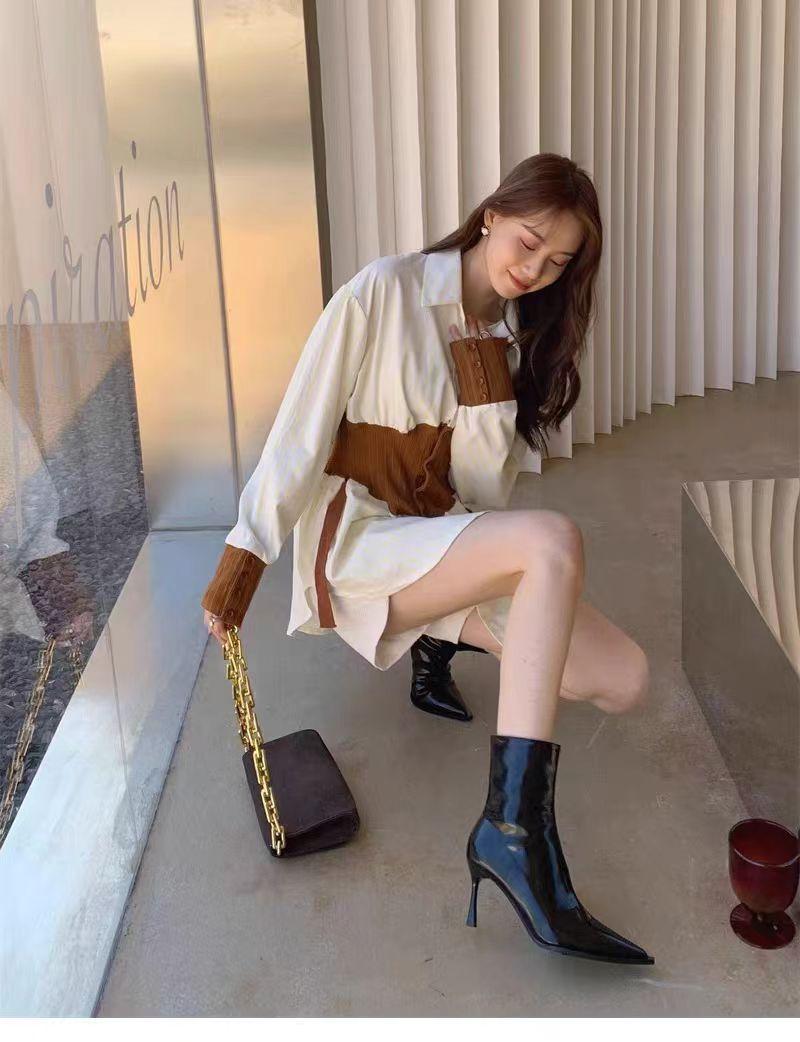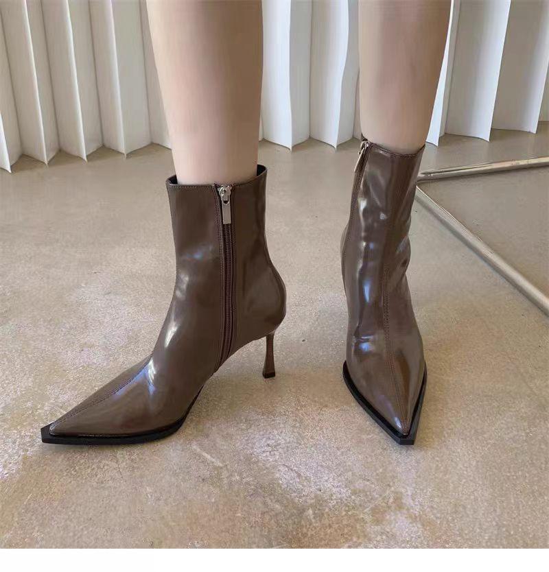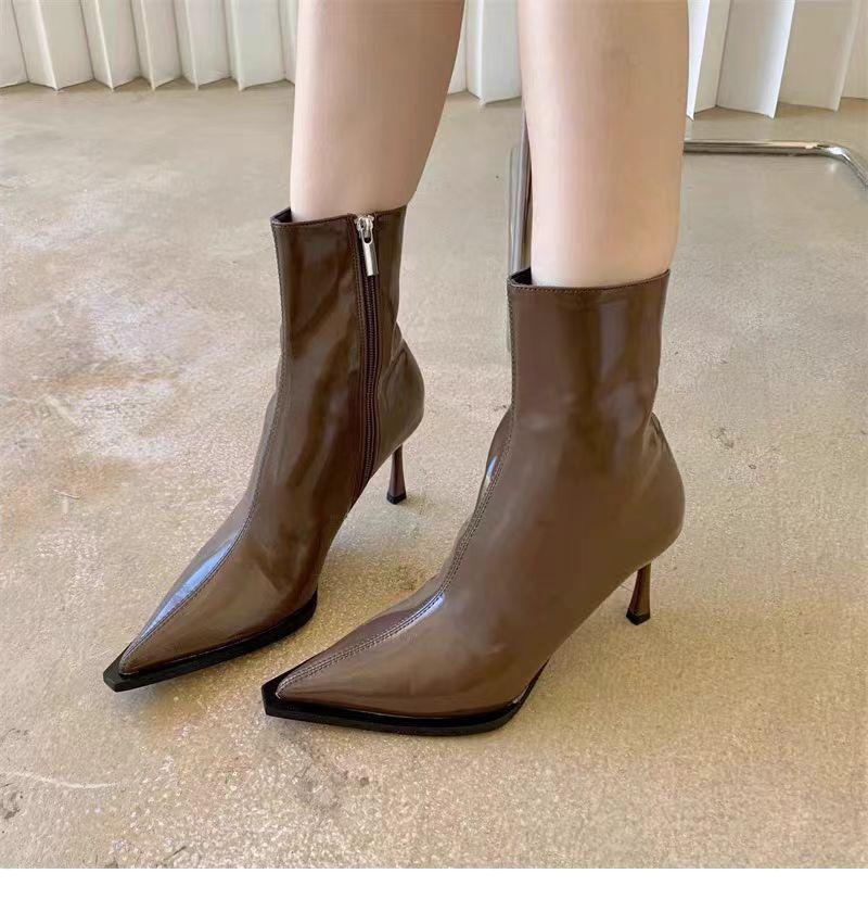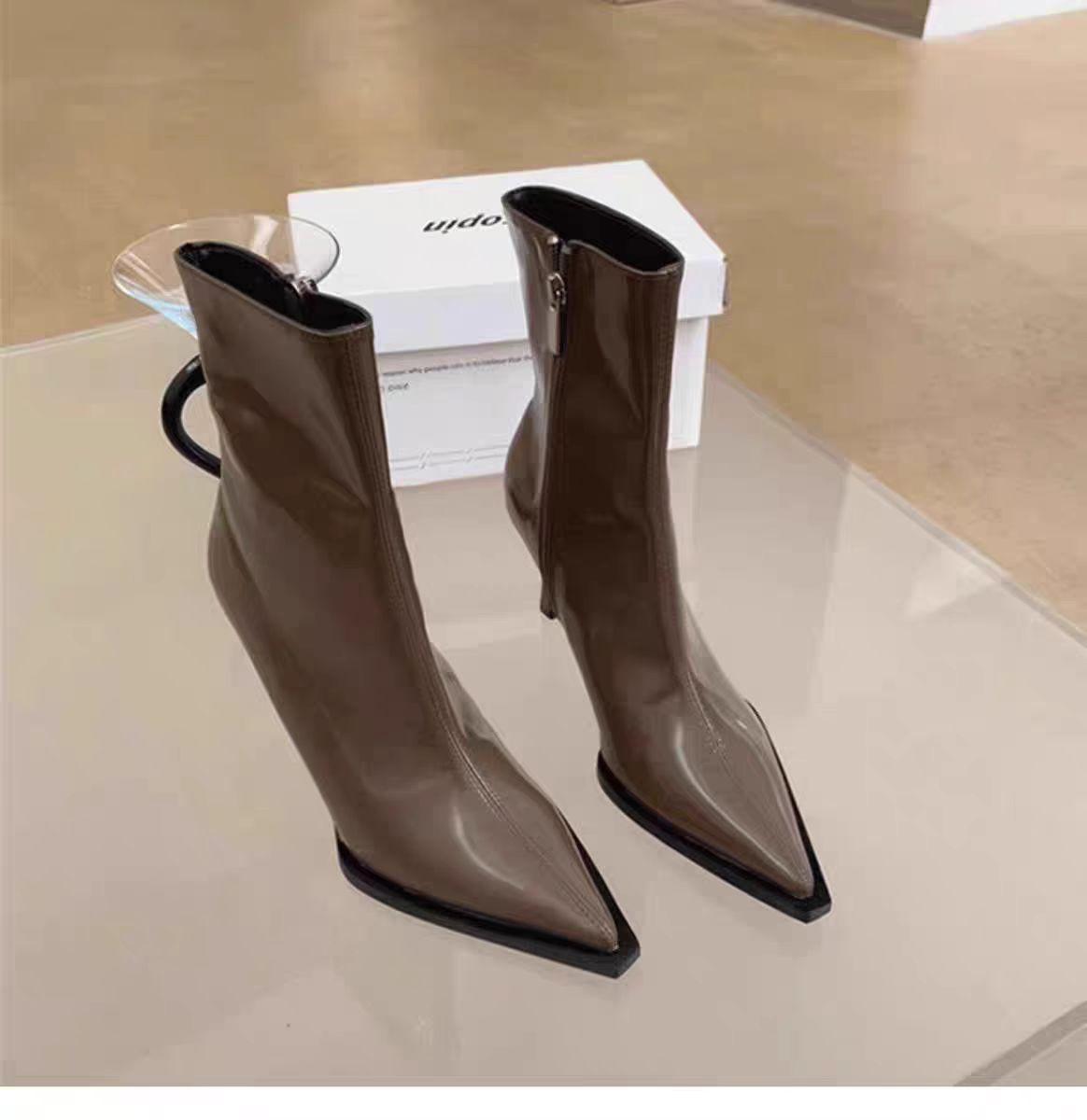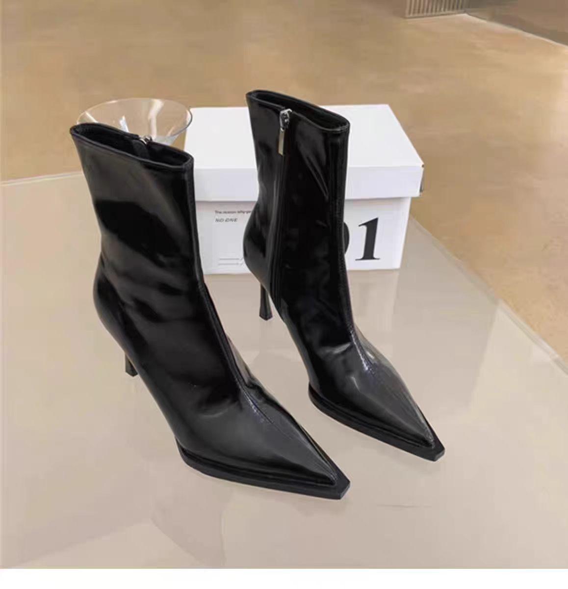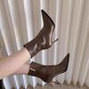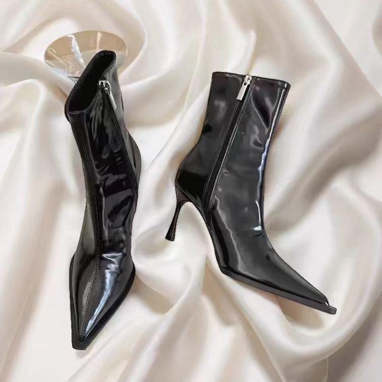 Botines puntiagudos estilo retro europeo y americano para mujer, novedad de 2024, elegantes, combinables con todo, de piel suave, con tacón de aguja fino.