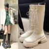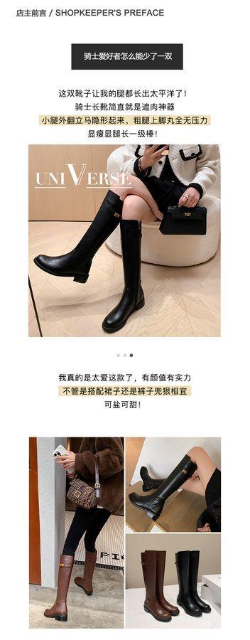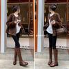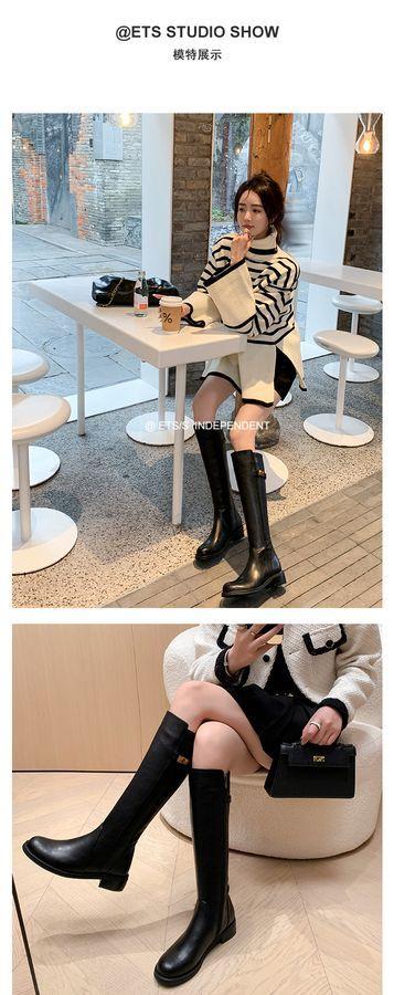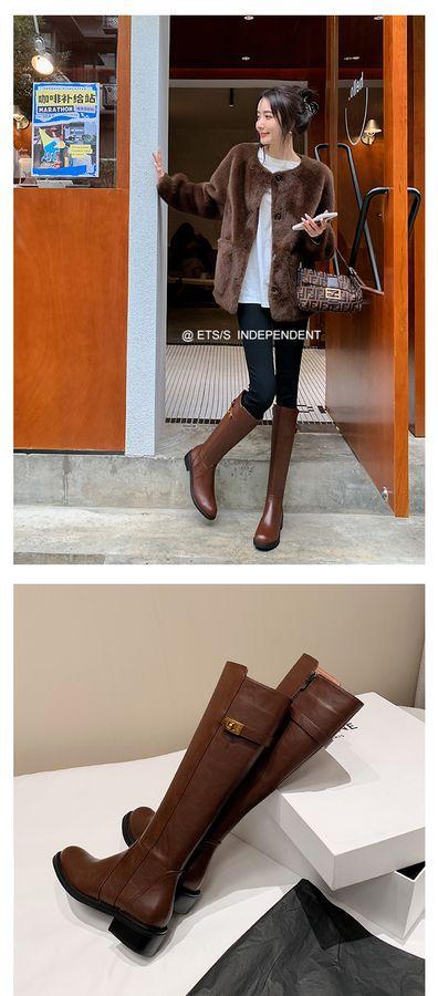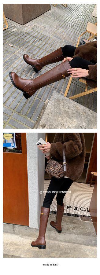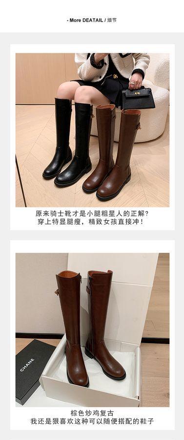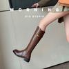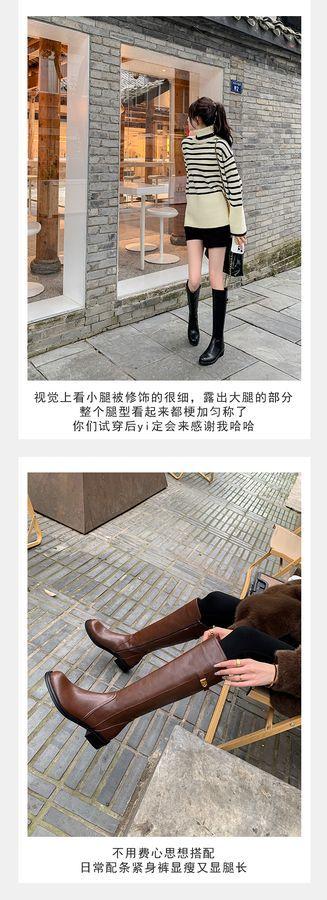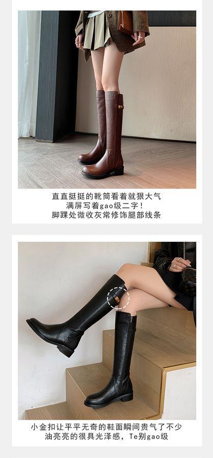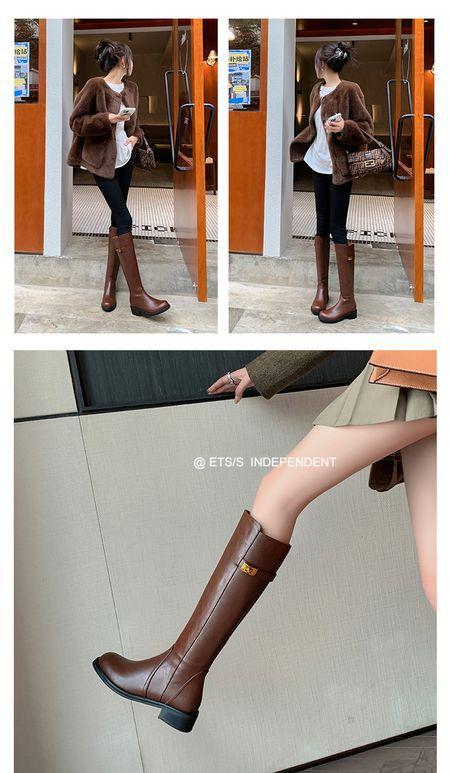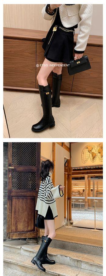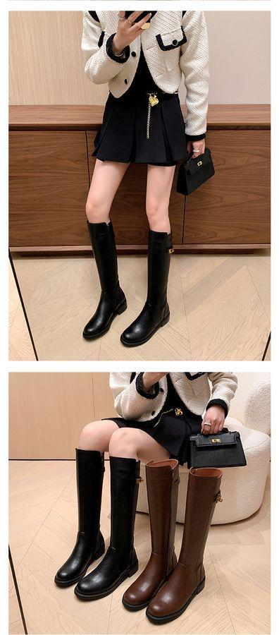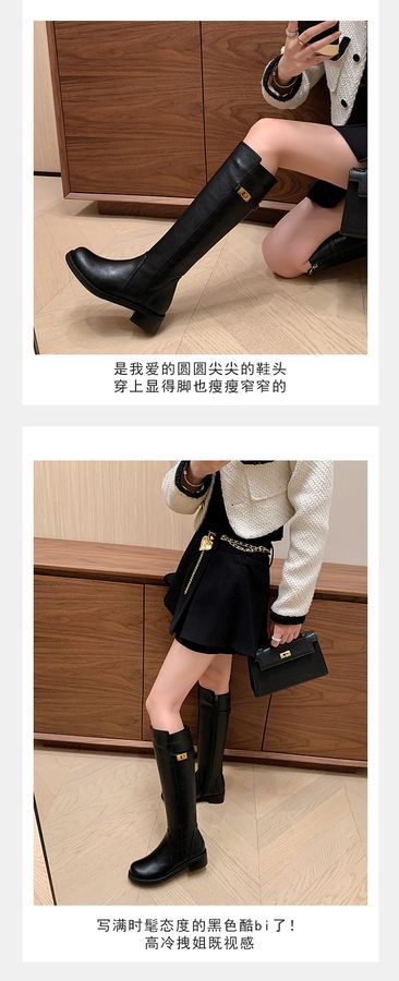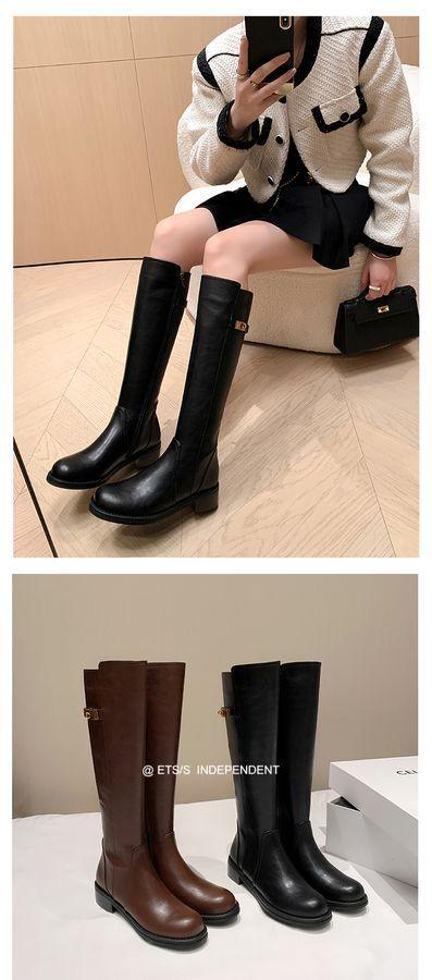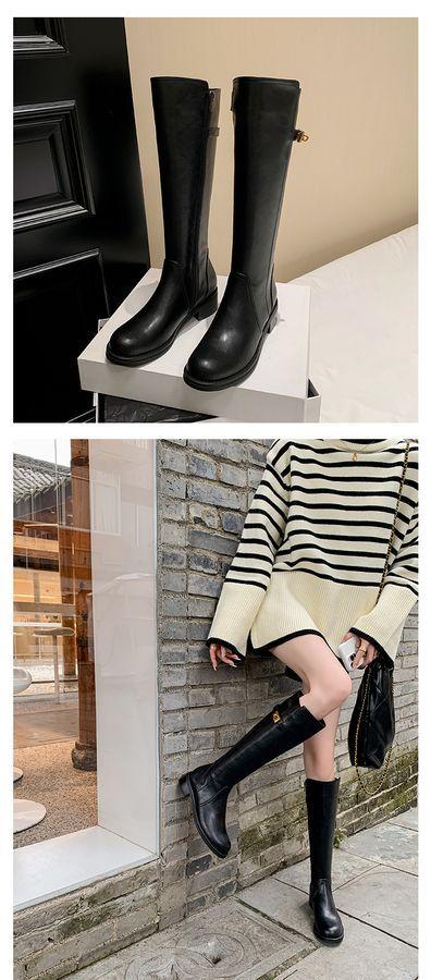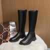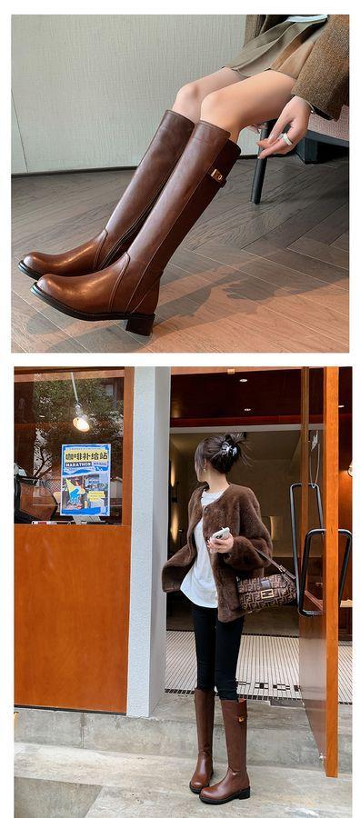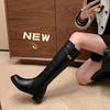 Botas Largas de Invierno 2024 para Afinar las Piernas, Punta Redonda, Hebilla Trasera de Bloqueo, Nuevo Estilo, Hasta la Rodilla, Combinan con Todo, Botas de Caballero Retro para Mujer