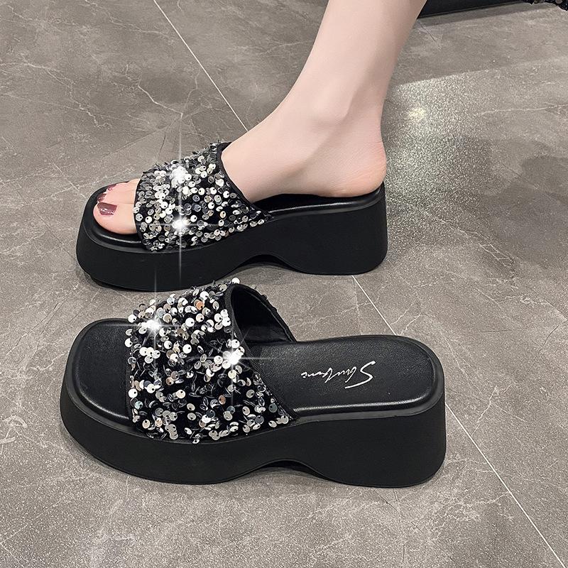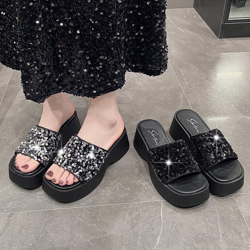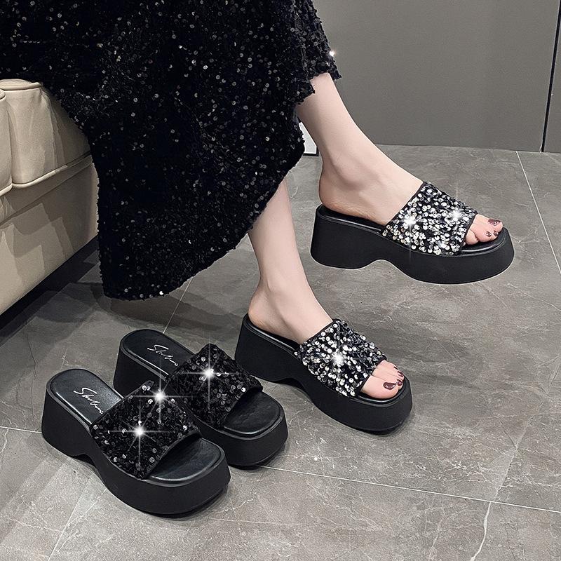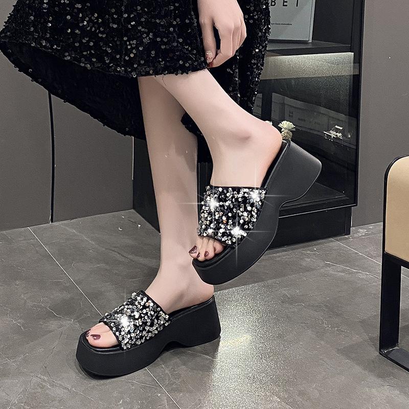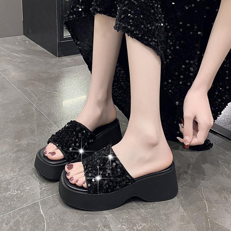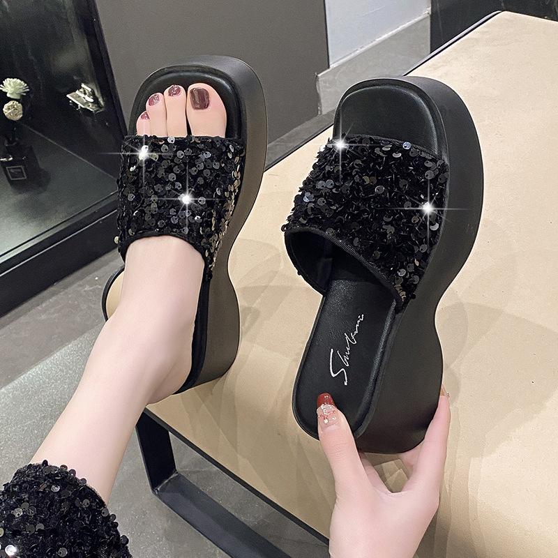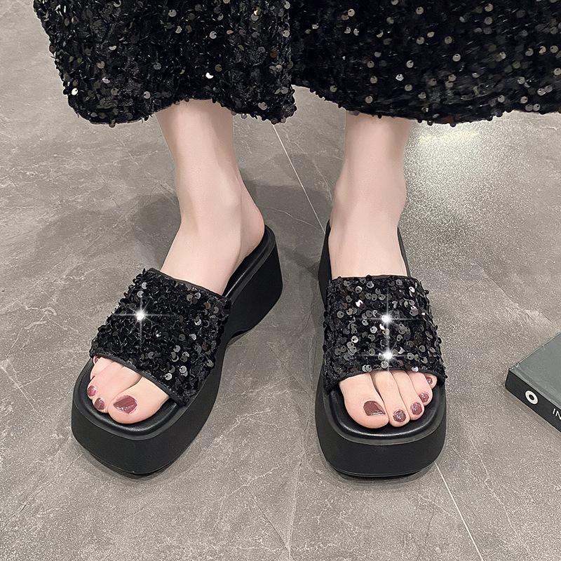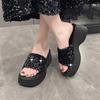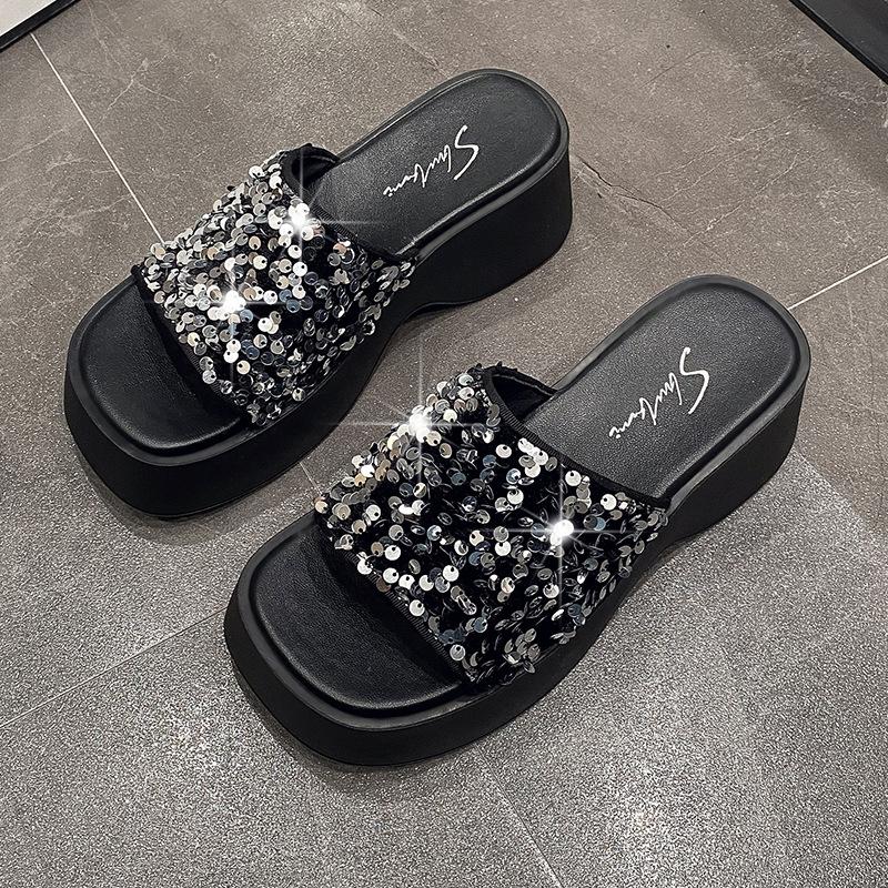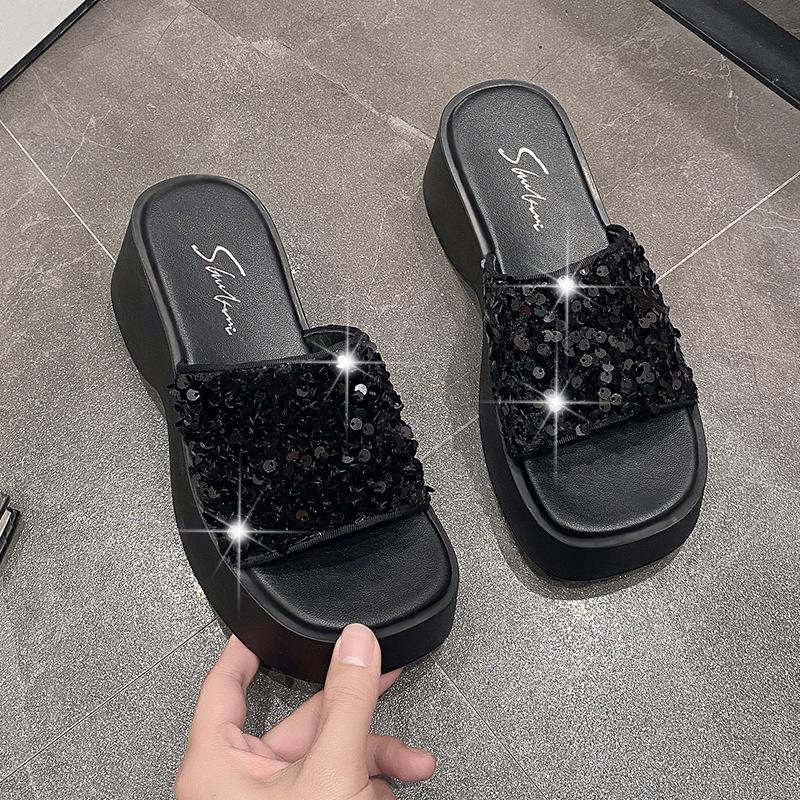 Sandalias de suela gruesa para mujer para usar al aire libre en verano 2024. Nuevas chanclas versátiles de estilo moderno y atractivo para mujer. Sandalias de playa informales.