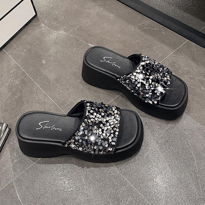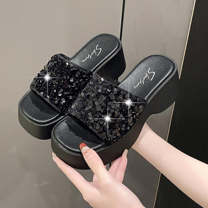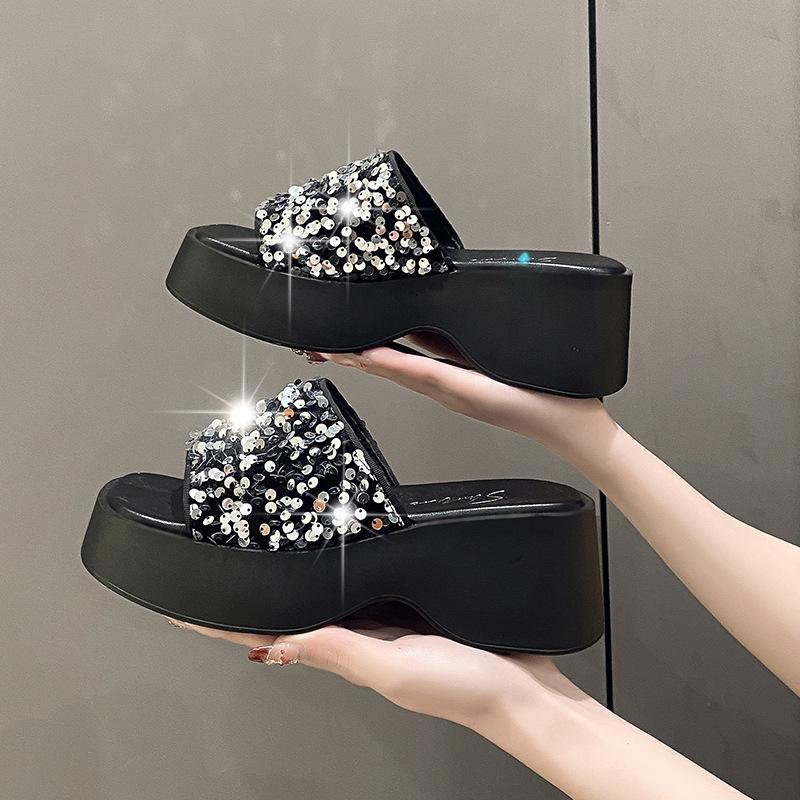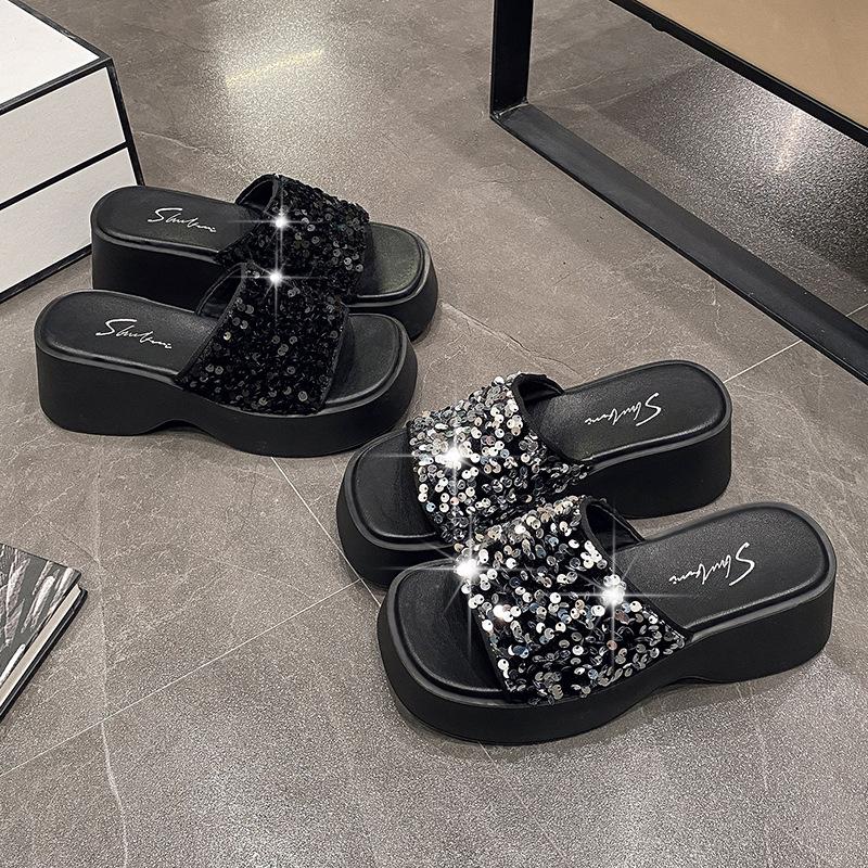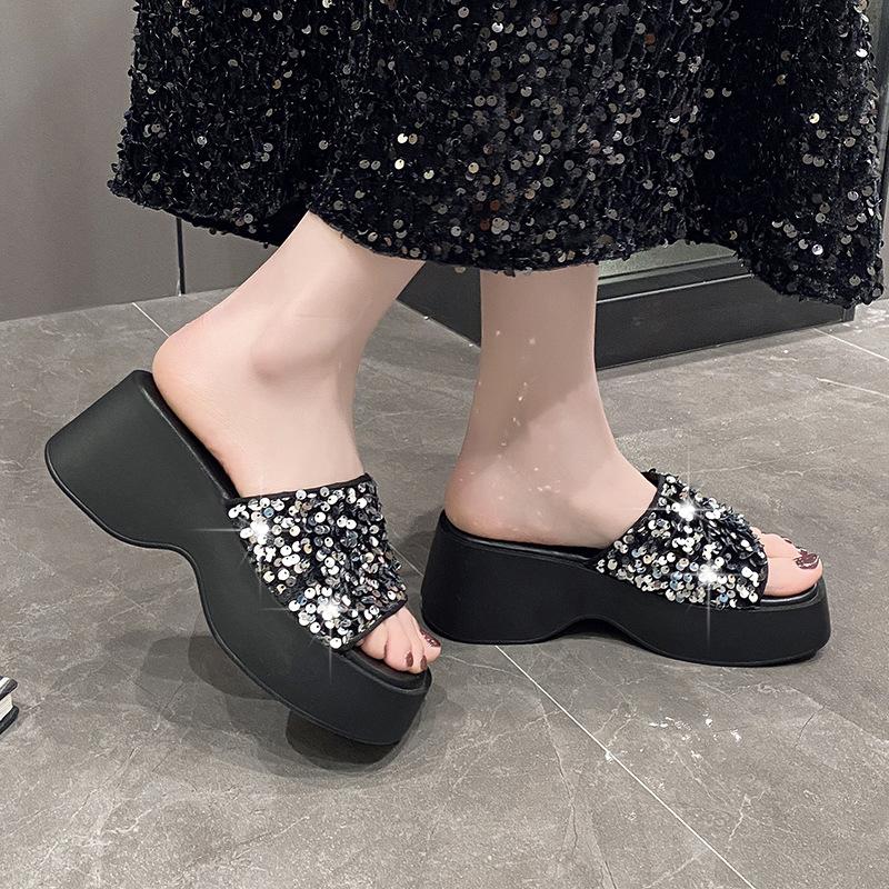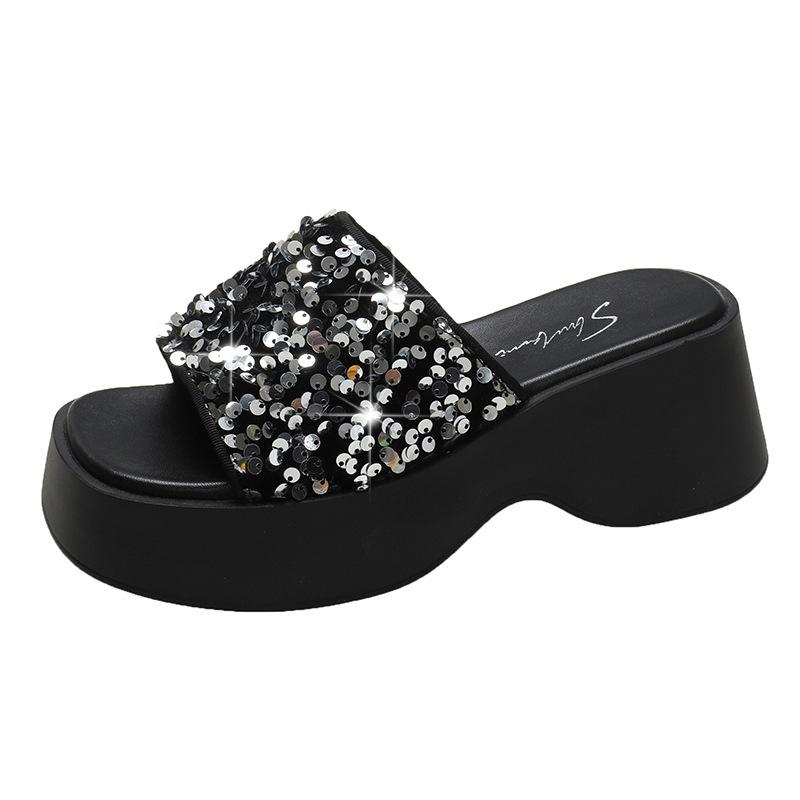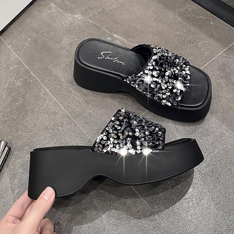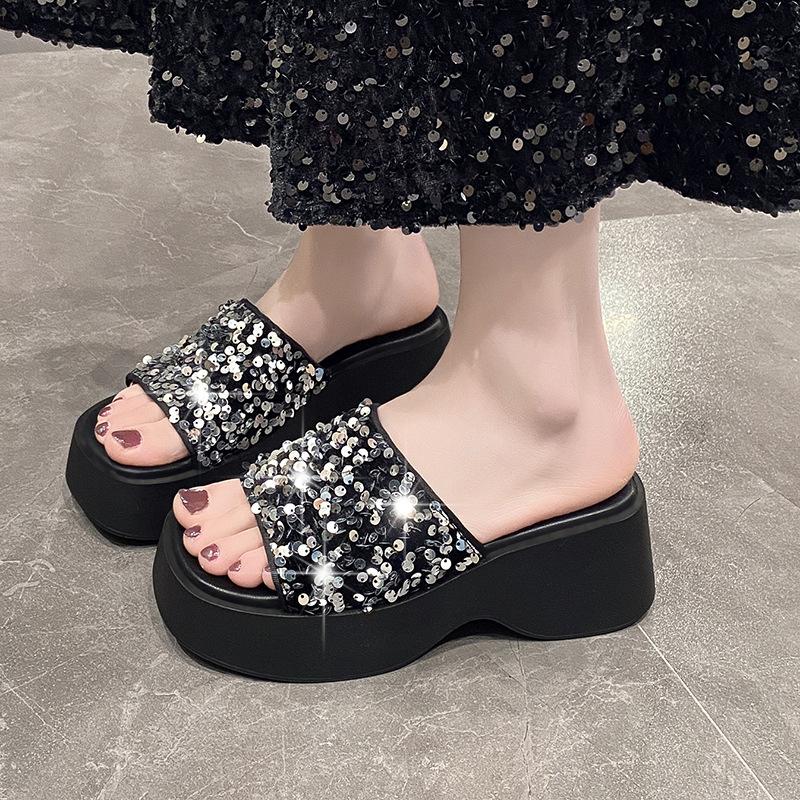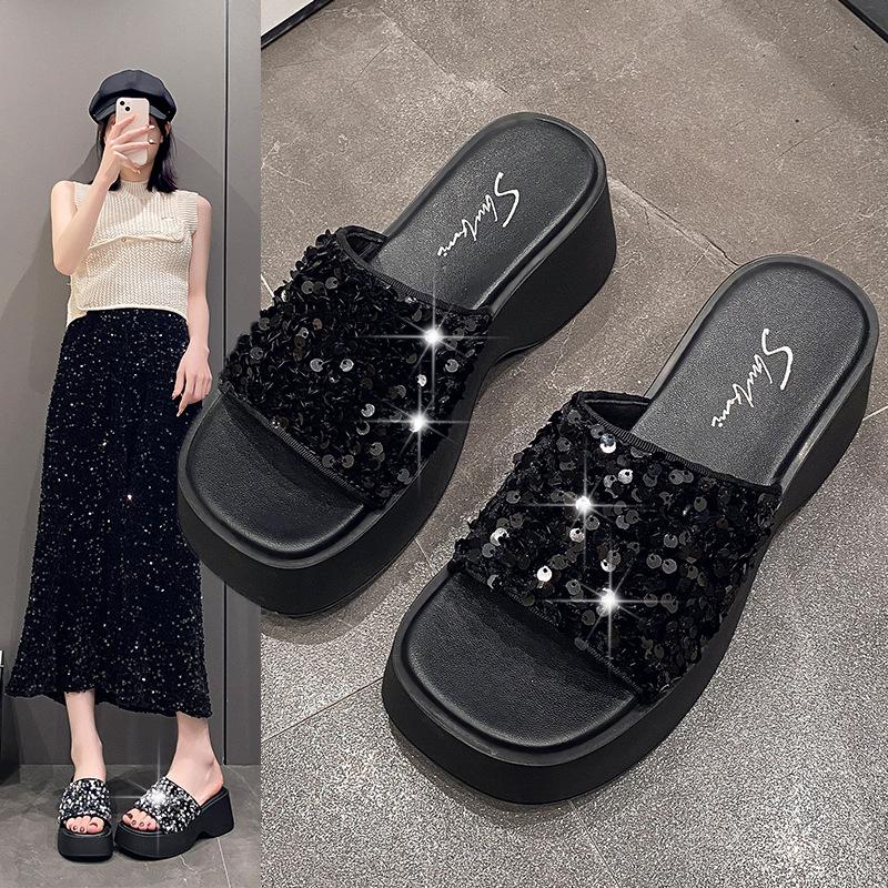 Sandalias de suela gruesa para mujer para usar al aire libre en verano 2024. Nuevas chanclas versátiles de estilo moderno y atractivo para mujer. Sandalias de playa informales.