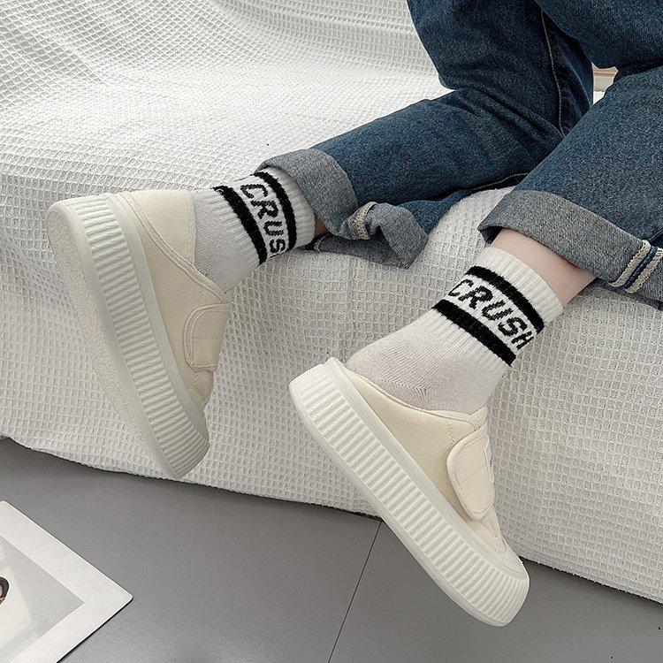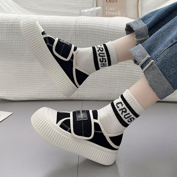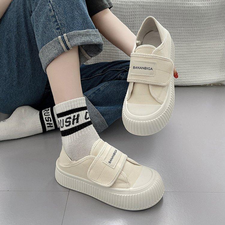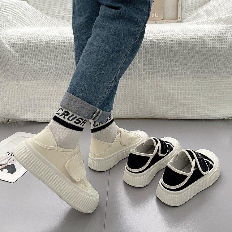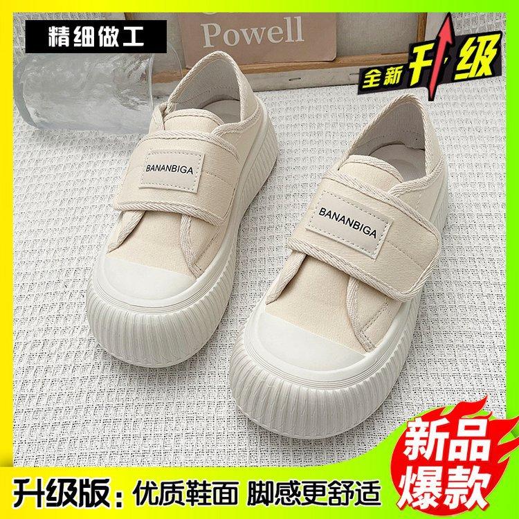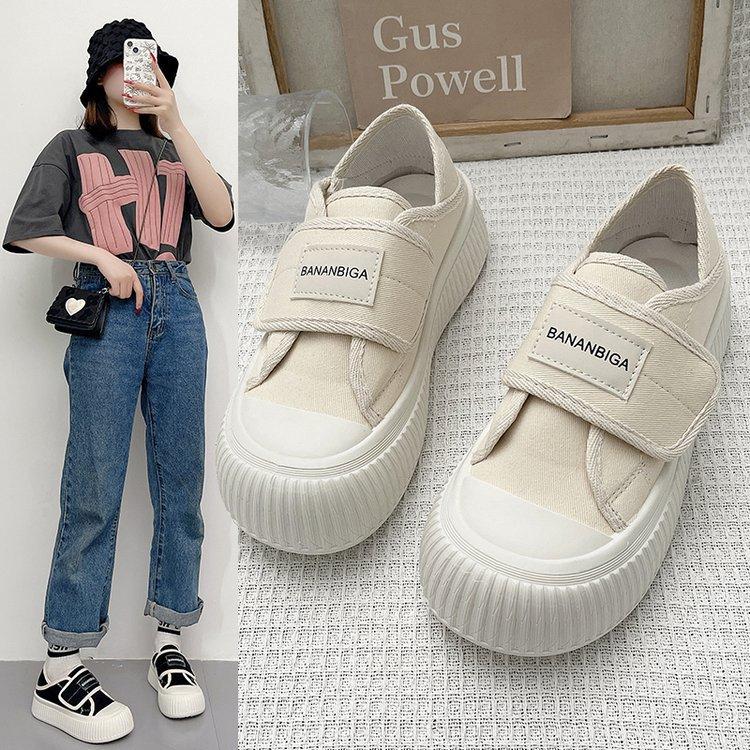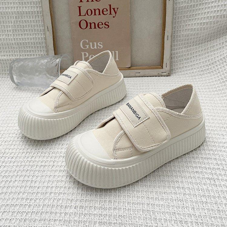 Tenis de Velcro, Zapatos de Tela, Zapatos Blancos de Mujer, Compras Transfronterizas de Comercio Exterior, Modelos Populares para Todas las Estaciones, Aumento de Estatura para Personas Bajas