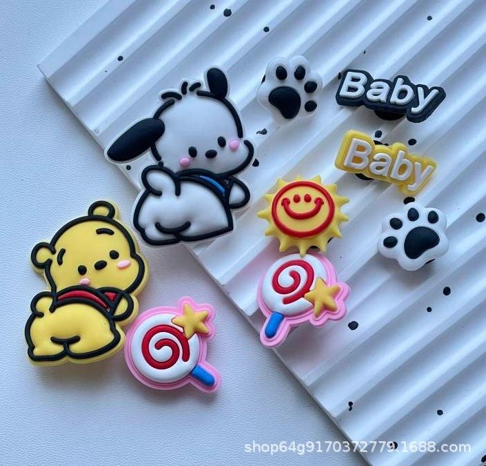 Accesorios para zapatos con agujeros de dibujos animados transfronterizos 2024, DIY, bonitos zapatos con agujeros, hebilla decorativa con flores.