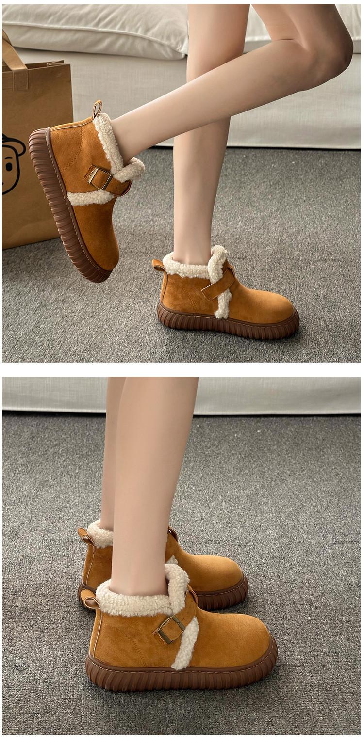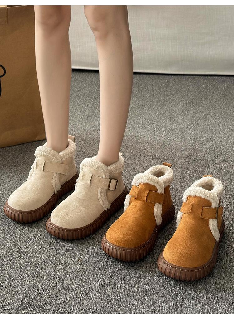 Botas de nieve de suela gruesa del noreste para mujer invierno 2024 nuevas con forro polar engrosado feo adorable antideslizante zapatos de algodón tipo pan marea