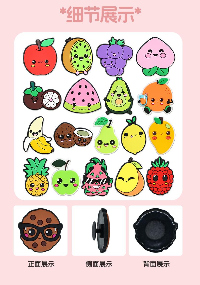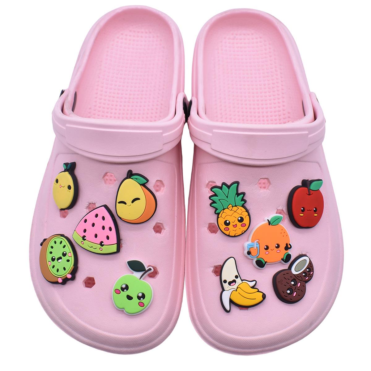 Nueva serie de zapatos de frutas lindas, zapatos con agujeros de flores, accesorios de bricolaje, hebilla de zapato, zapatos de jardín de plástico de goma suave, accesorios decorativos