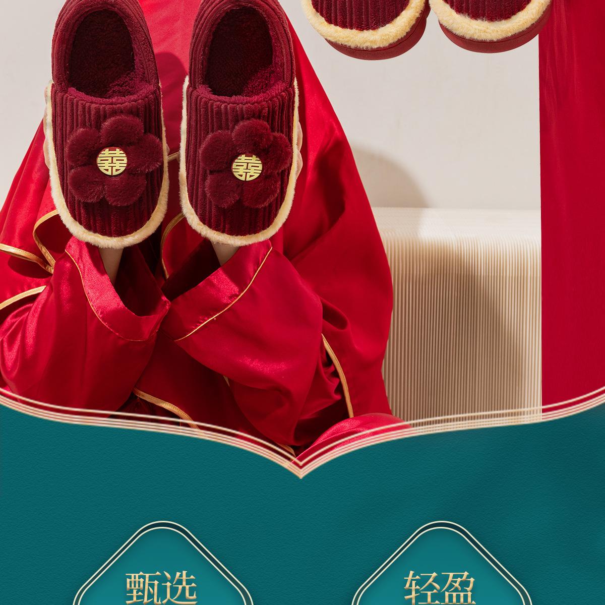 Zapatos de boda de algodón, de alta gama, para parejas, festivos, rojos, de invierno, ligeros y lujosos.