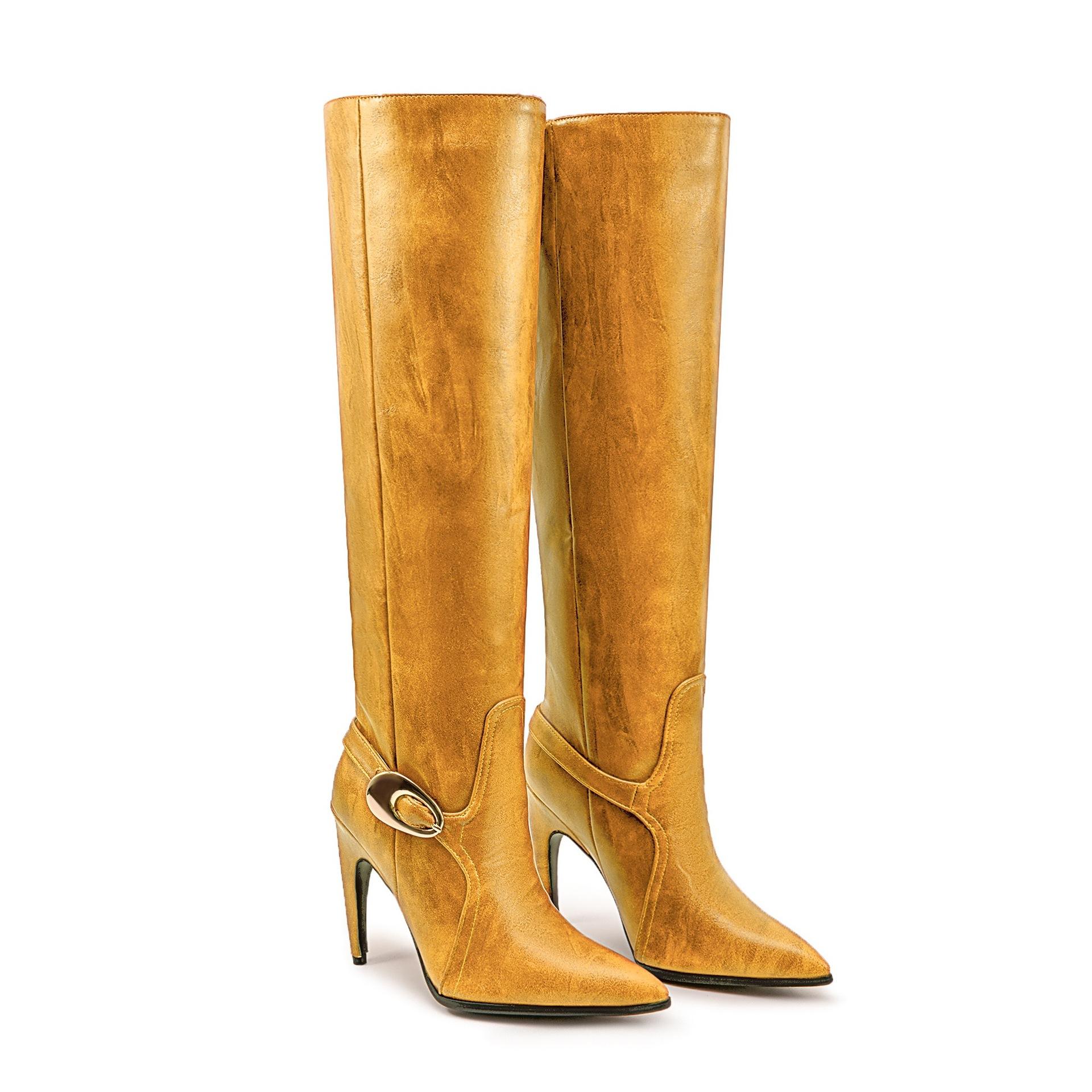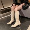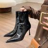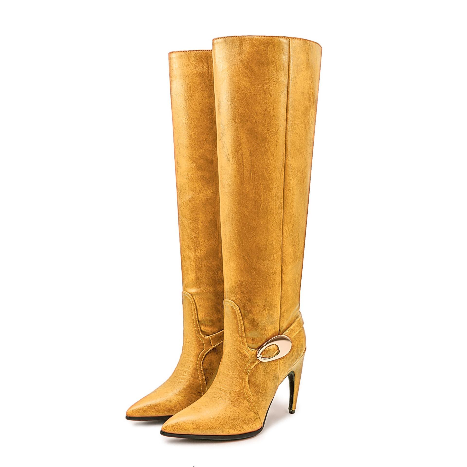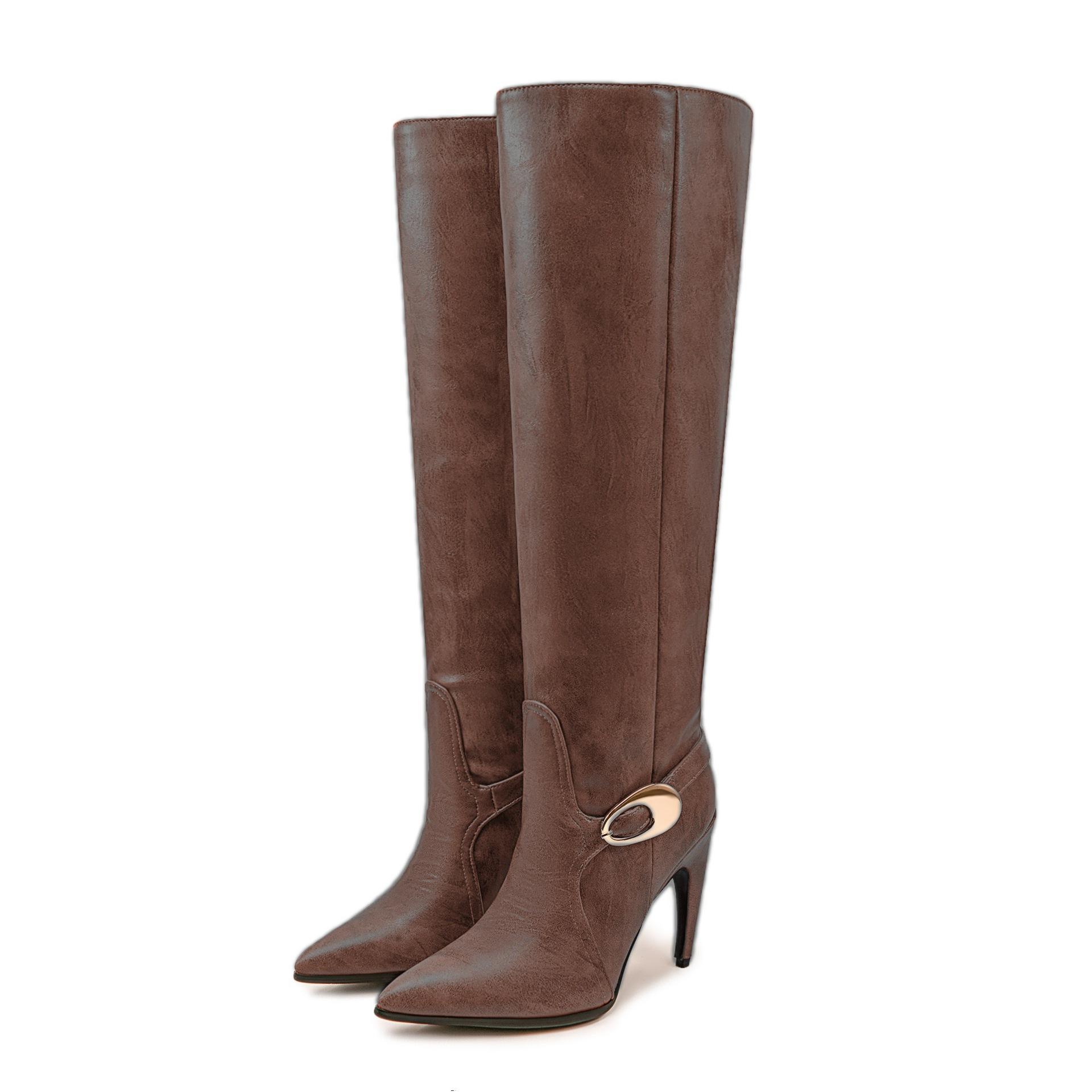 Botas Altas de Tacón de Gatito Retro Exportación Nuevo Punta Afilada Manga Cinturón Hebilla Tacón Super Alto Botas de Moda Elegantes Talla Grande Mujer