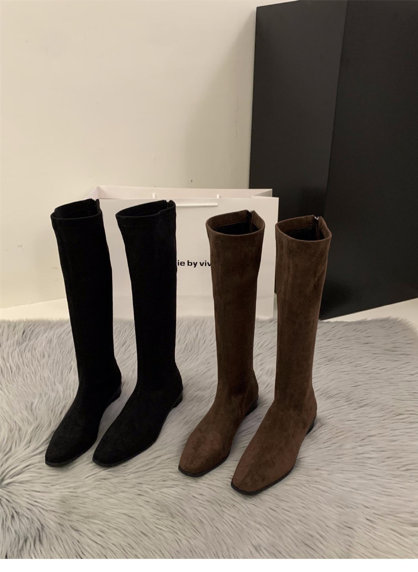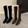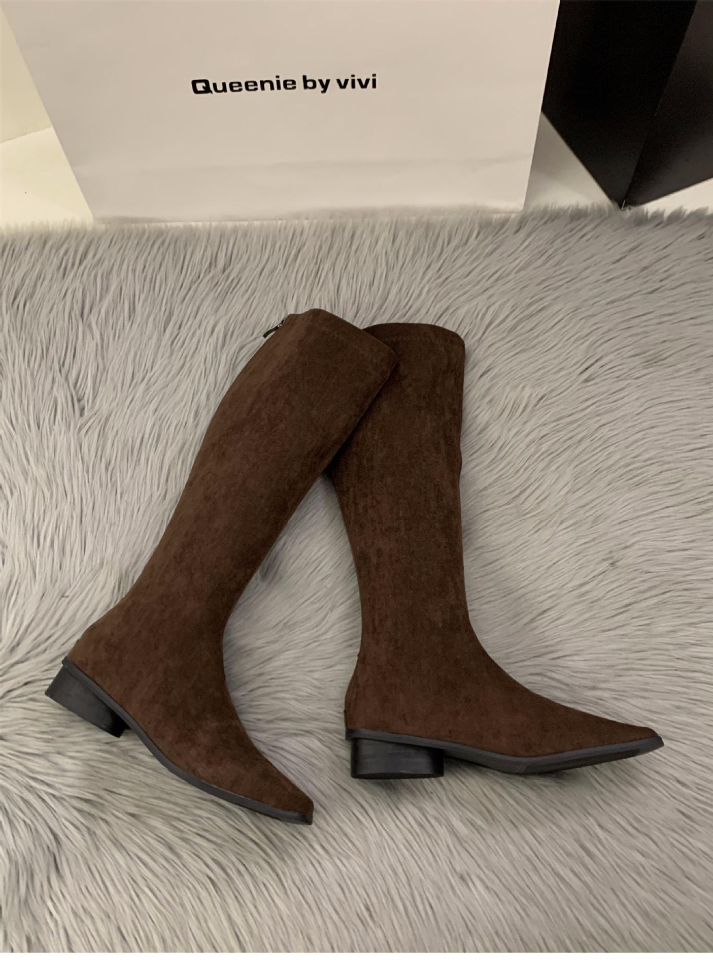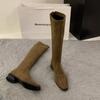 Compra Botas Largas de Gamuza de Tacón Grueso y Punta Afilada Zapatos de Mujer 2025 Nuevo Otoño e Invierno Estilo Coreano Botas Largas Hasta Media Pantorrilla Botas de Equitación al por mayor en Joom.pro