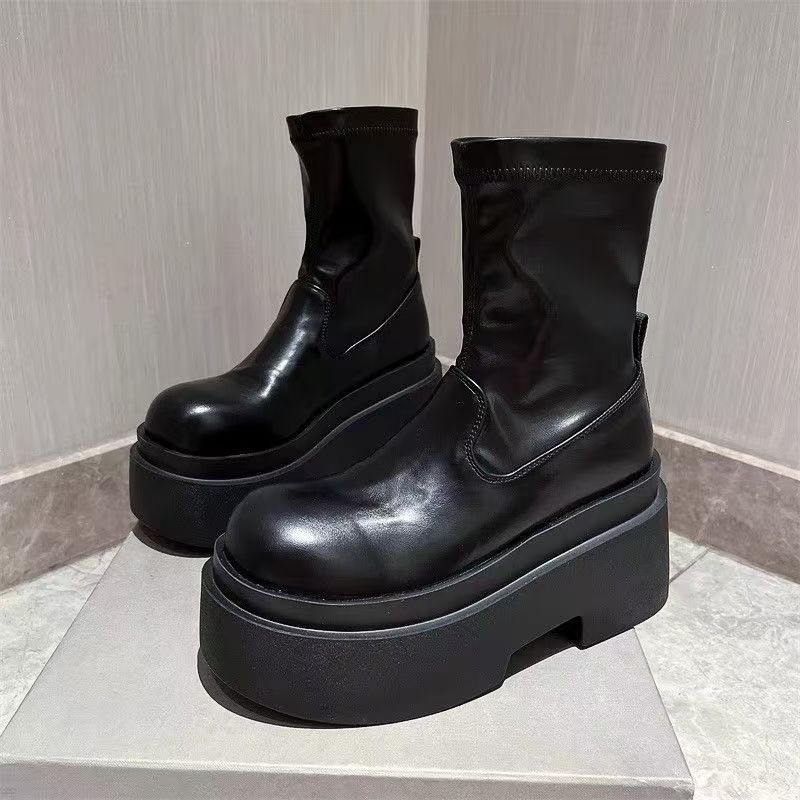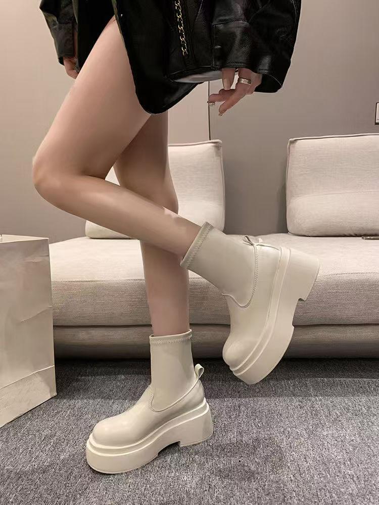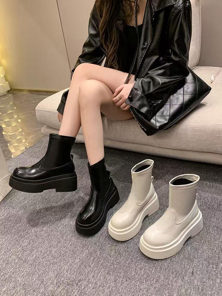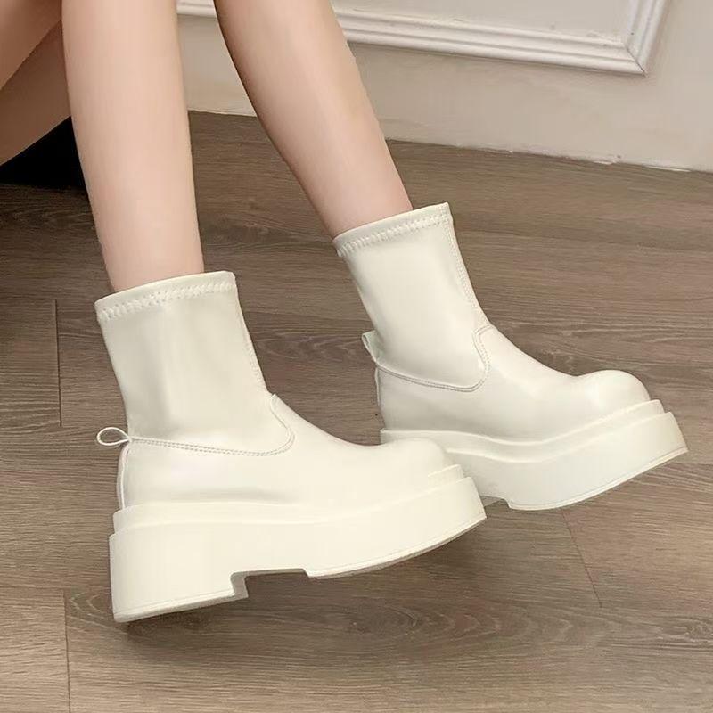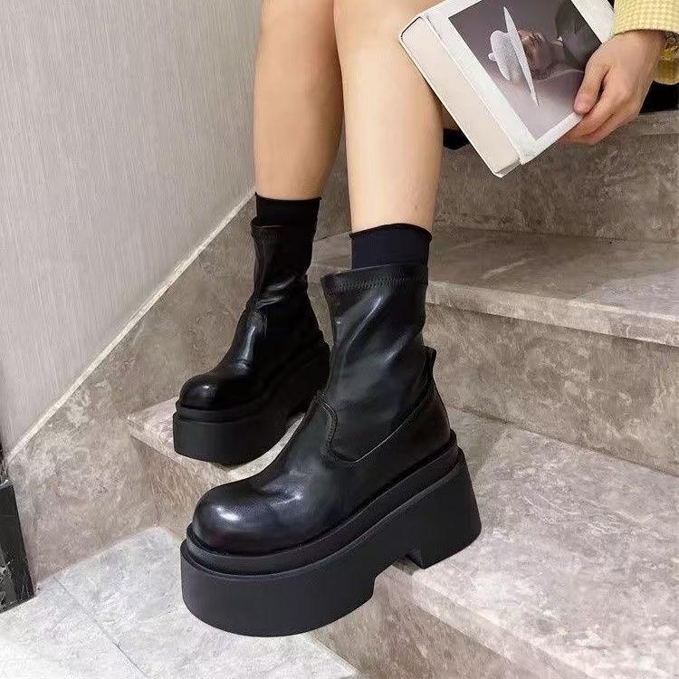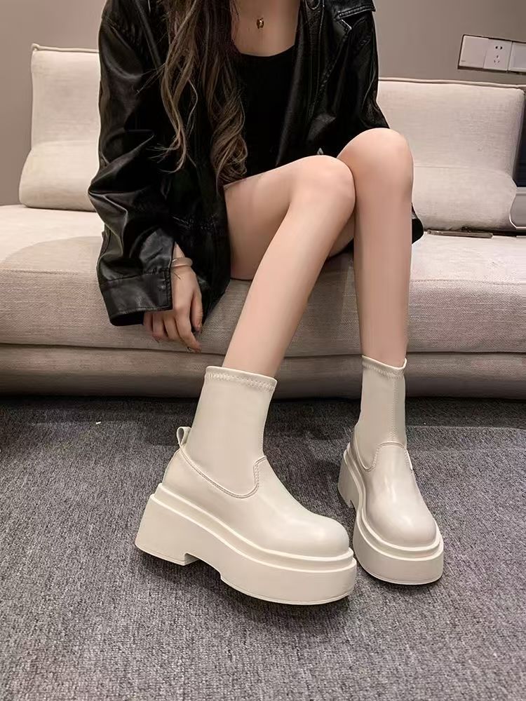 Moda Joker Fondo Grueso Altura Aumentada Casual Pequeñas Elásticas Botines Delgados 2024 Nuevos Botines Altos Slim al Tobillo para Mujer