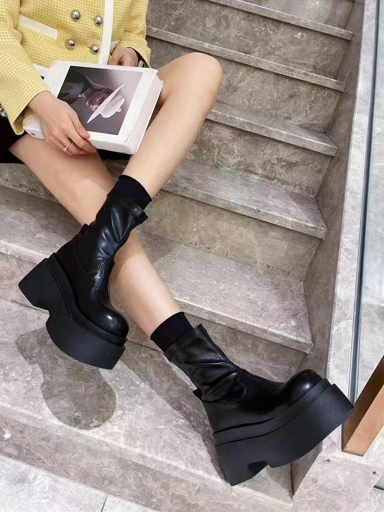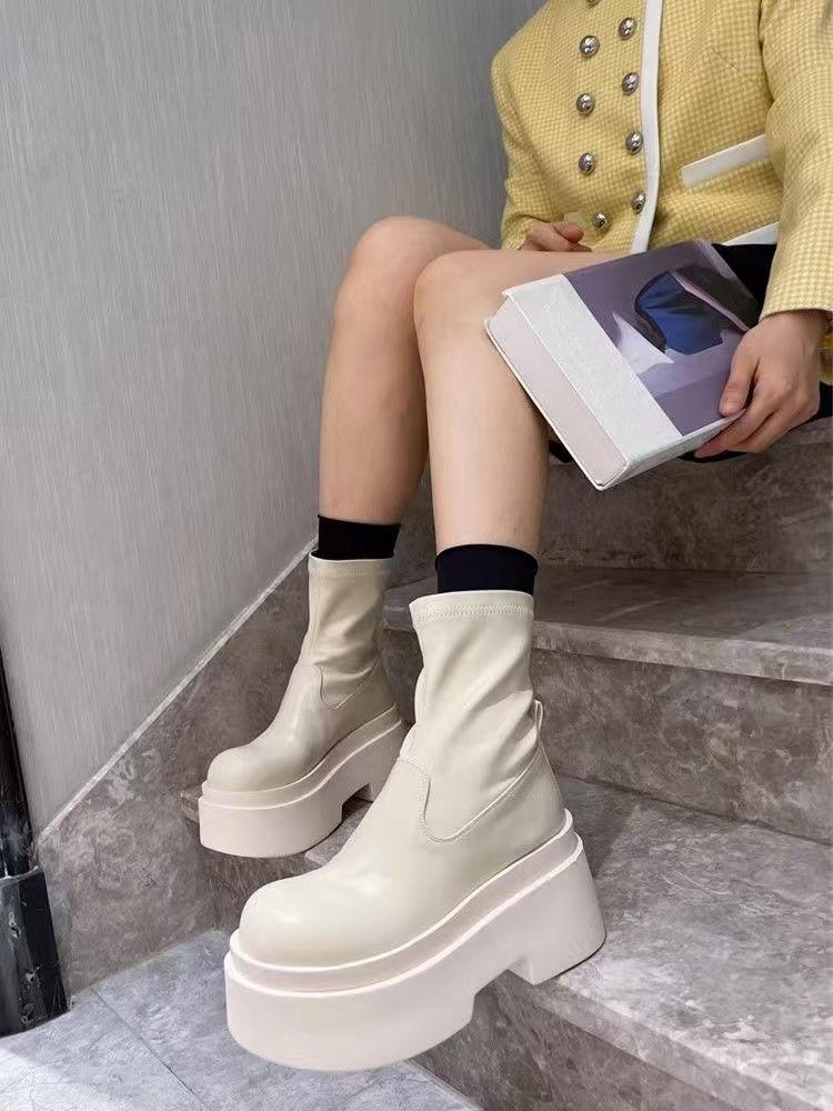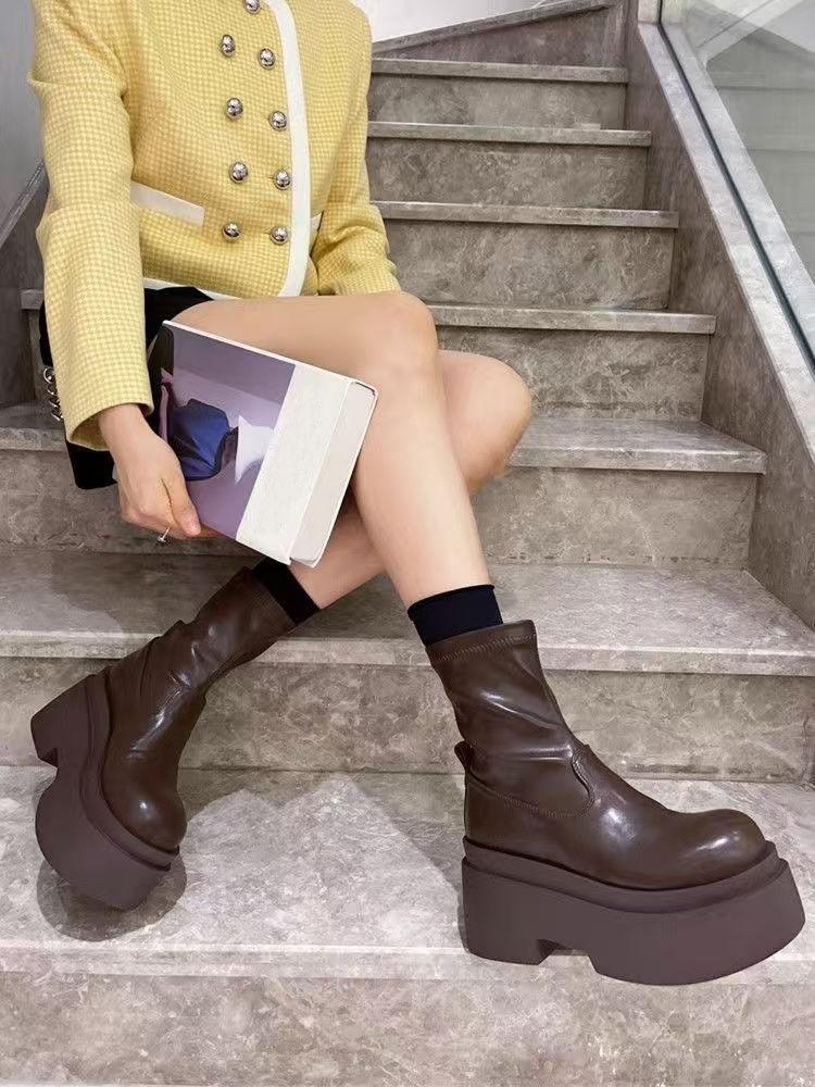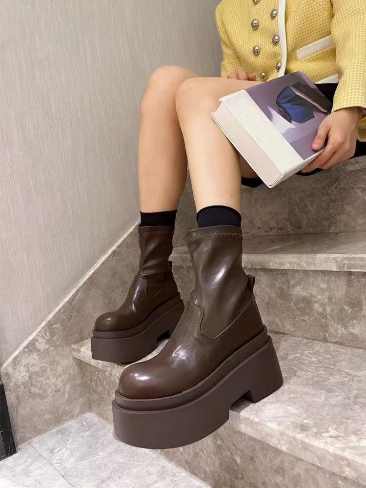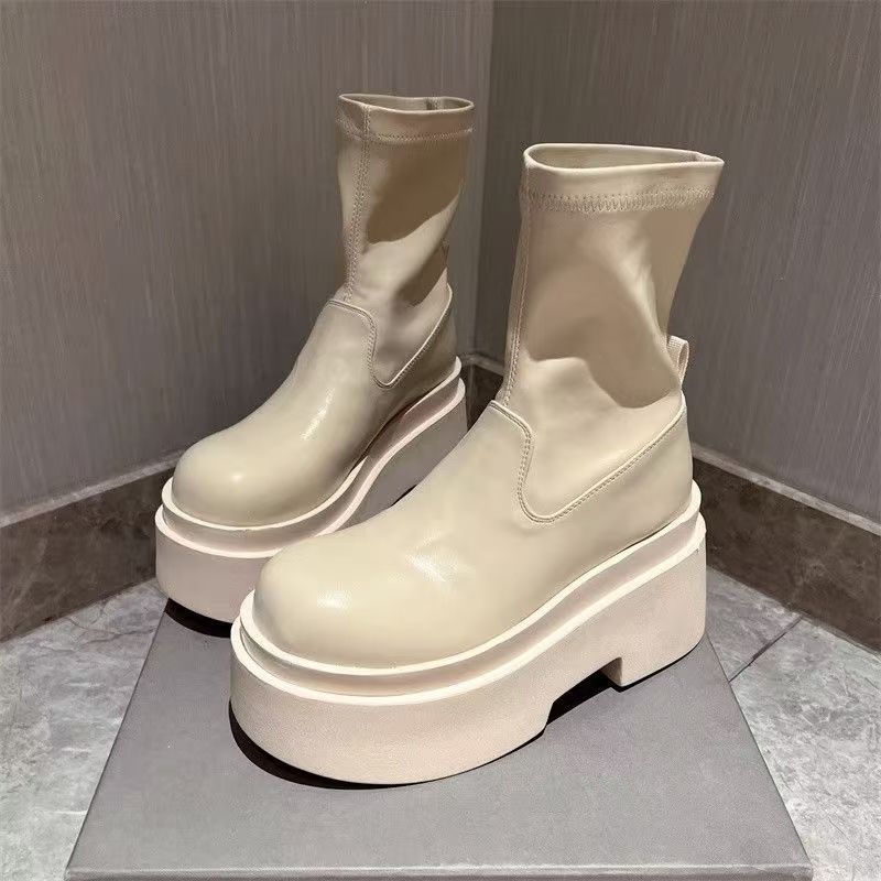 Moda Joker Fondo Grueso Altura Aumentada Casual Pequeñas Elásticas Botines Delgados 2024 Nuevos Botines Altos Slim al Tobillo para Mujer
