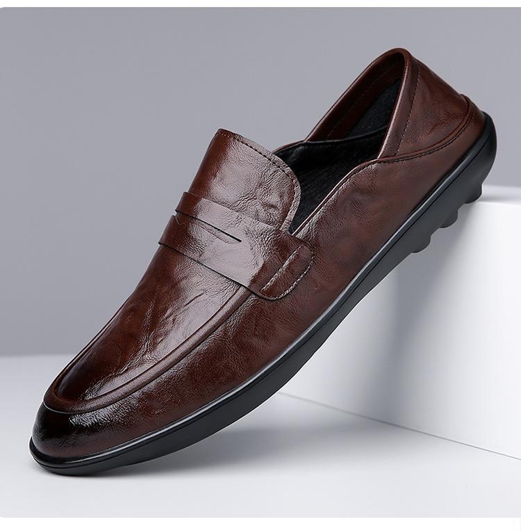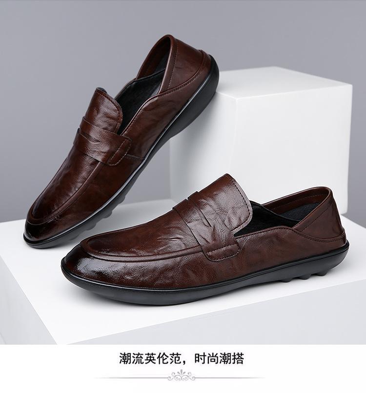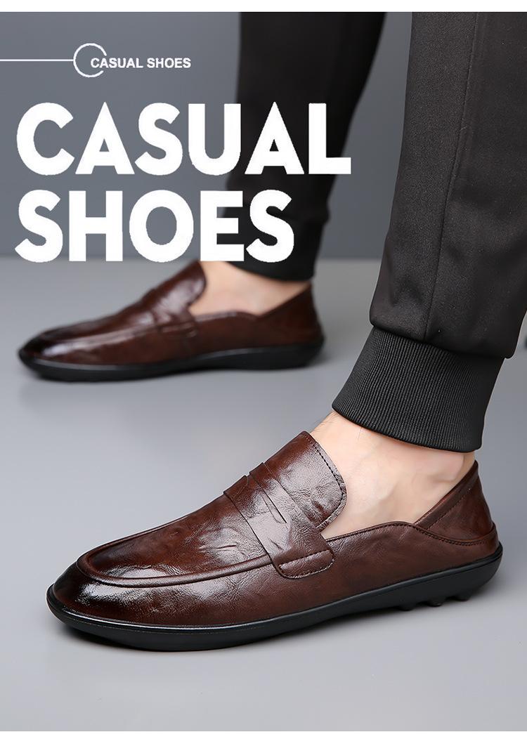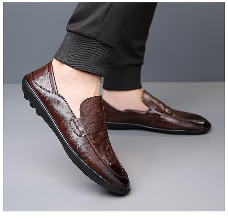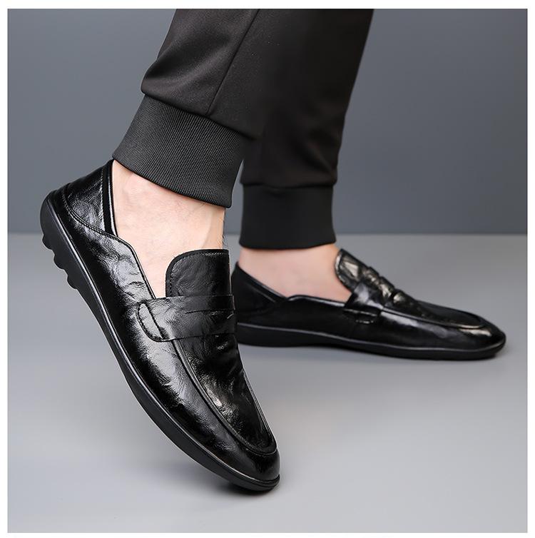 Zapatos Slip-On para Hombre Verano 2025 Nuevos Versátiles Casuales Zapatos de Cuero para Hombre Suela Suave Antideslizantes Zapatos para Conducir Perezosos