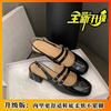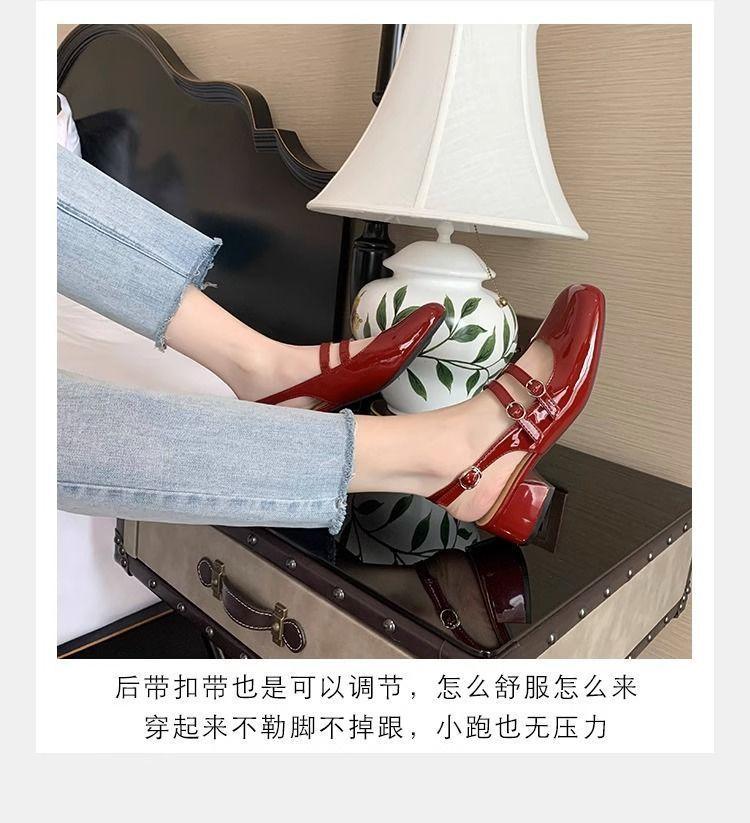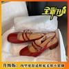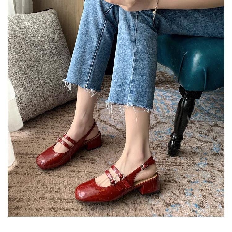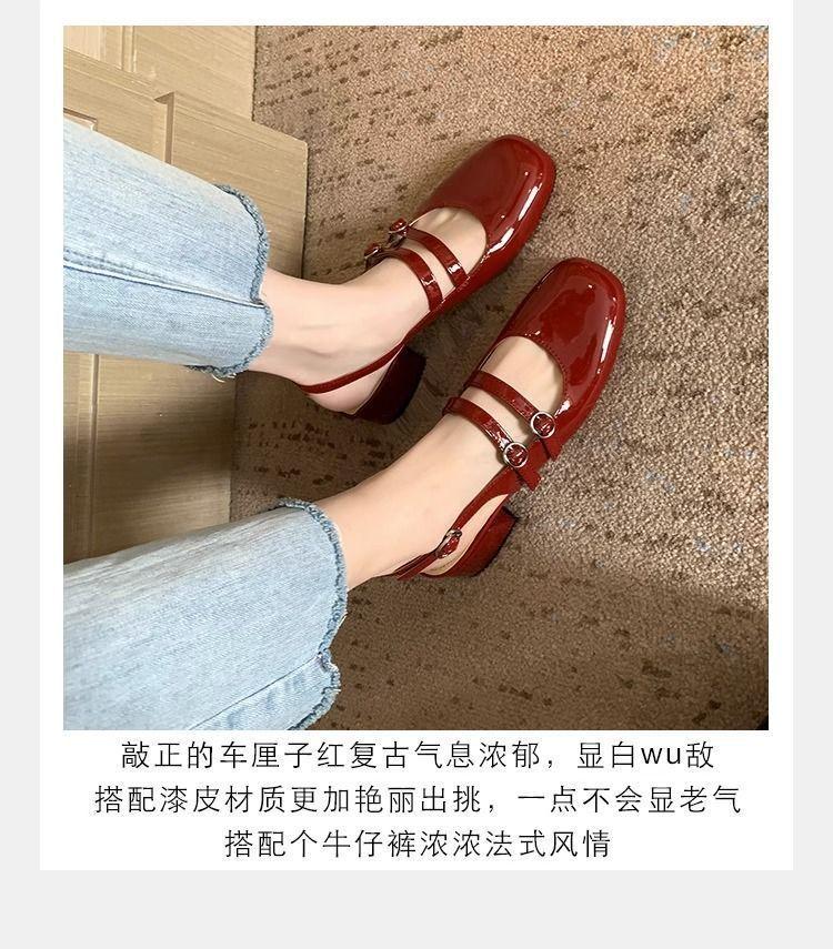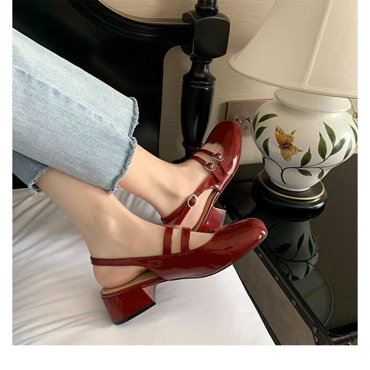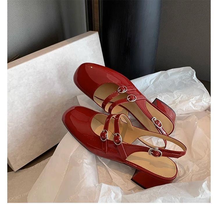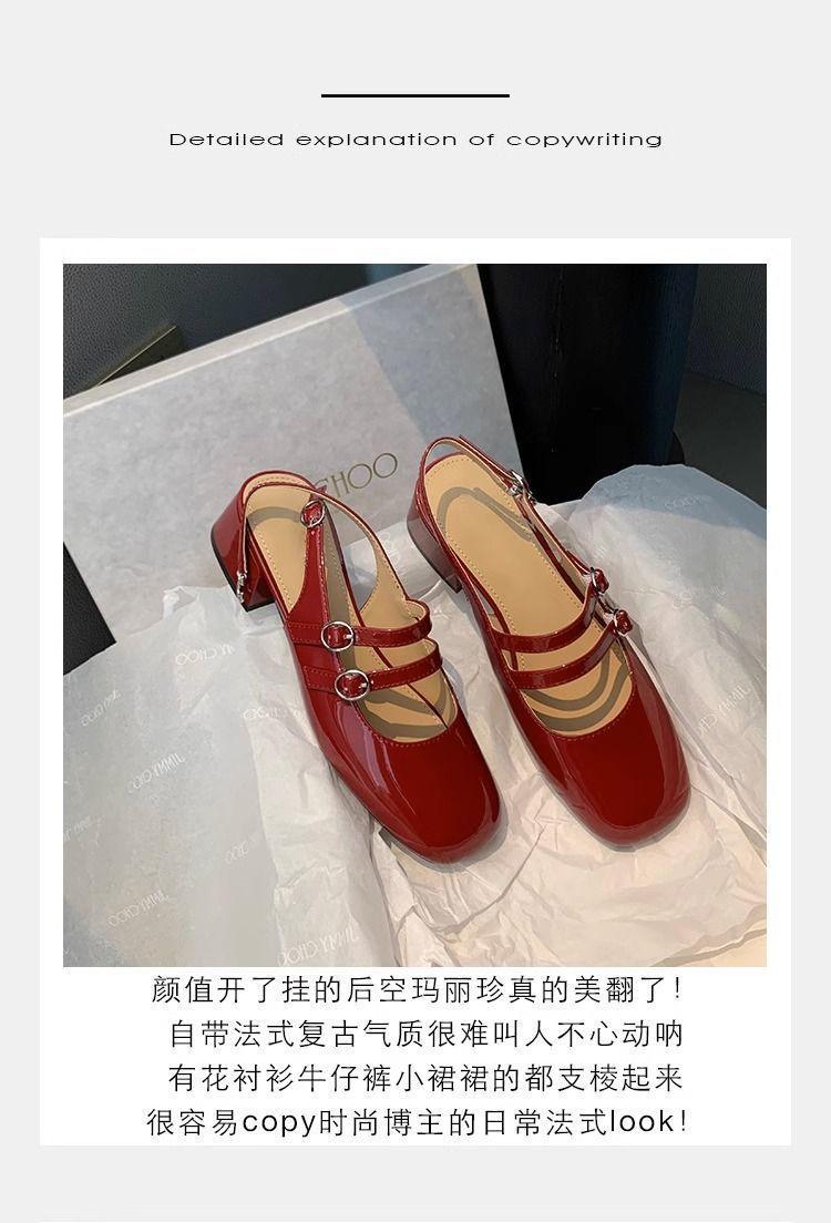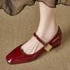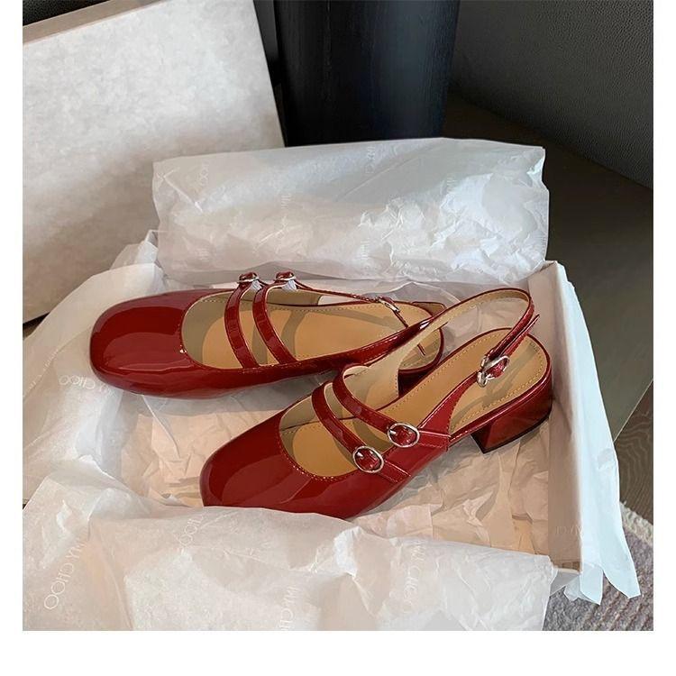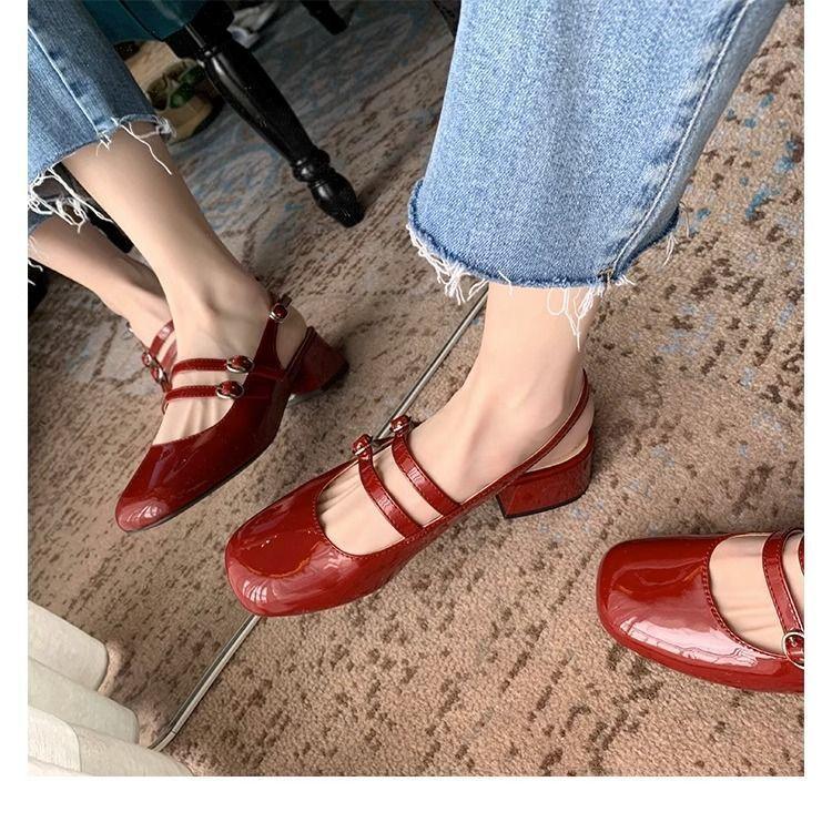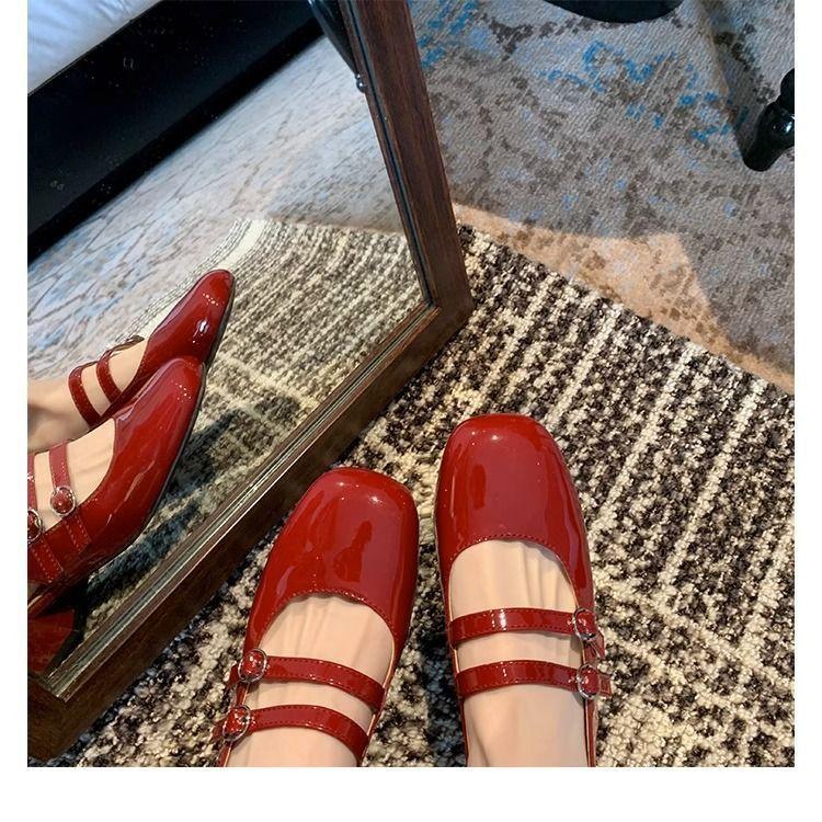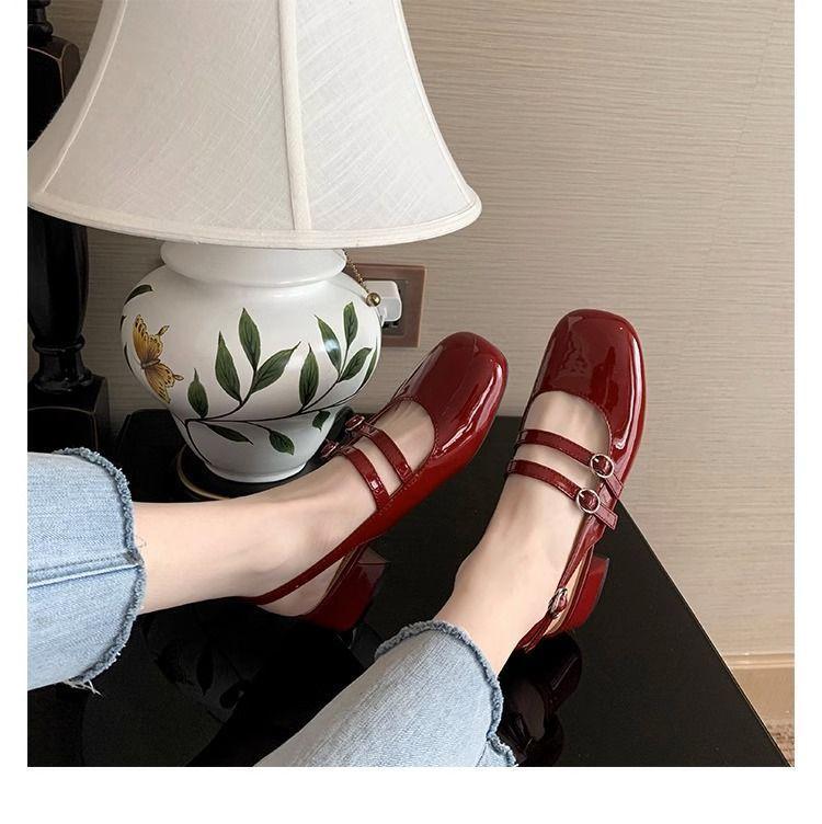 Zapatos Mary Jane para Mujer, Zapatos Rojos Estilo Retro Francés, Modelo Nuevo de Verano 2025, Tacón Medio, Doble Hebilla, Boca Baja, Zapatos Individuales de Tacón Grueso