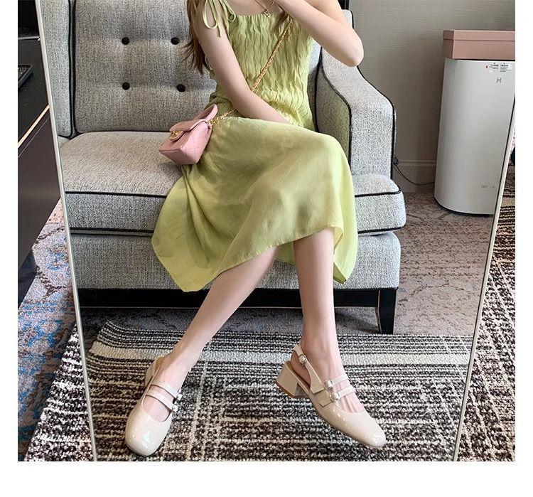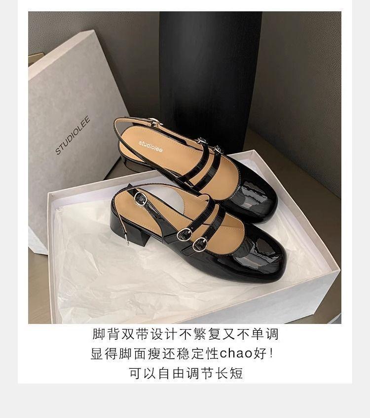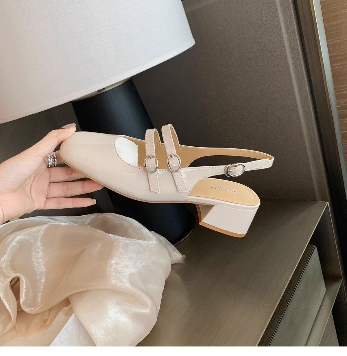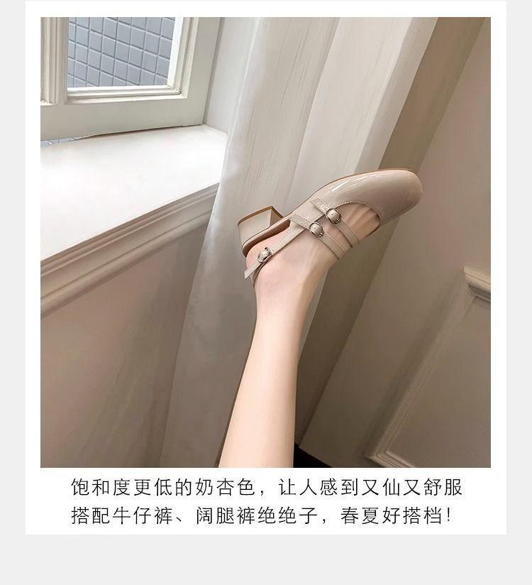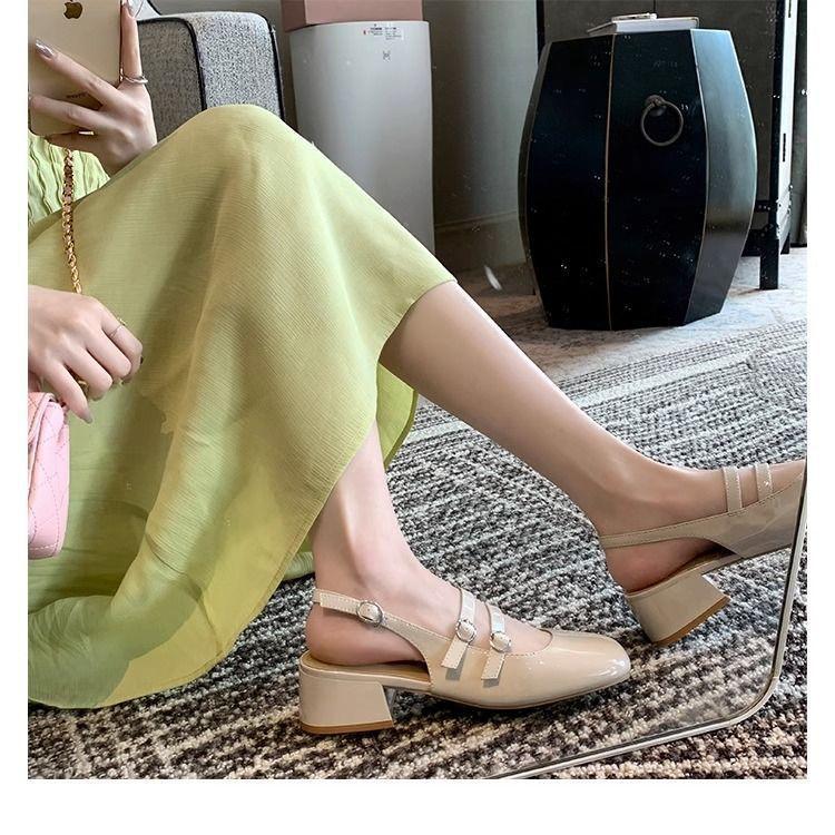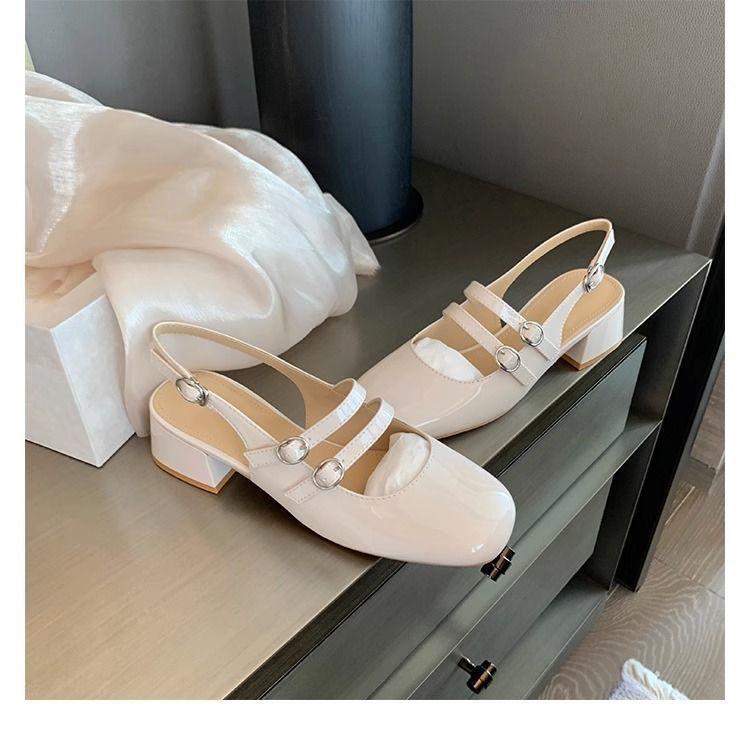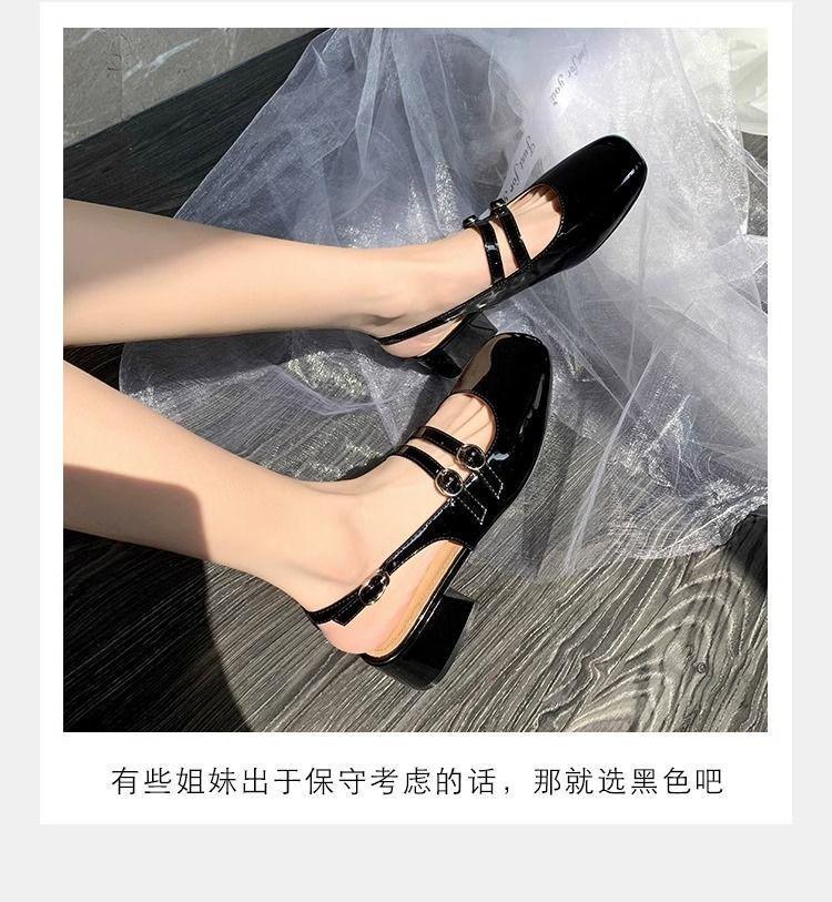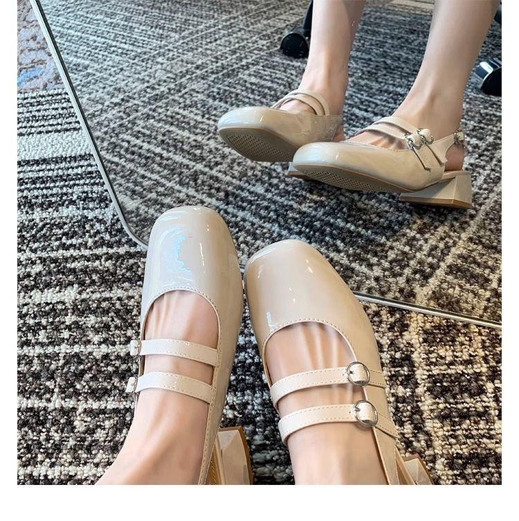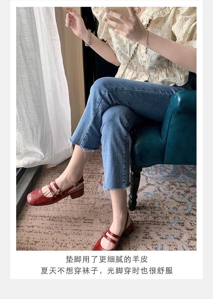 Zapatos Mary Jane para Mujer, Zapatos Rojos Estilo Retro Francés, Modelo Nuevo de Verano 2025, Tacón Medio, Doble Hebilla, Boca Baja, Zapatos Individuales de Tacón Grueso
