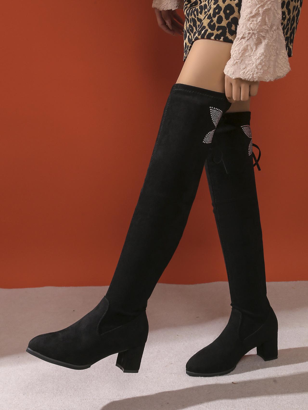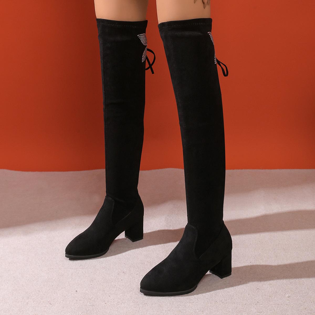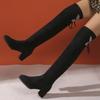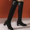 Botas por encima de la rodilla para mujer otoño e invierno 2024 nuevas botas finas forradas de polar botas altas tacón plano 34-42