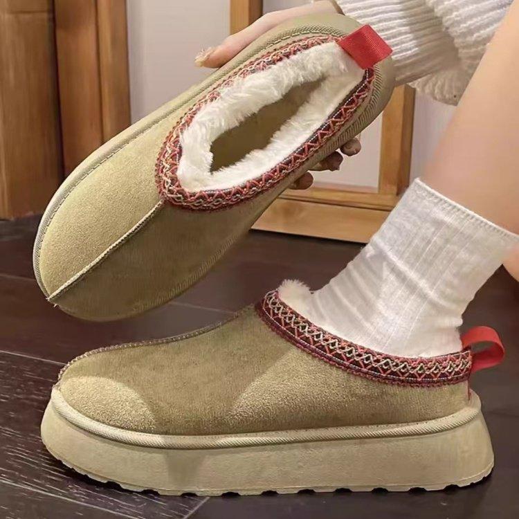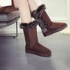 Botas de invierno de manga corta de felpa artificial de vaca de terciopelo reverso (cuero esmerilado) botas de nieve tacón medio (3-5 cm) tubo corto