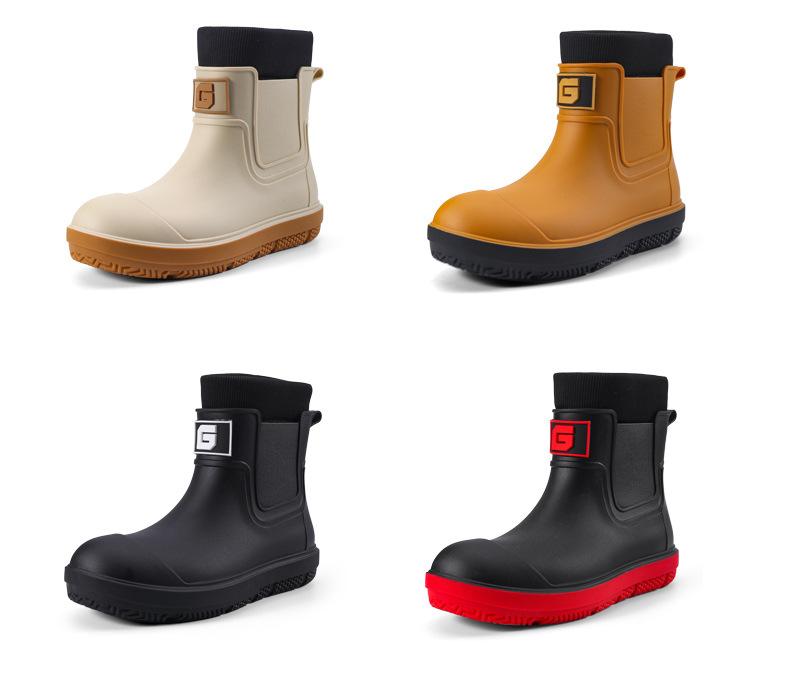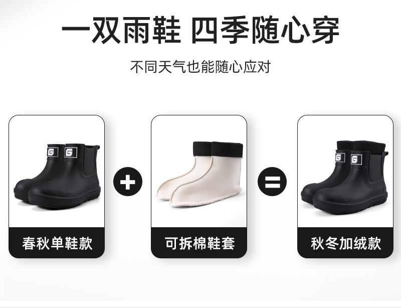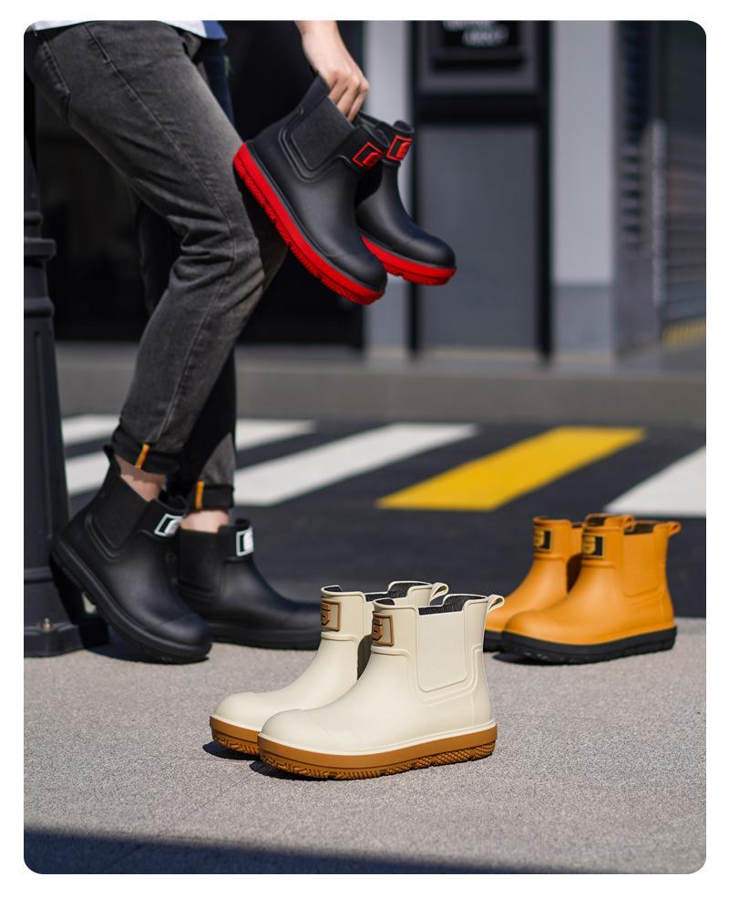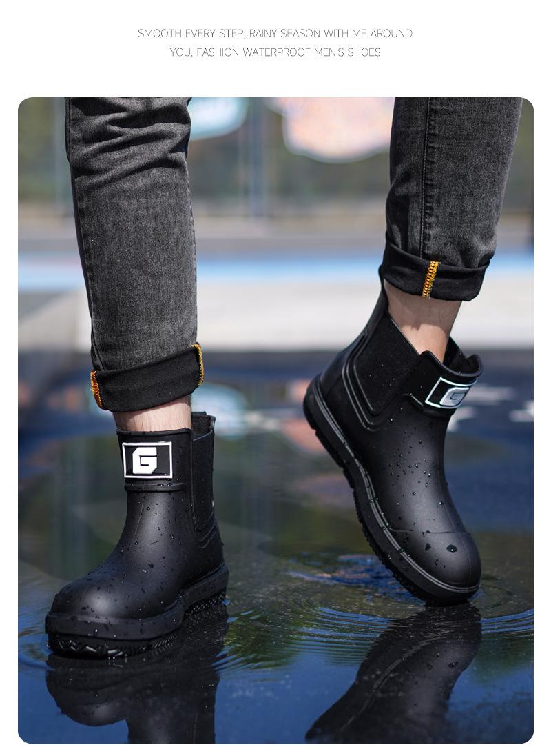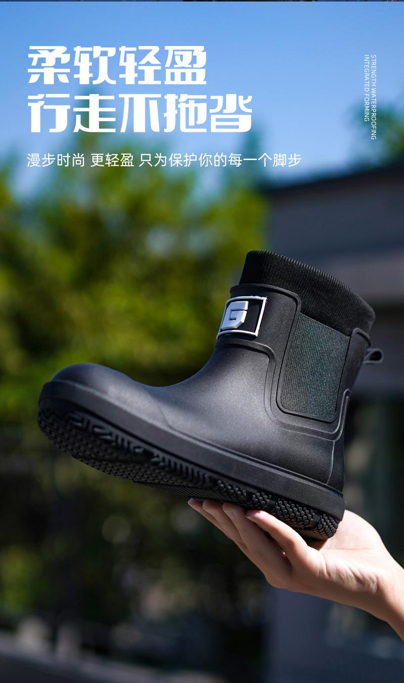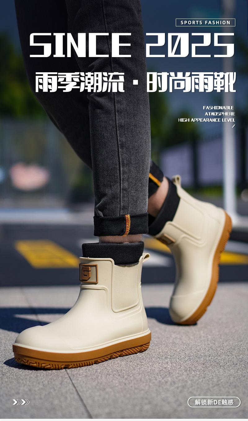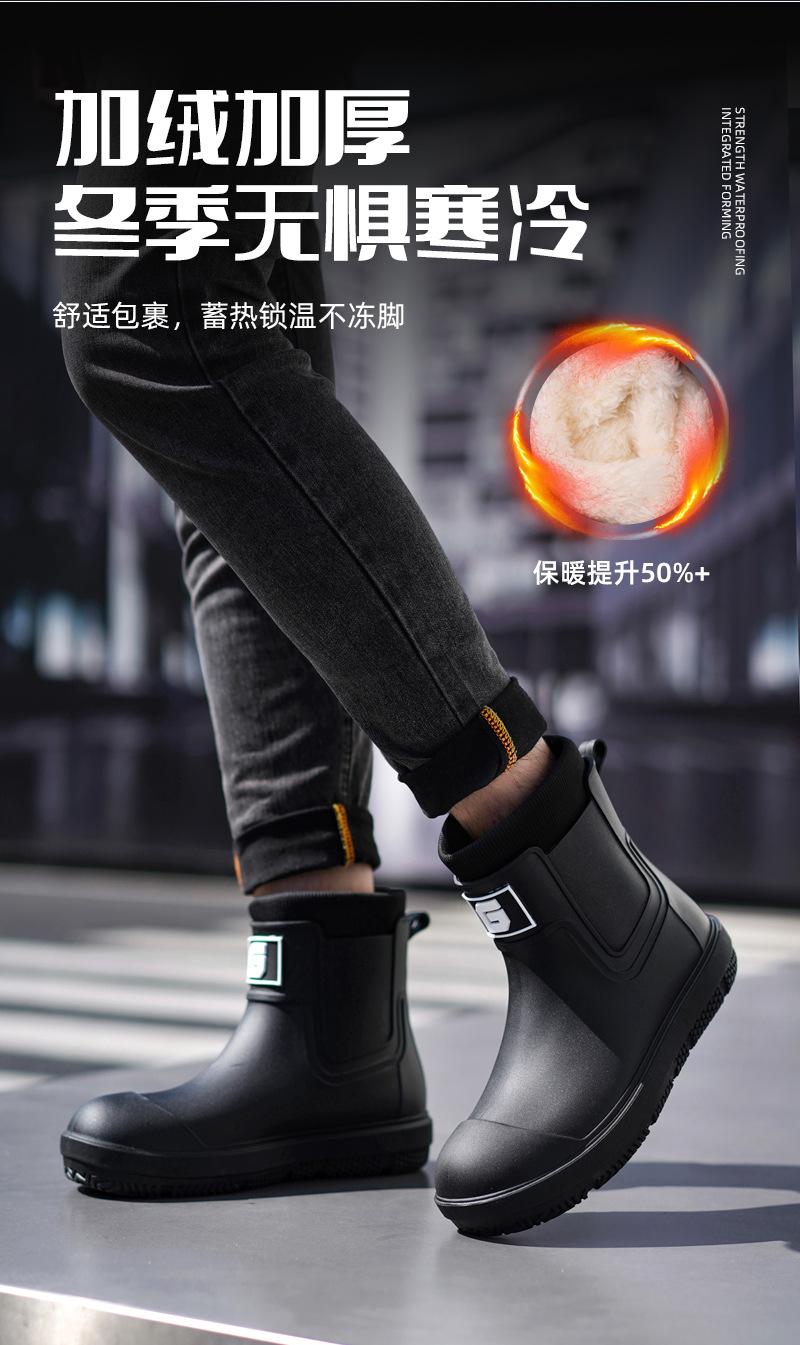 Nuevas Botas de Lluvia Transfronterizas para Hombre de Caña Corta a la Moda Antideslizantes Impermeables para Trabajo de Chef Zapatos para Agua Más Terciopelo Suela Gruesa Resistentes al Desgaste Botas de Lluvia