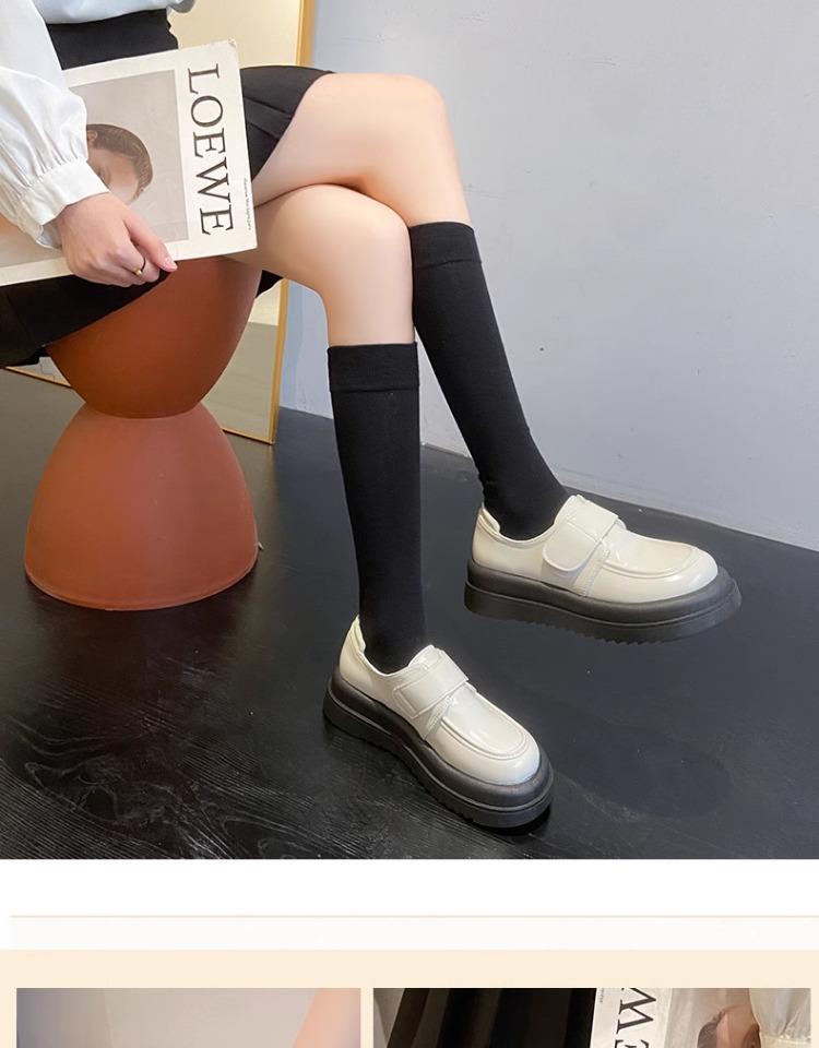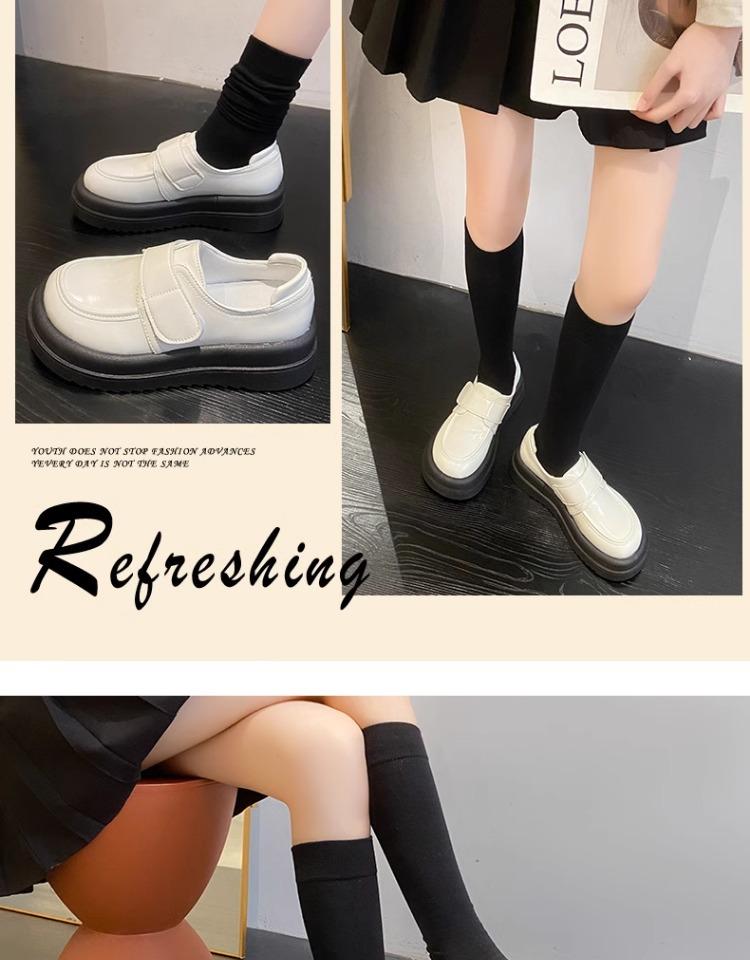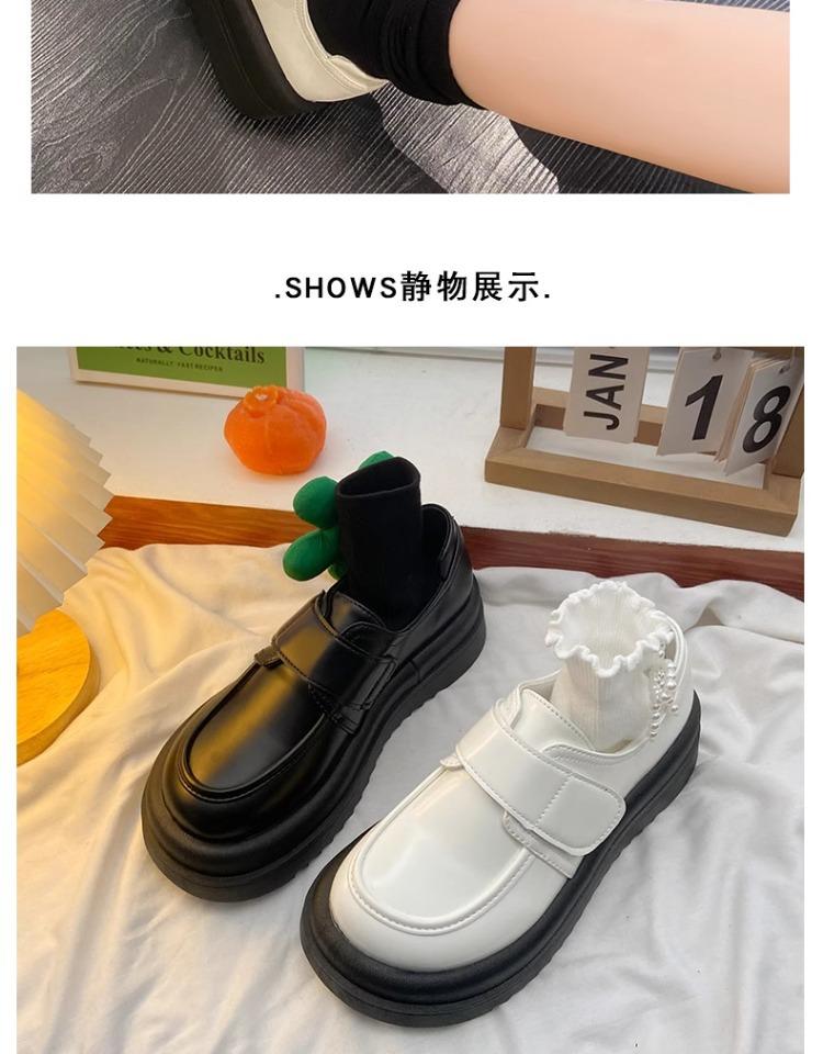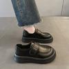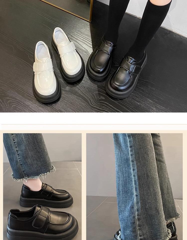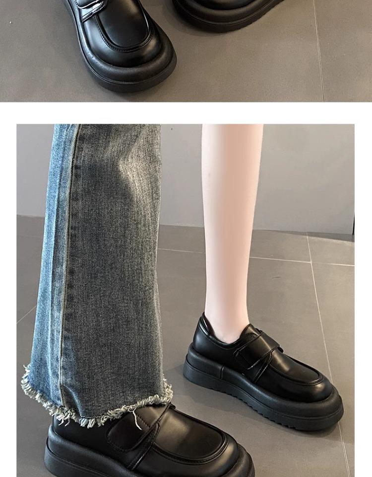 Zapatos de cuero estilo británico pequeños para mujer, zapatos planos Mary Jane de primavera de una sola capa, nuevos mocasines de plataforma negros de moda 204