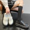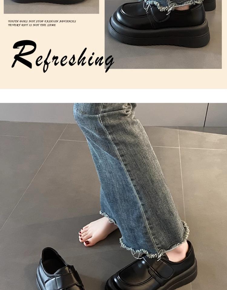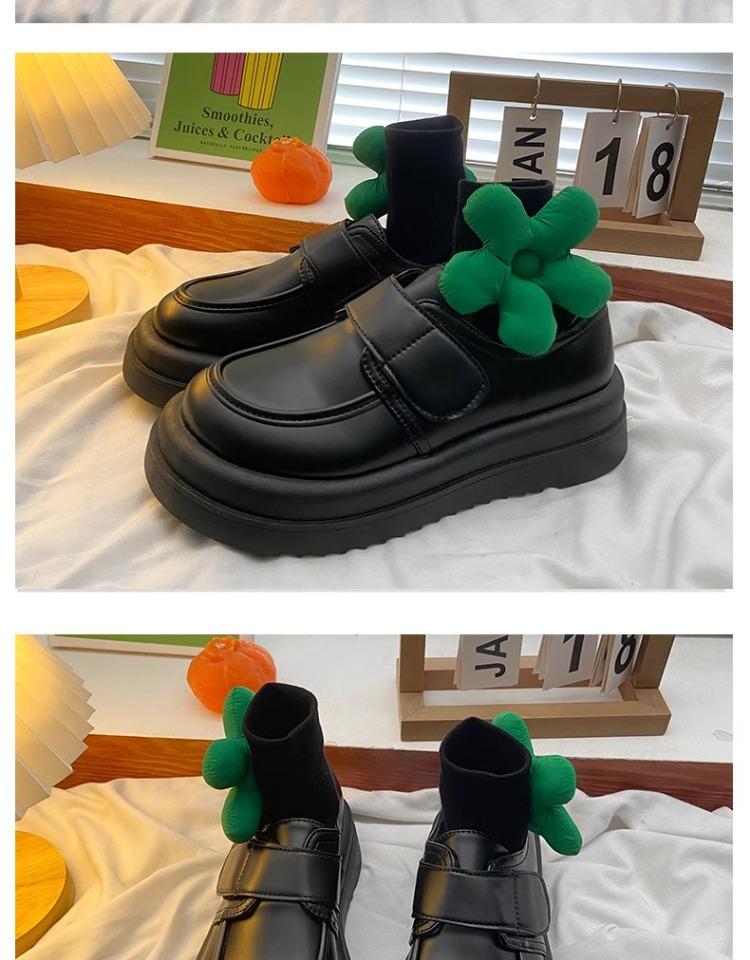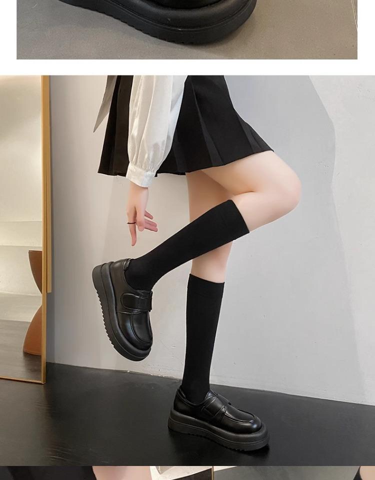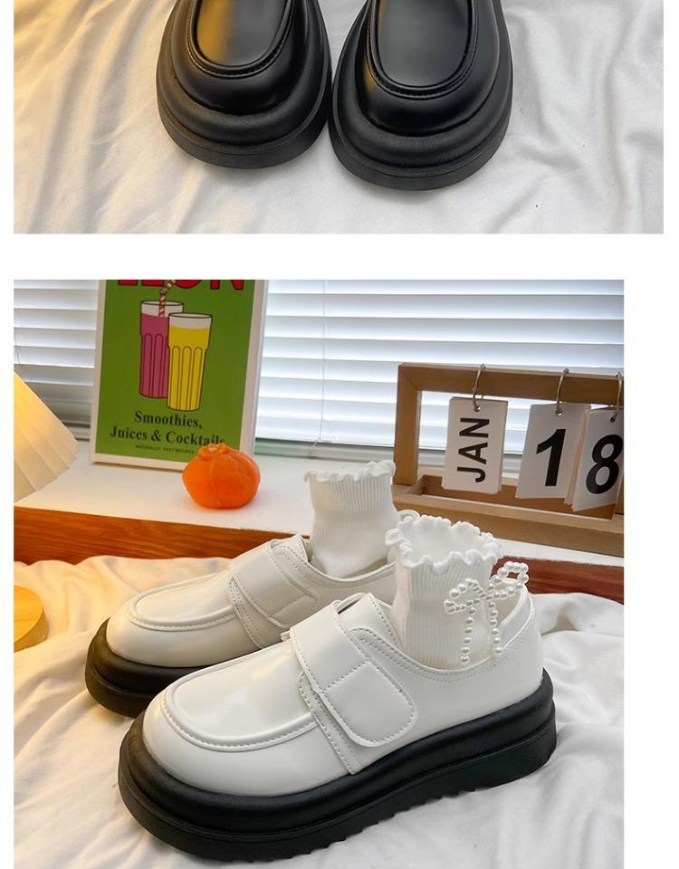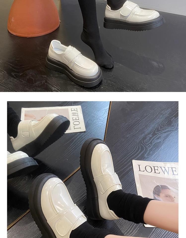 Zapatos de cuero estilo británico pequeños para mujer, zapatos planos Mary Jane de primavera de una sola capa, nuevos mocasines de plataforma negros de moda 204