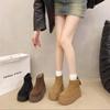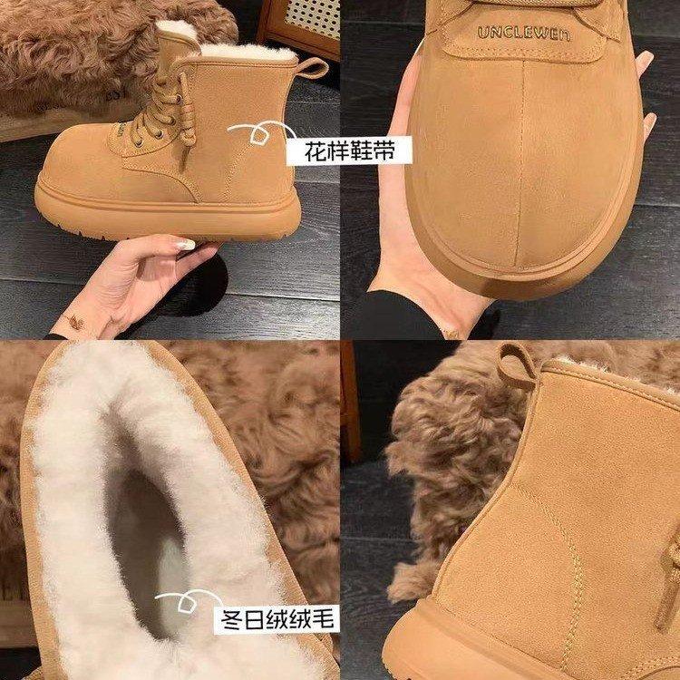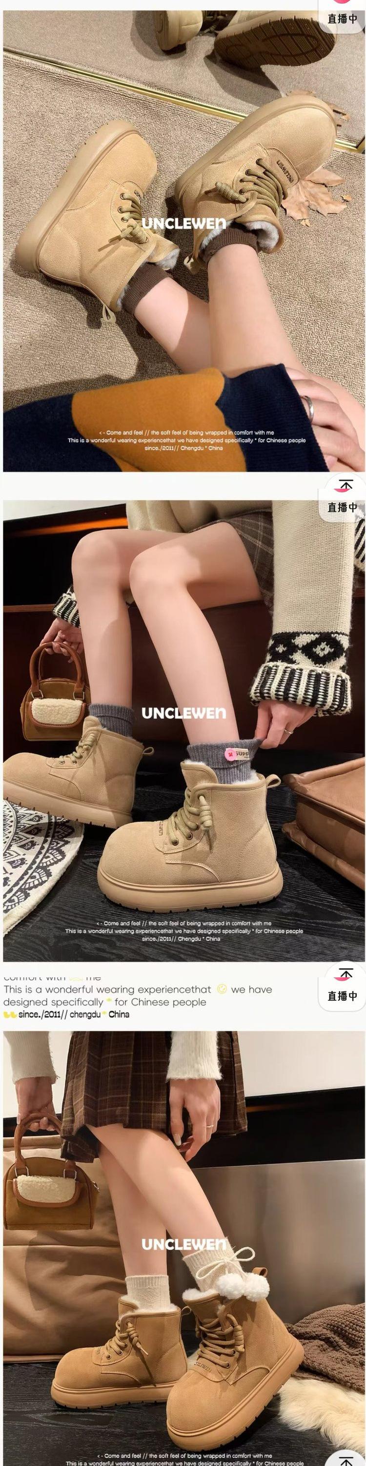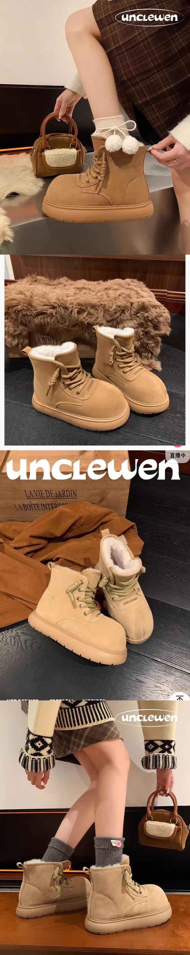 Botas de nieve de cabeza redonda, artificiales, cortas, de felpa artificial, de goma PU, botas de nieve con tacón grueso y manga media. (-