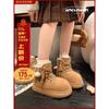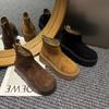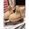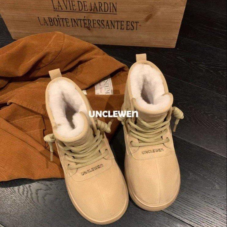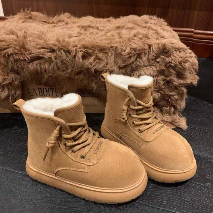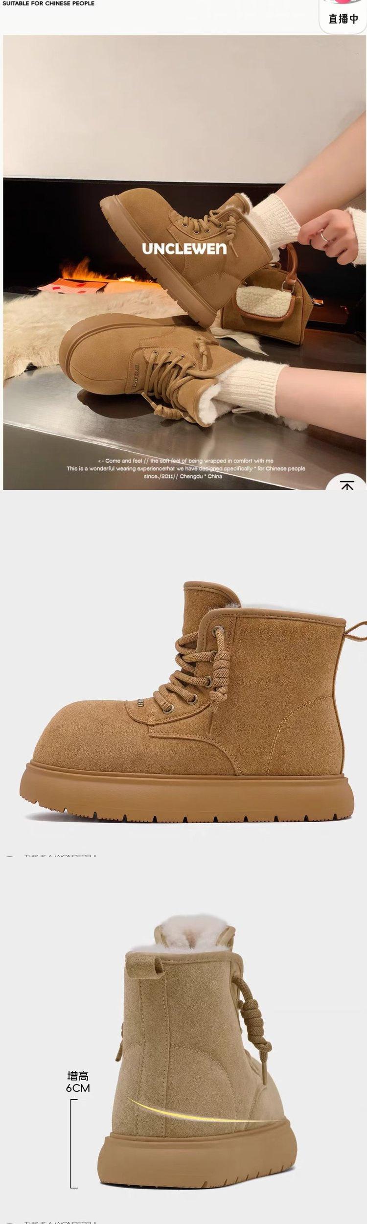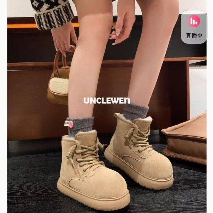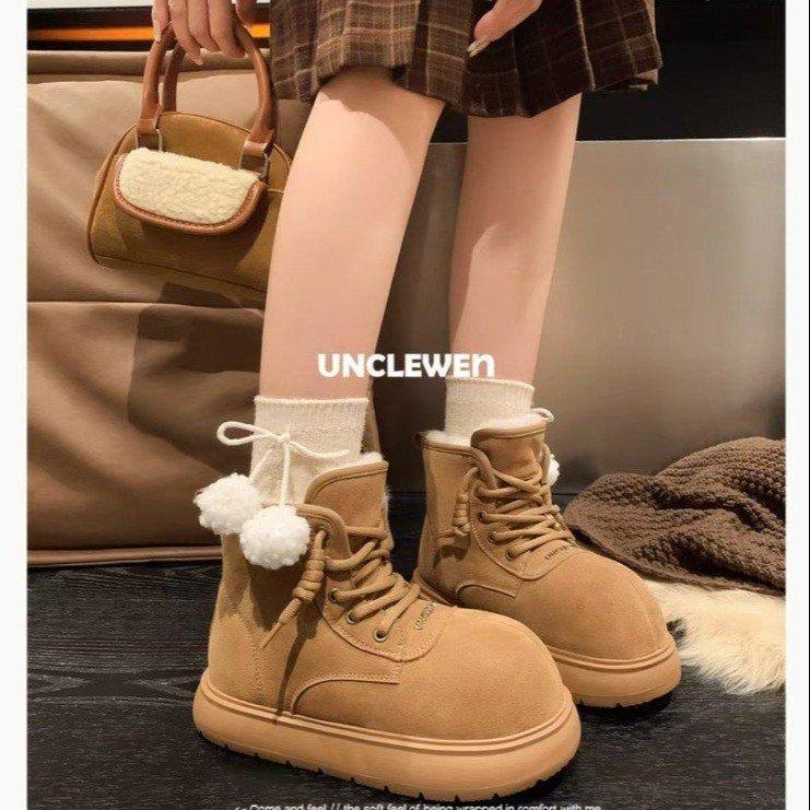 Botas de nieve de cabeza redonda, artificiales, cortas, de felpa artificial, de goma PU, botas de nieve con tacón grueso y manga media. (-