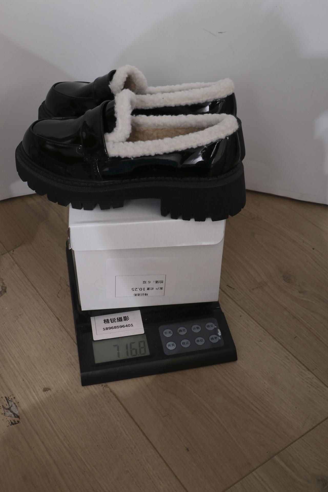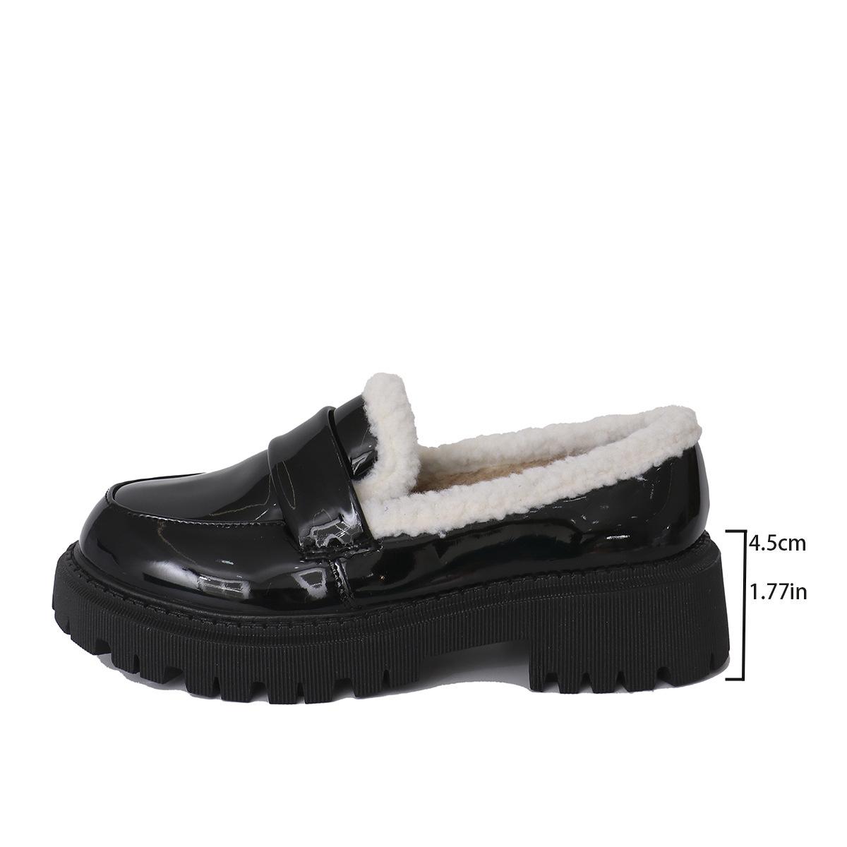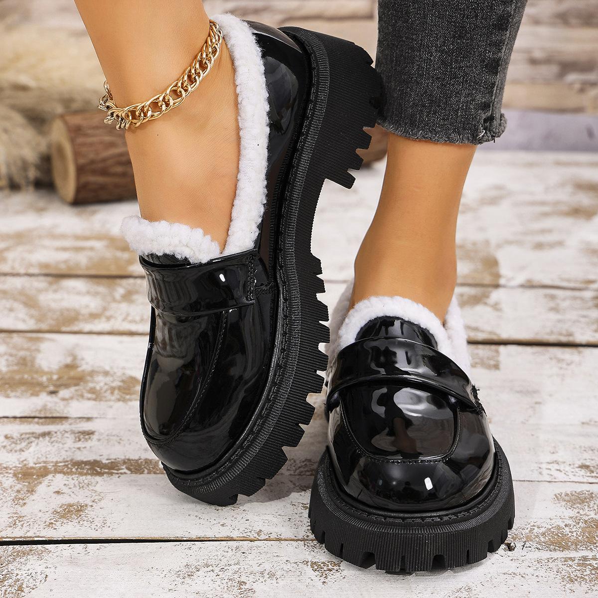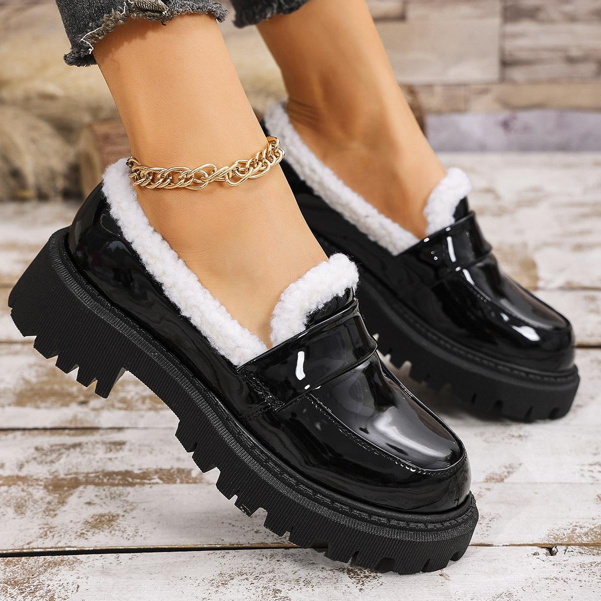 Zapatos de comercio exterior forrados de vellón para mujer 2024 otoño e invierno nuevos viento británico punta redonda cálidos mocasines de pedal al por mayor
