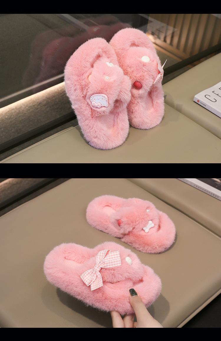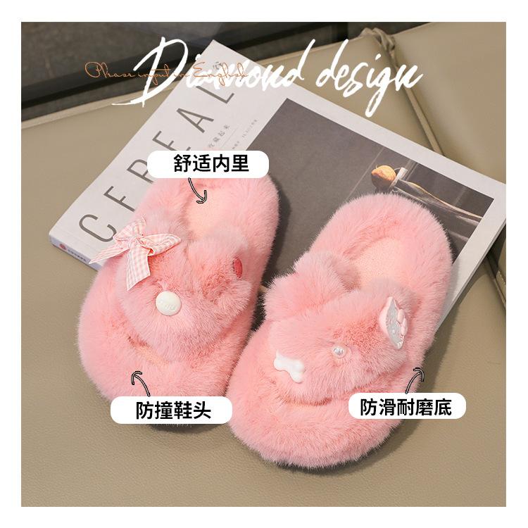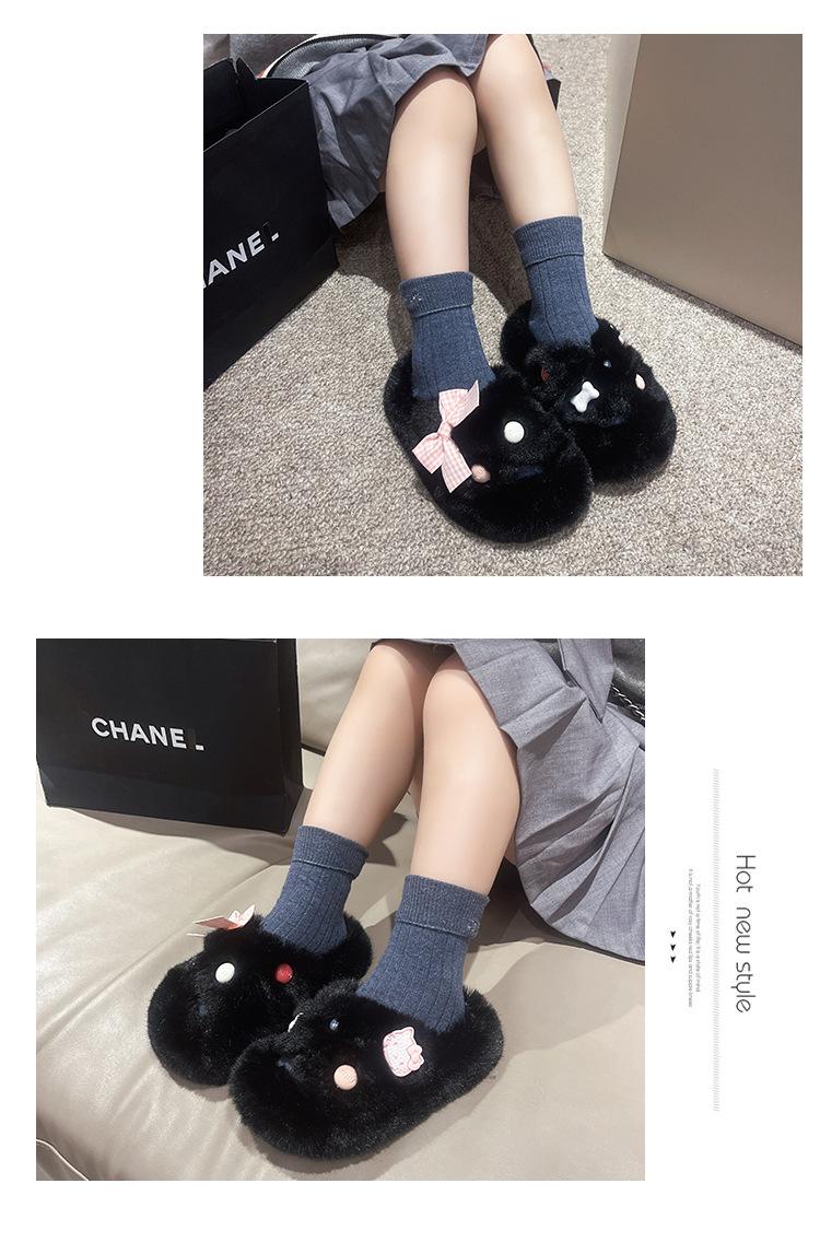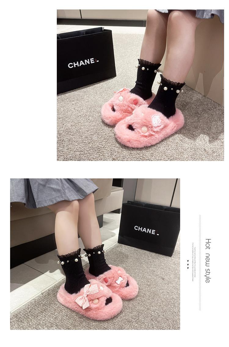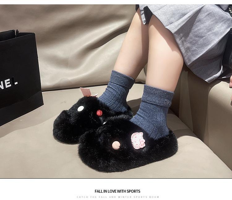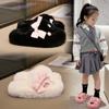 Pantuflas Mao Mao de dibujos animados de fondo grueso de estilo coreano para niños, otoño e invierno, lindas pantuflas de felpa para interiores
