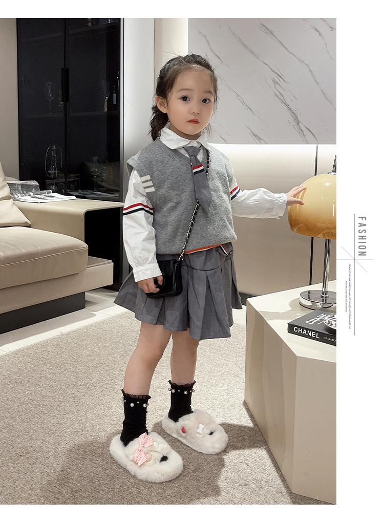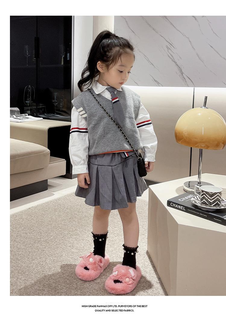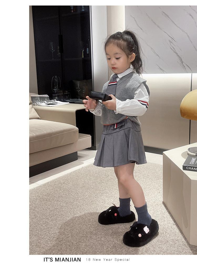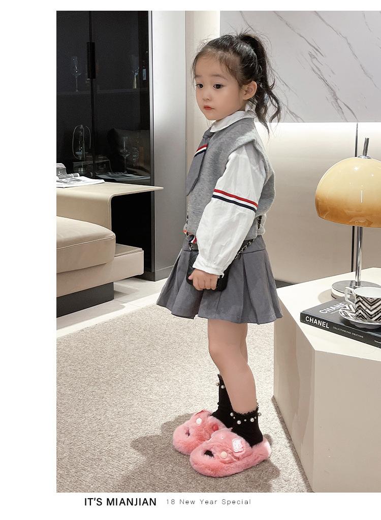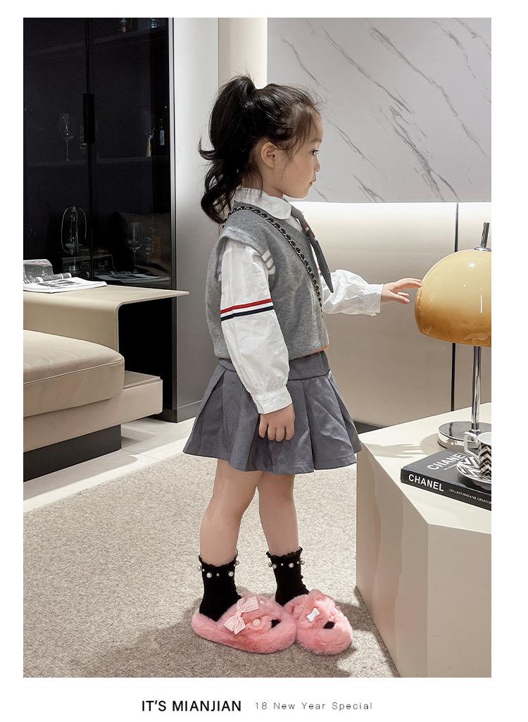 Pantuflas Mao Mao de dibujos animados de fondo grueso de estilo coreano para niños, otoño e invierno, lindas pantuflas de felpa para interiores