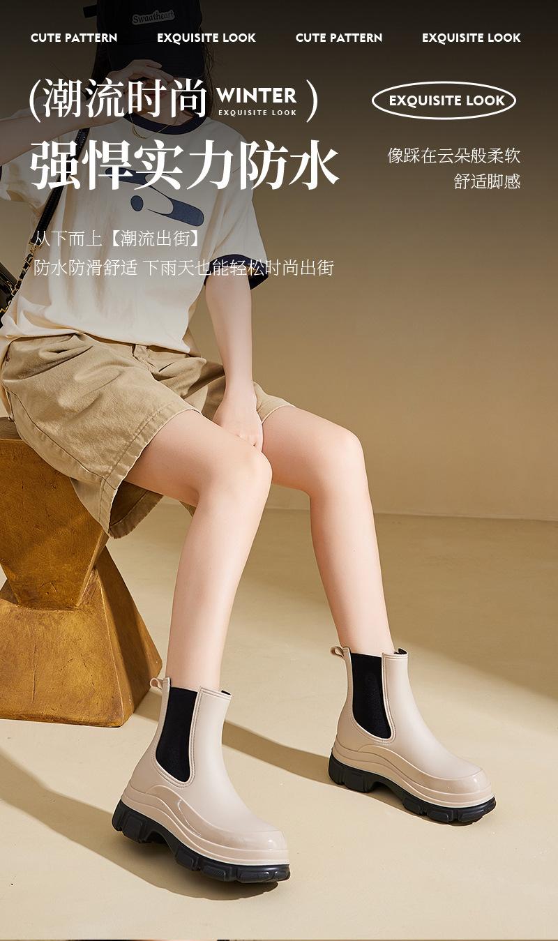 Botas de Lluvia de Moda Transfronteriza para Mujer 2025 Nuevas Botas de Lluvia Aumento Zapatos Impermeables Botines Chelsea Botas de Lluvia Antideslizantes para Exterior