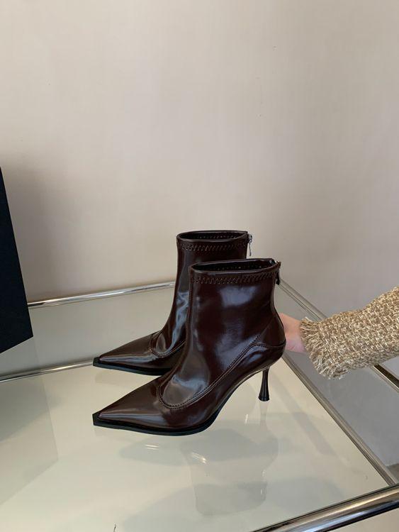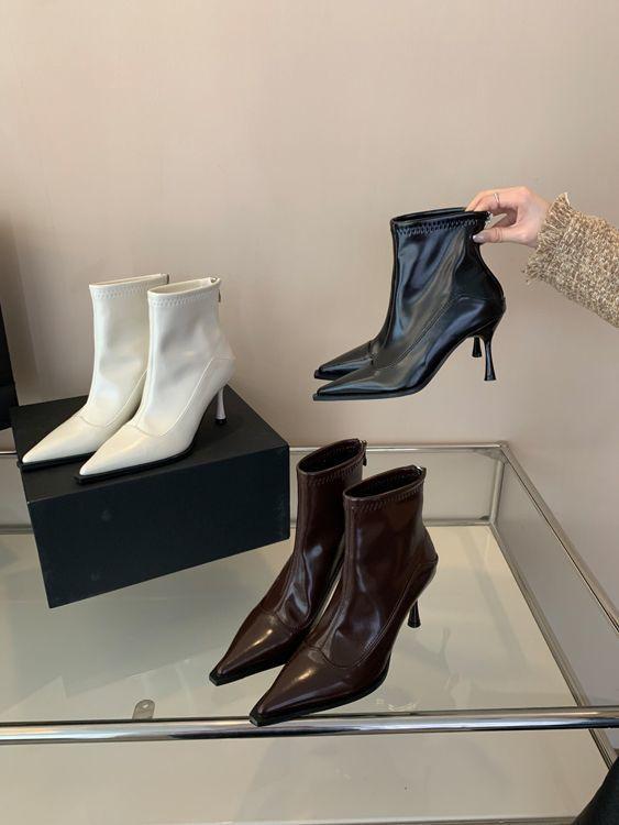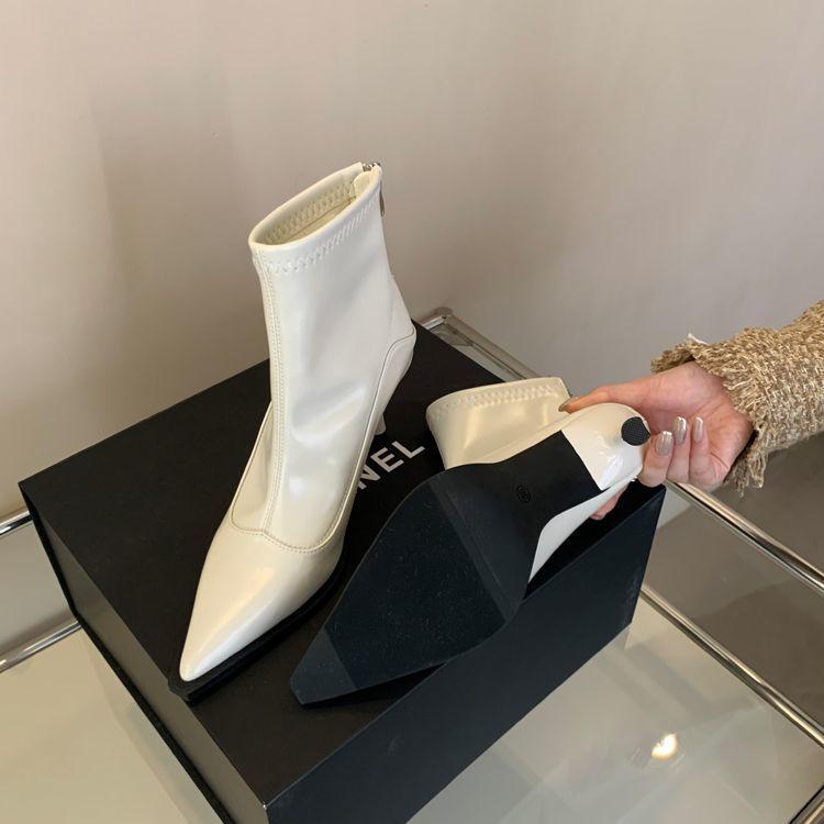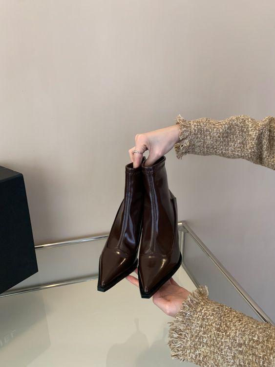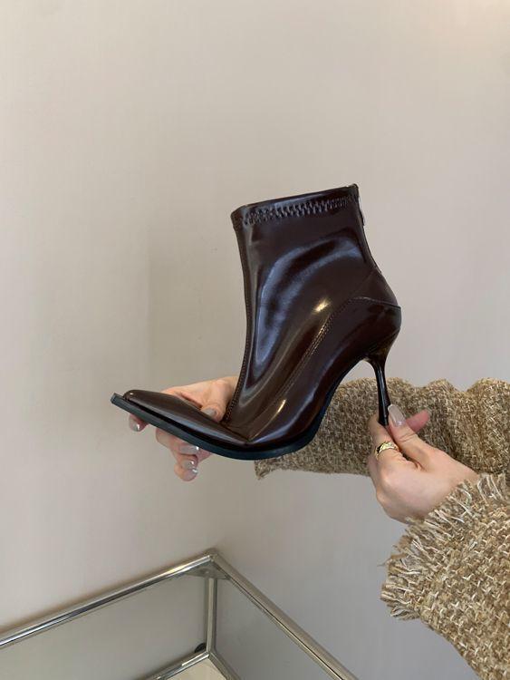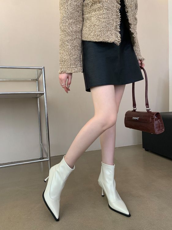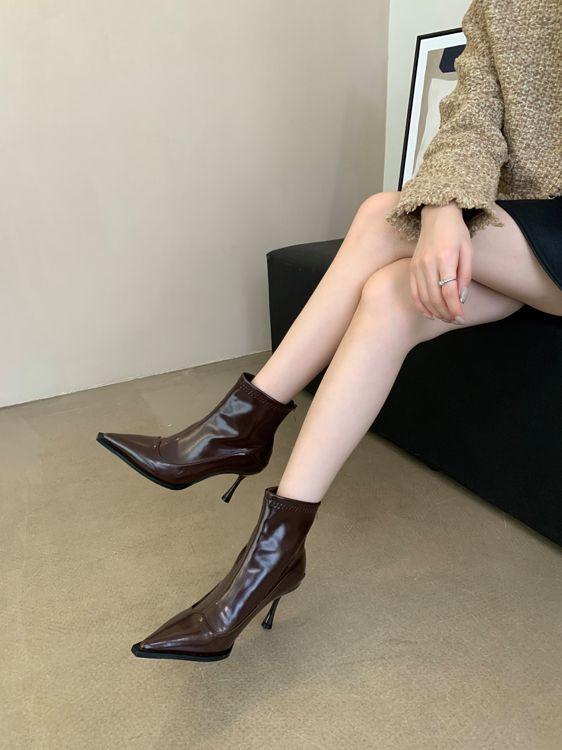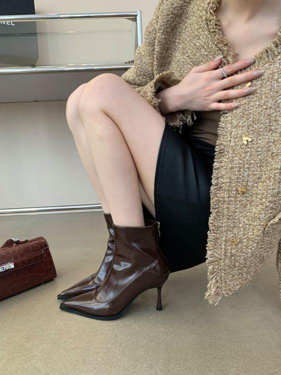 Botines puntiagudos retro franceses para mujer, novedad 2024, elegantes tacones altos europeos y americanos, de cuero suave, finos y sencillos.