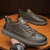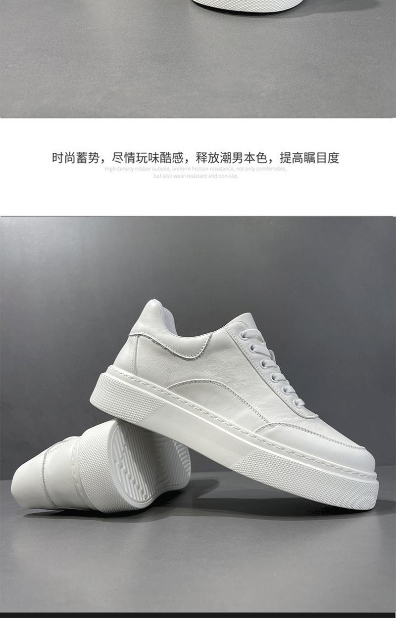 Zapatos blancos de plataforma de cuero genuino para hombre, zapatillas deportivas modernas y versátiles para hombre, zapatos de estilo europeo para hombre, zapatos casuales de nicho.
