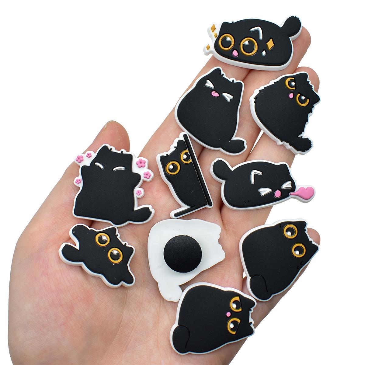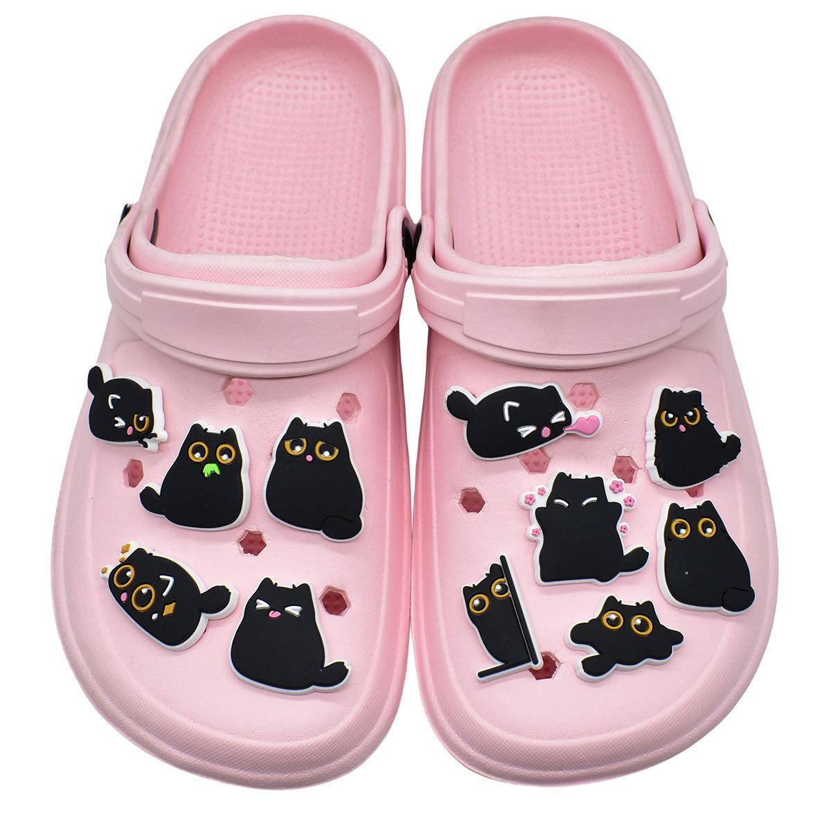 Nueva serie de zapatos con agujeros de gatito negro transfronterizos, accesorios DIY, zapatos de jardín con pegamento suave extraíble, zapatos con hebilla de flor.