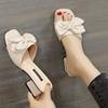Zapatillas de mujer 2024 verano nuevo estilo coreano tacón grueso tacón alto estilo hada moda lazo zapatillas de talla grande