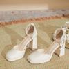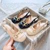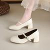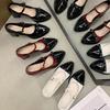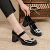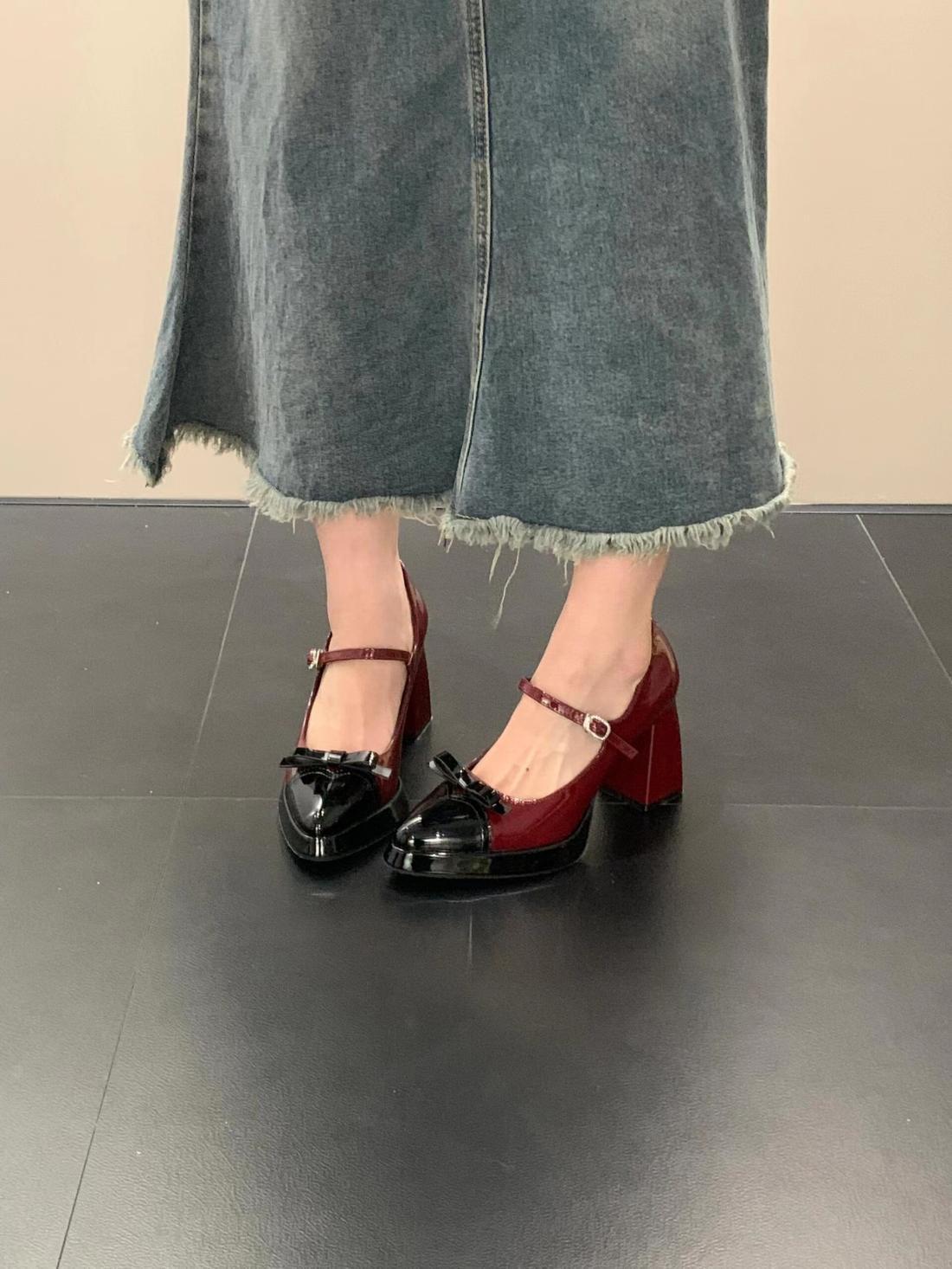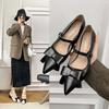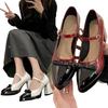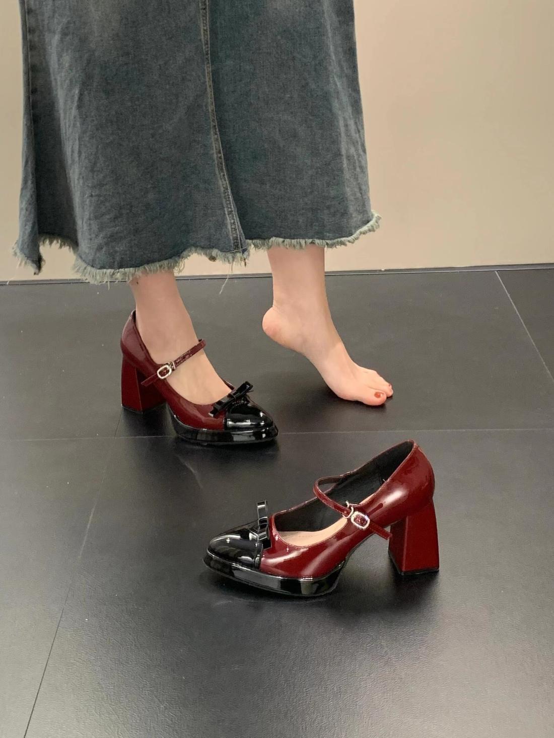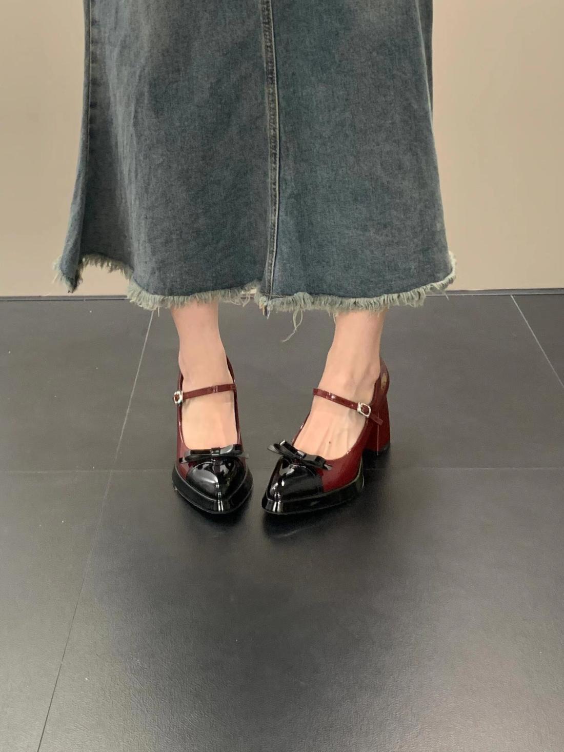 2025 Nuevo Estilo Boca Baja Punta Afilada Tacones Altos Zapatos Mary Jane Rojos de Mujer Tacones Gruesos de Celebridad de Estilo Hada de Alta Gama