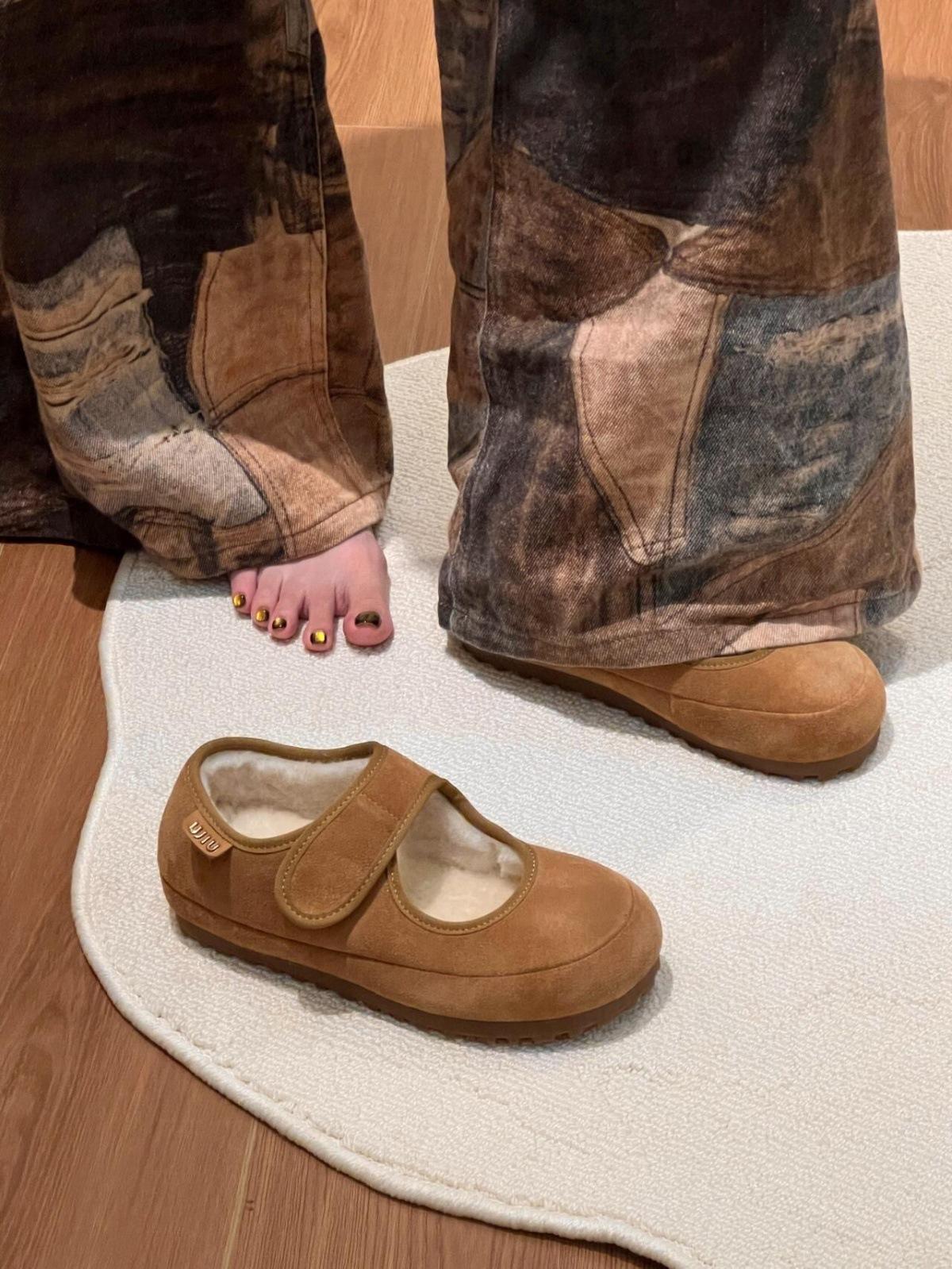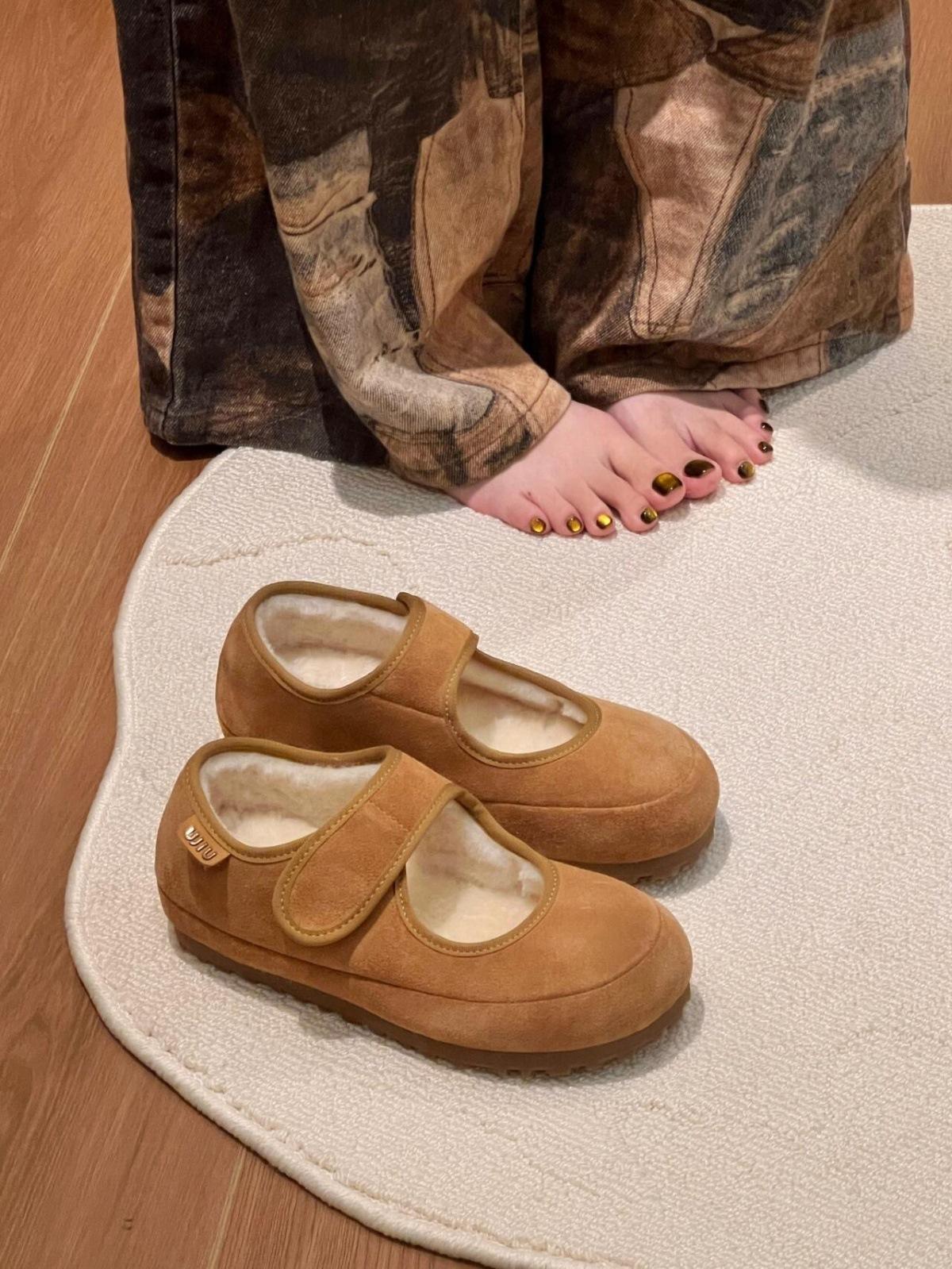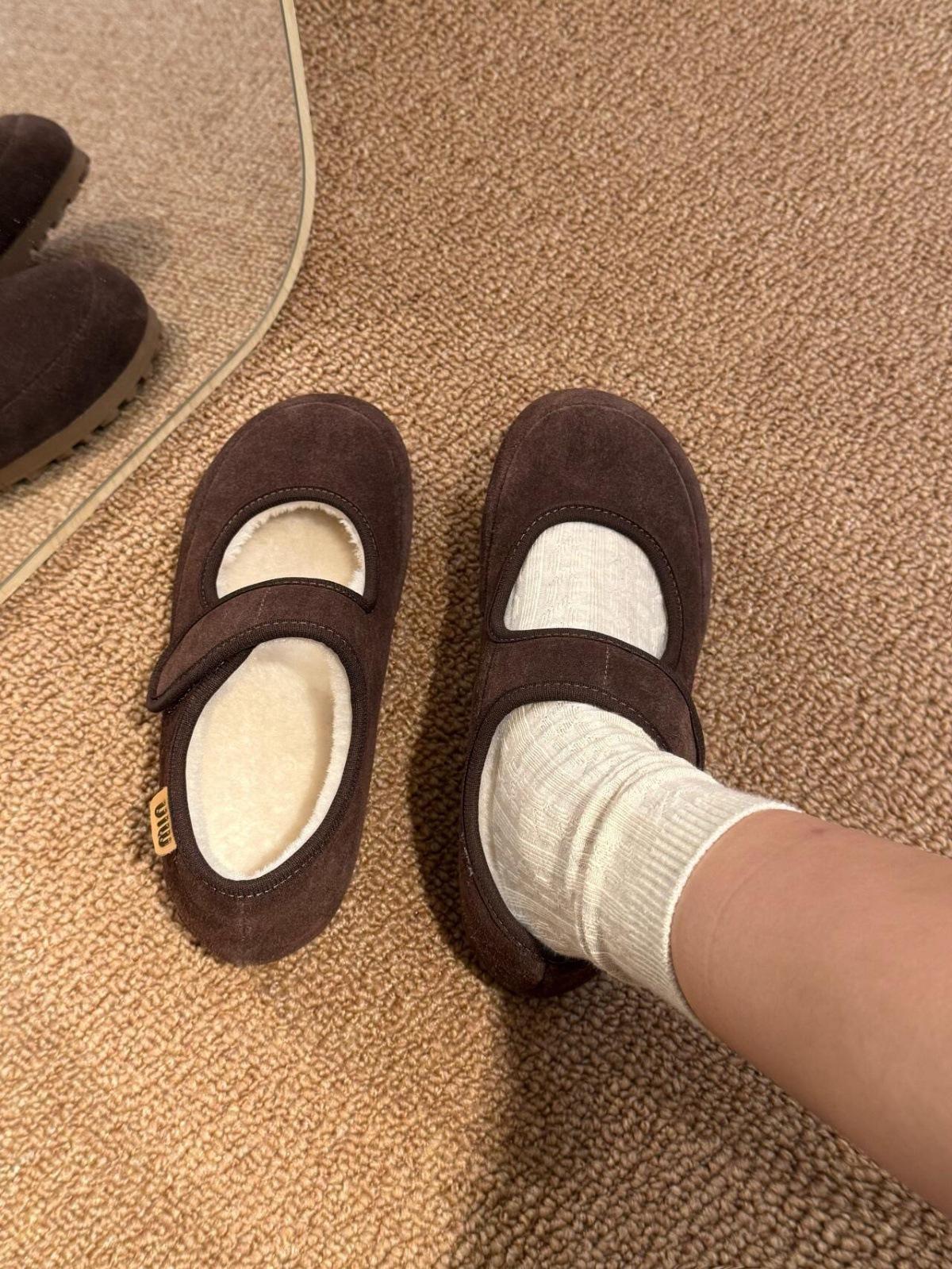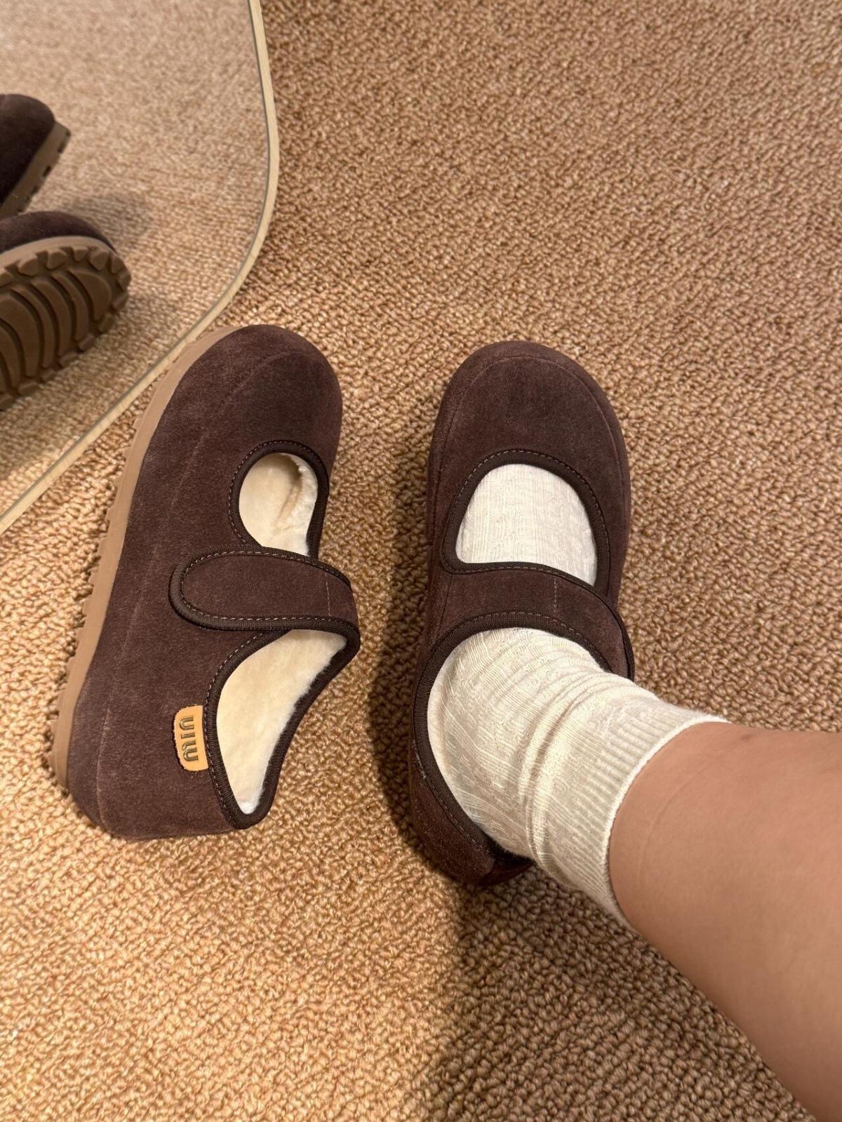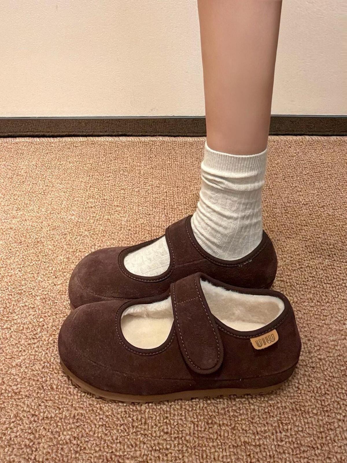 Zapatos Mary Jane de suela gruesa y plataforma, forrados de vellón para mujer, otoño e invierno 2024, casuales con velcro, zapatos Mao Mao
