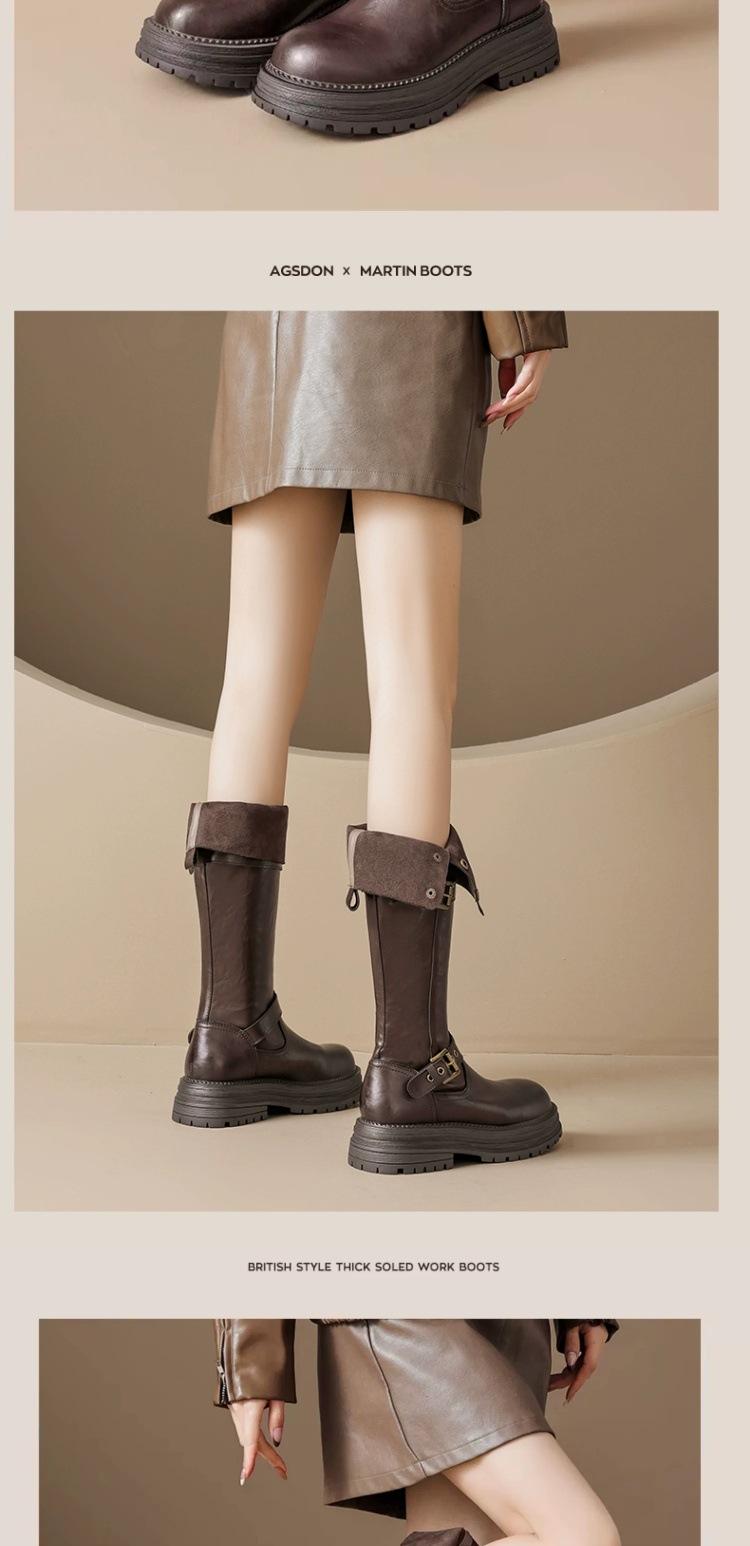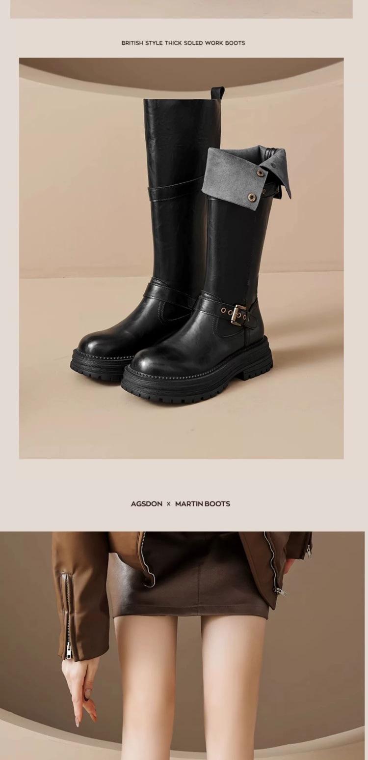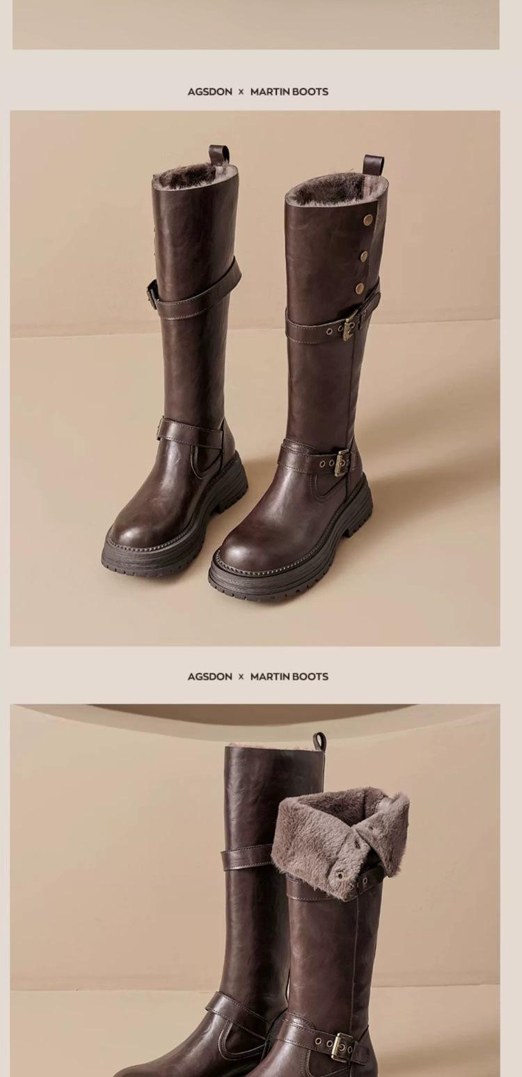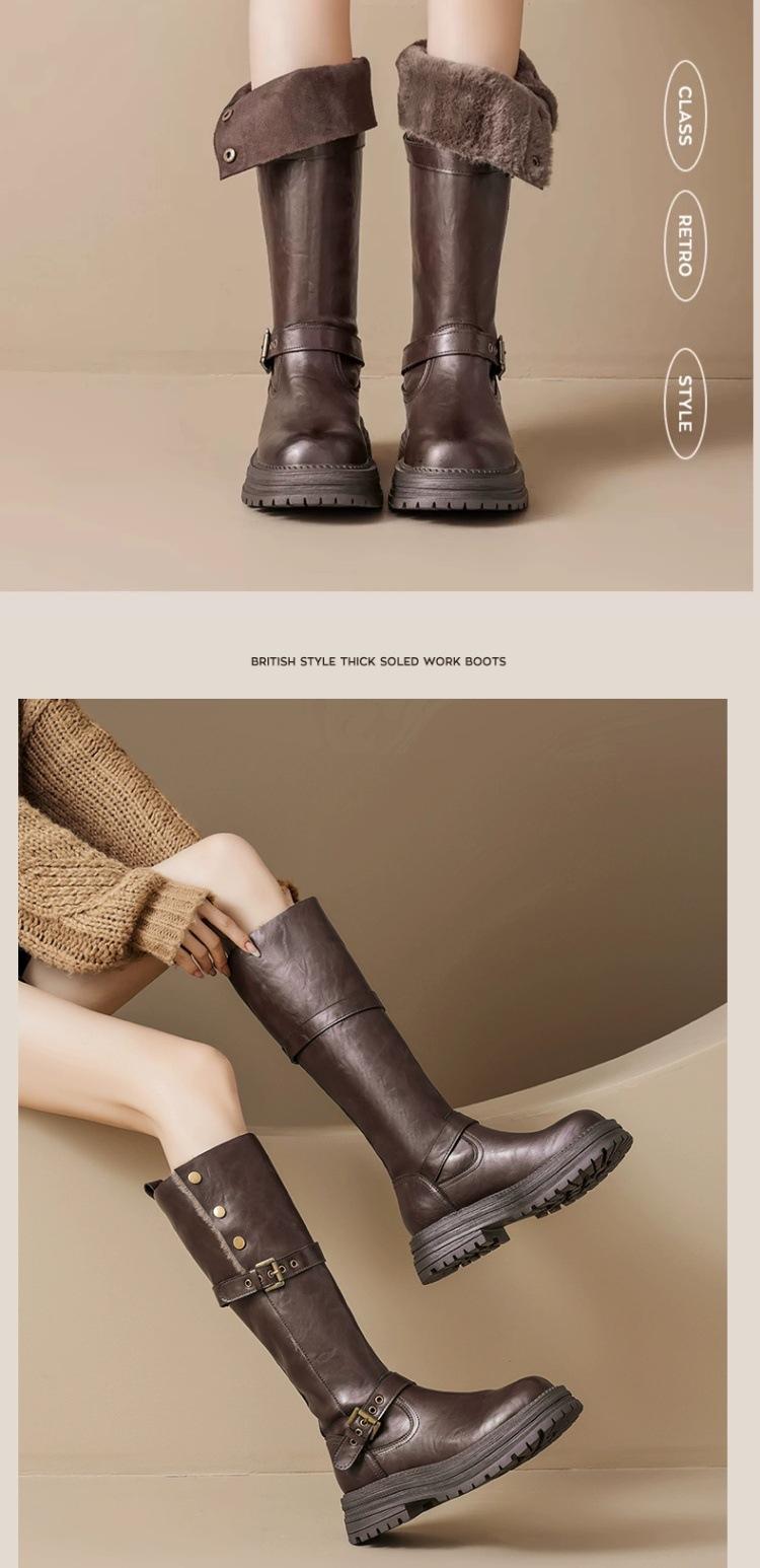 Botas Augushiden para Mujer Otoño e Invierno 2025 Nuevas Botas de Caballero hasta la Rodilla Maillard con Suela Gruesa y Forro Polar