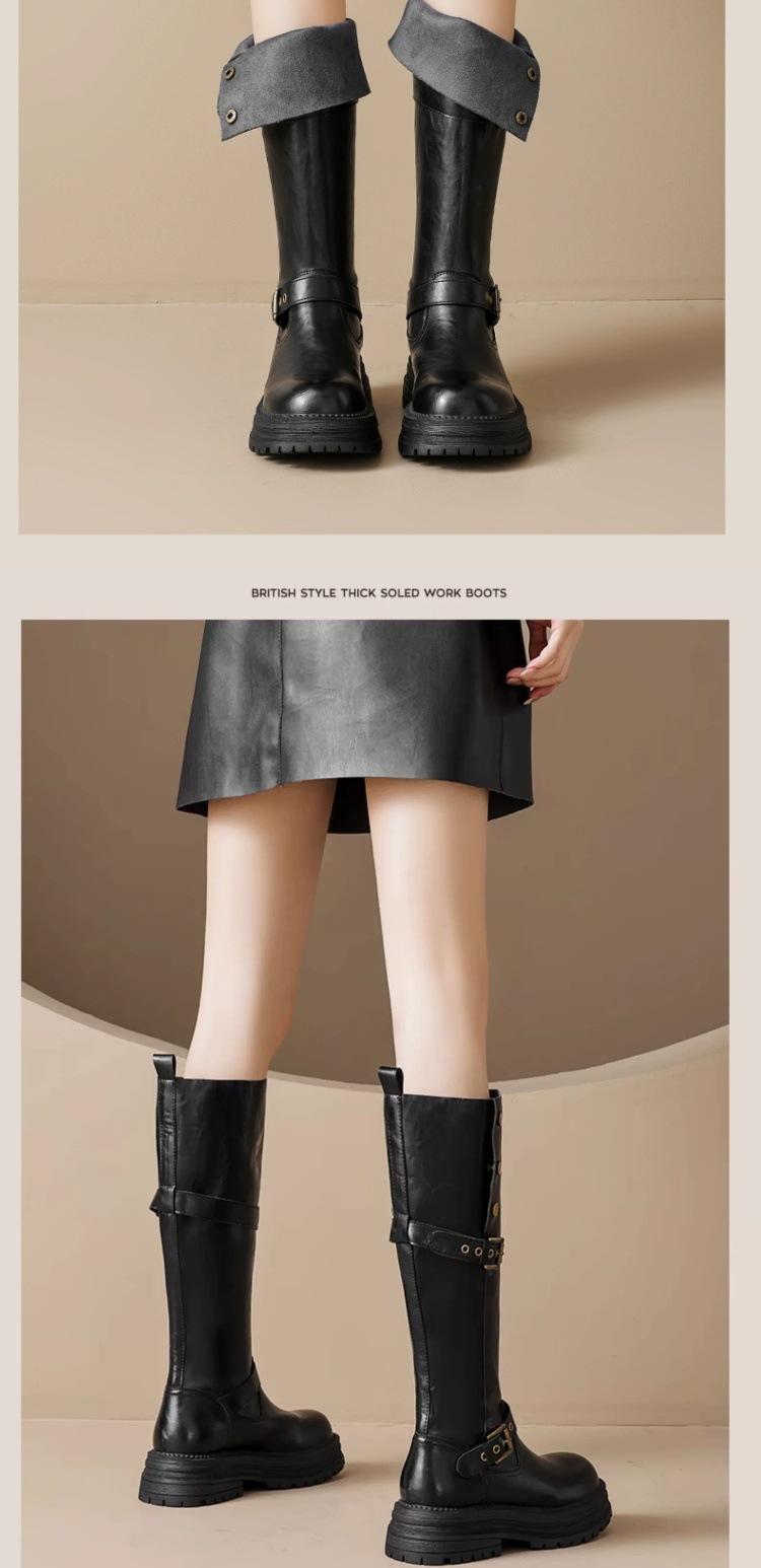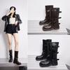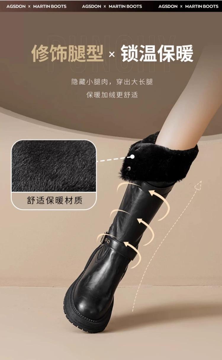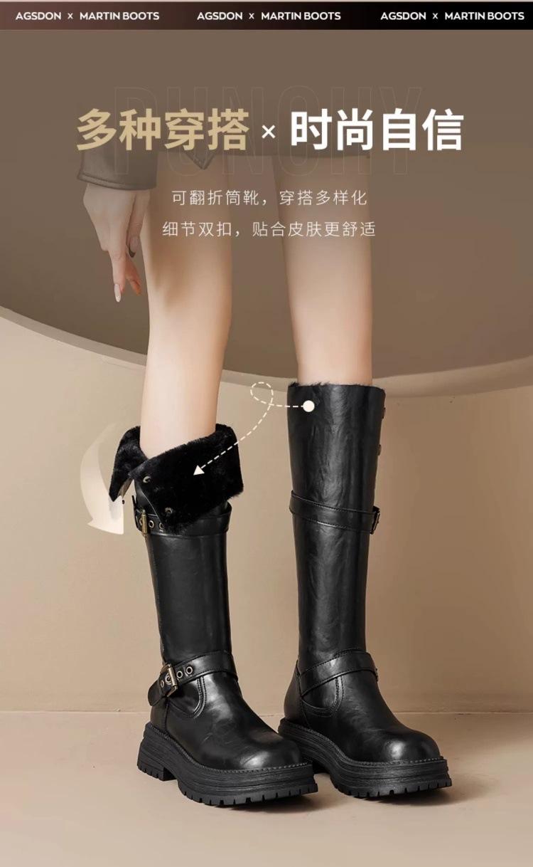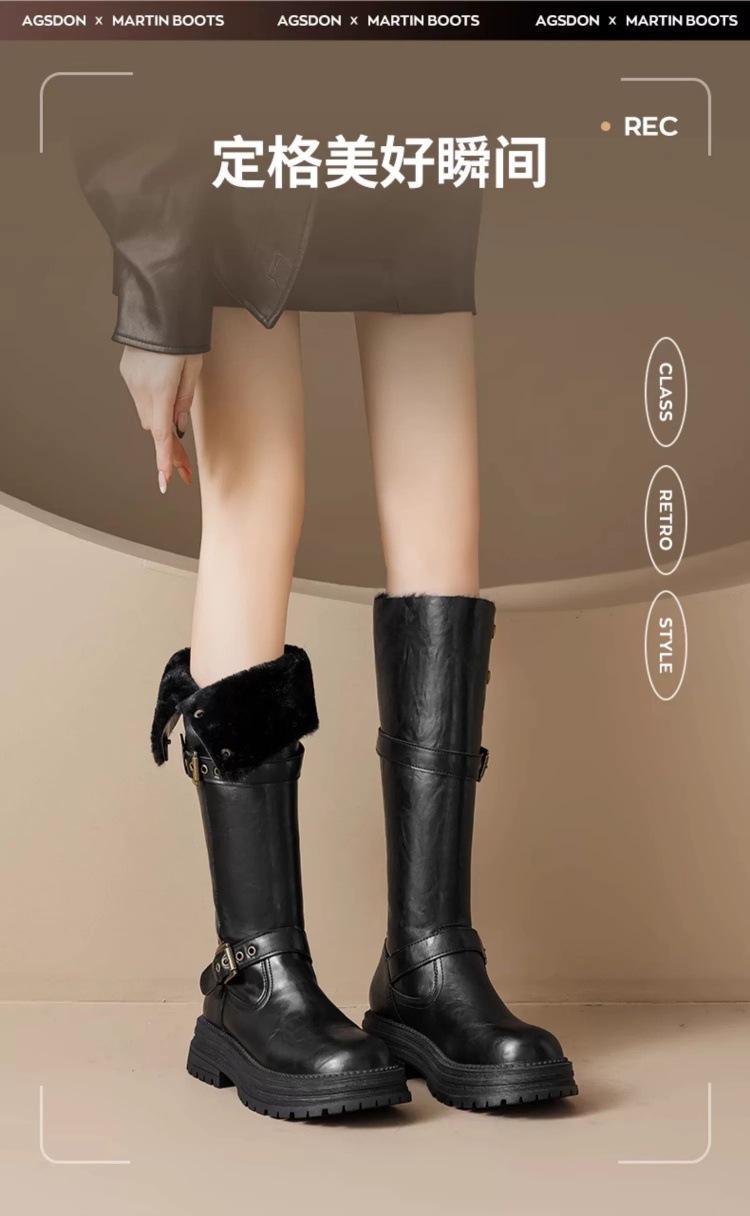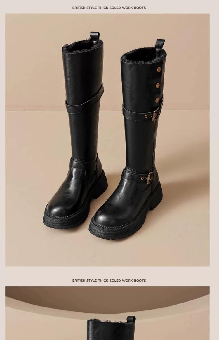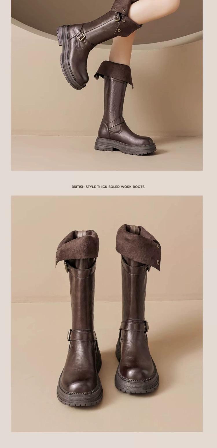 Botas Augushiden para Mujer Otoño e Invierno 2025 Nuevas Botas de Caballero hasta la Rodilla Maillard con Suela Gruesa y Forro Polar