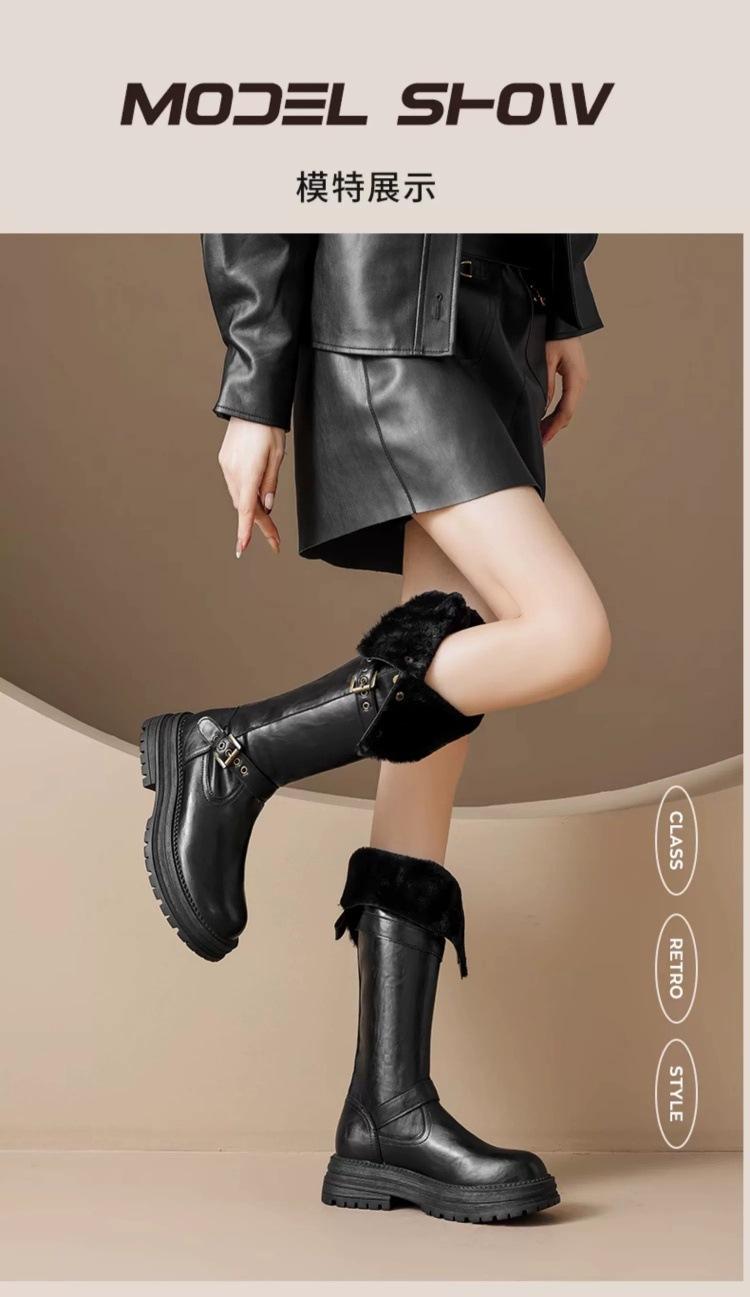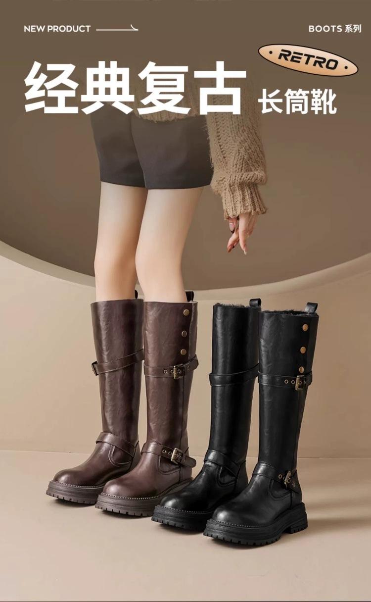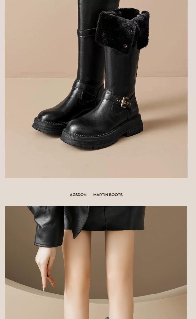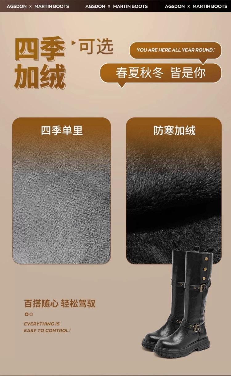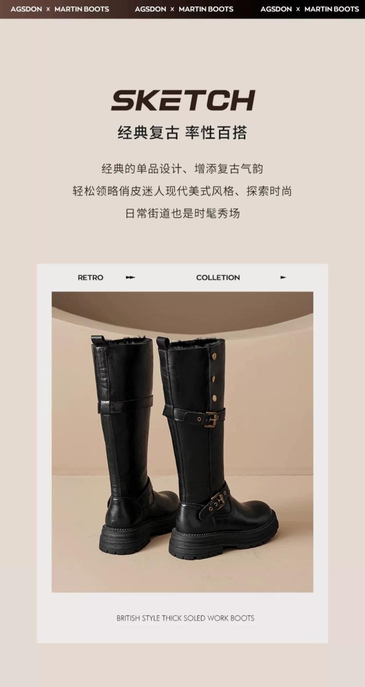 Botas Augushiden para Mujer Otoño e Invierno 2025 Nuevas Botas de Caballero hasta la Rodilla Maillard con Suela Gruesa y Forro Polar